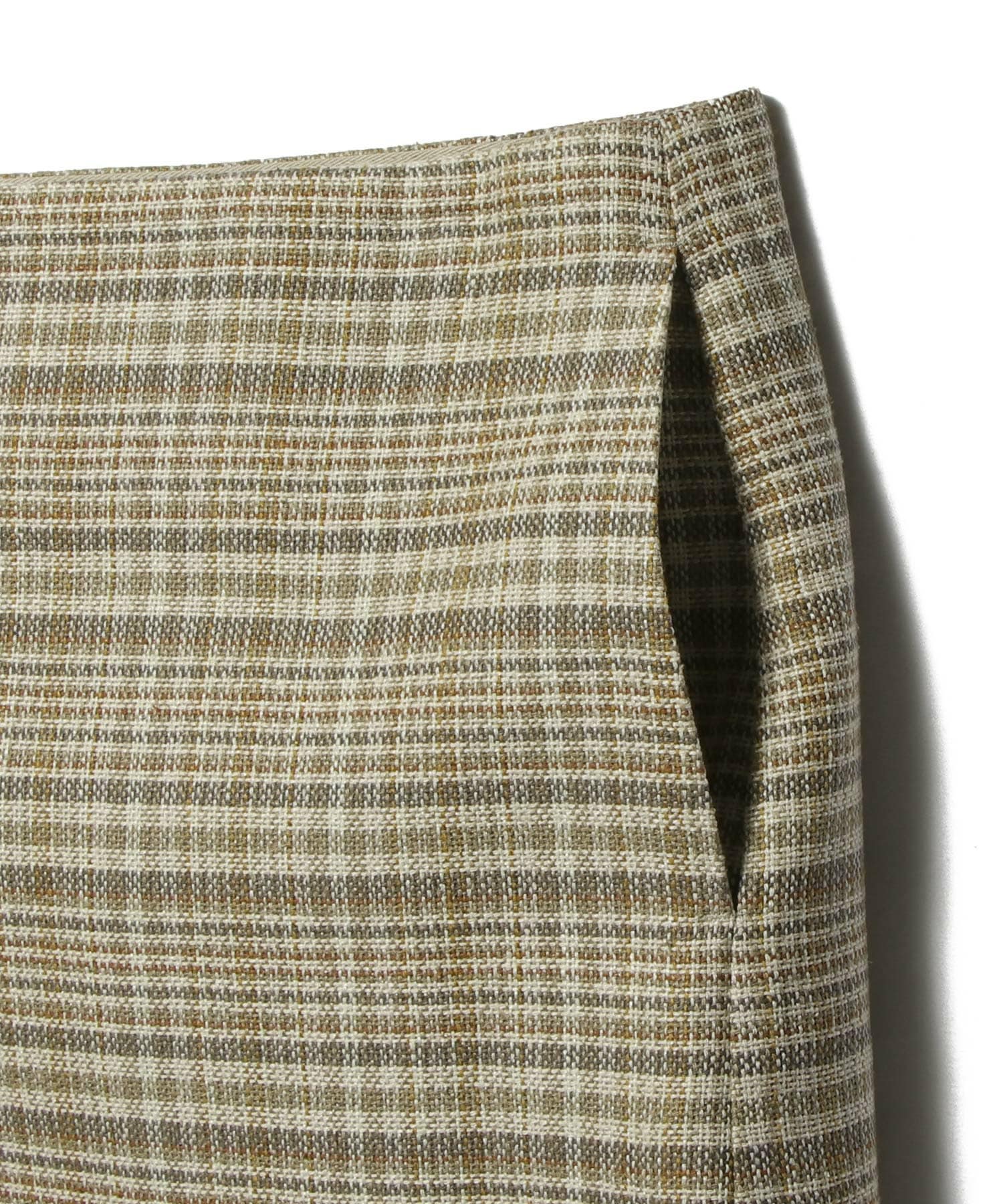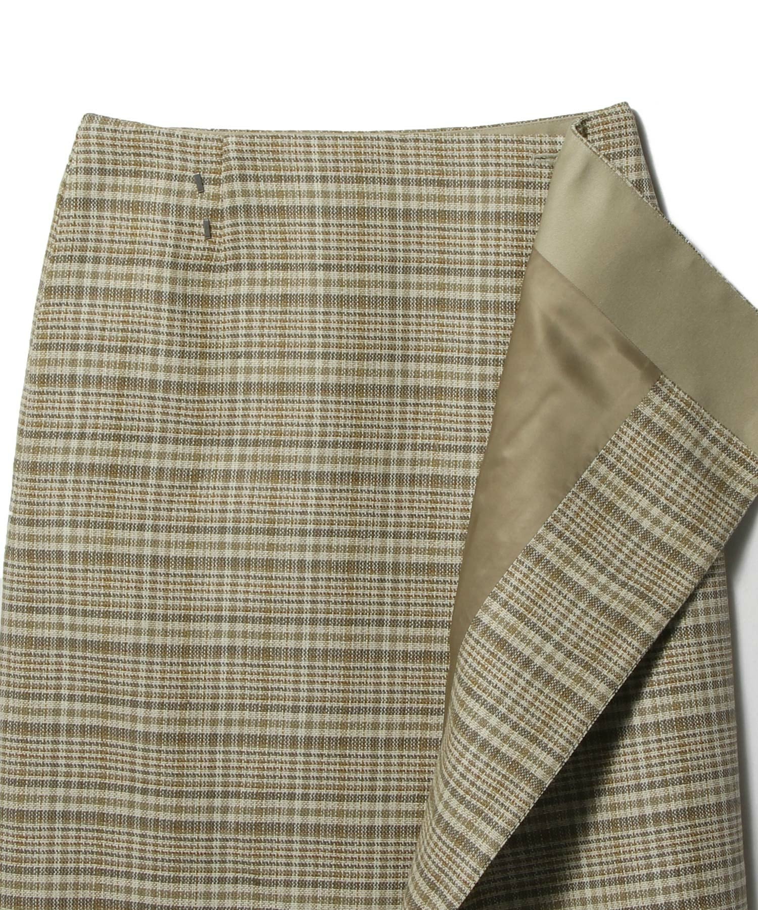 シルクノイルとリネンを組み合わせた三つ杢糸をタテヨコに使用した、軽やかなサマーツイードのラップスカート。