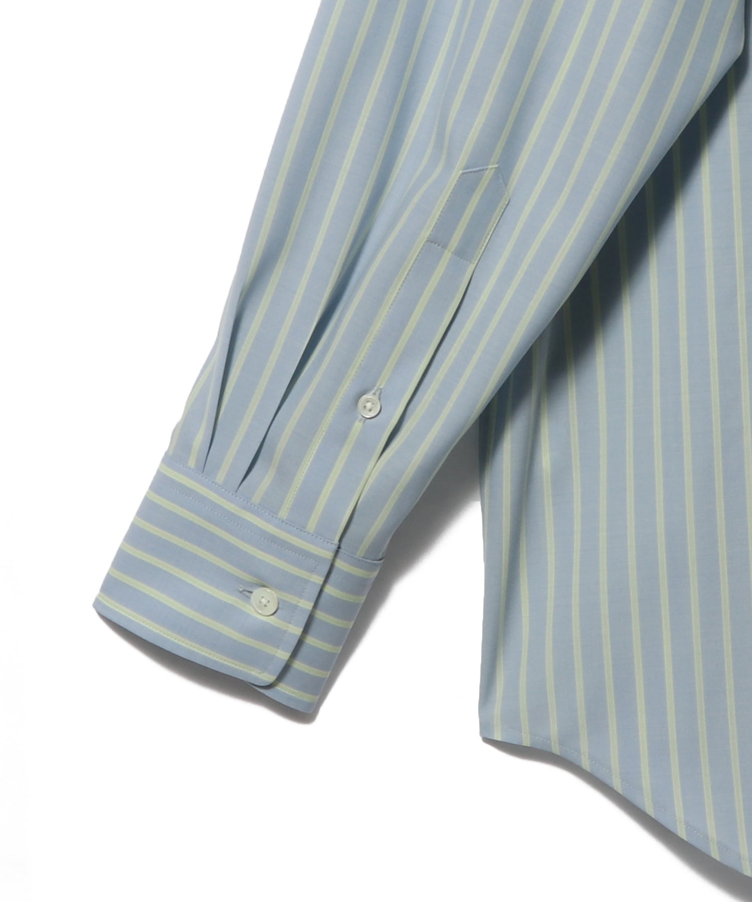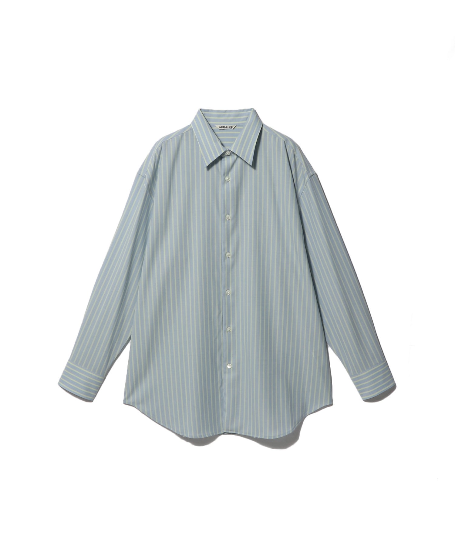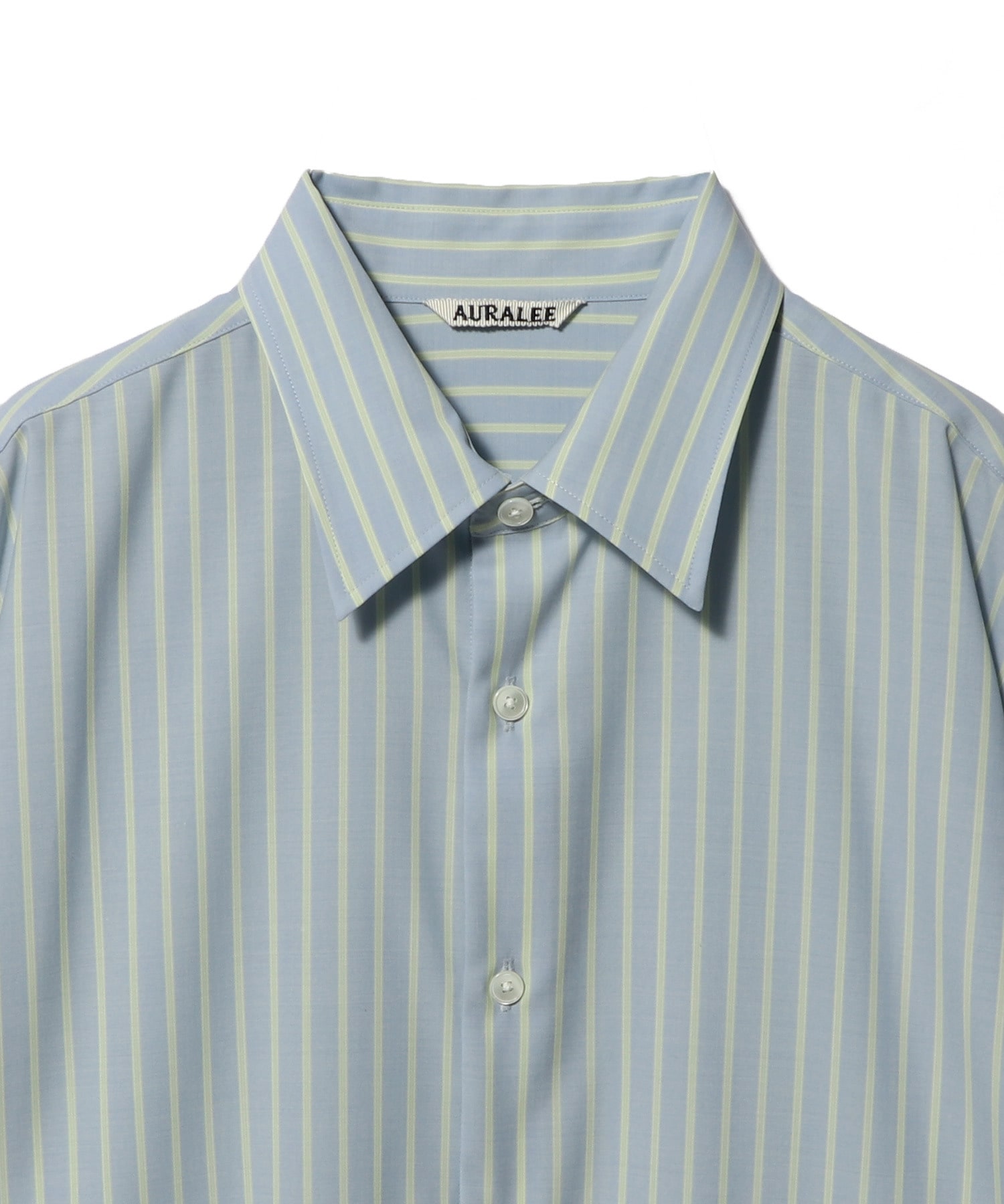 スーパー180’s原料を使用した、AURALEEならではの極細番手ウール100%素材のストライプシャツ。