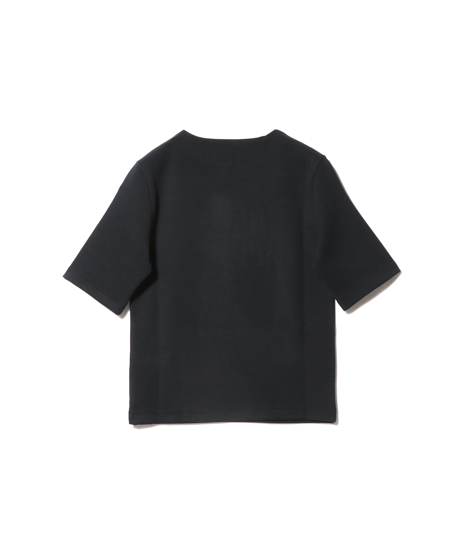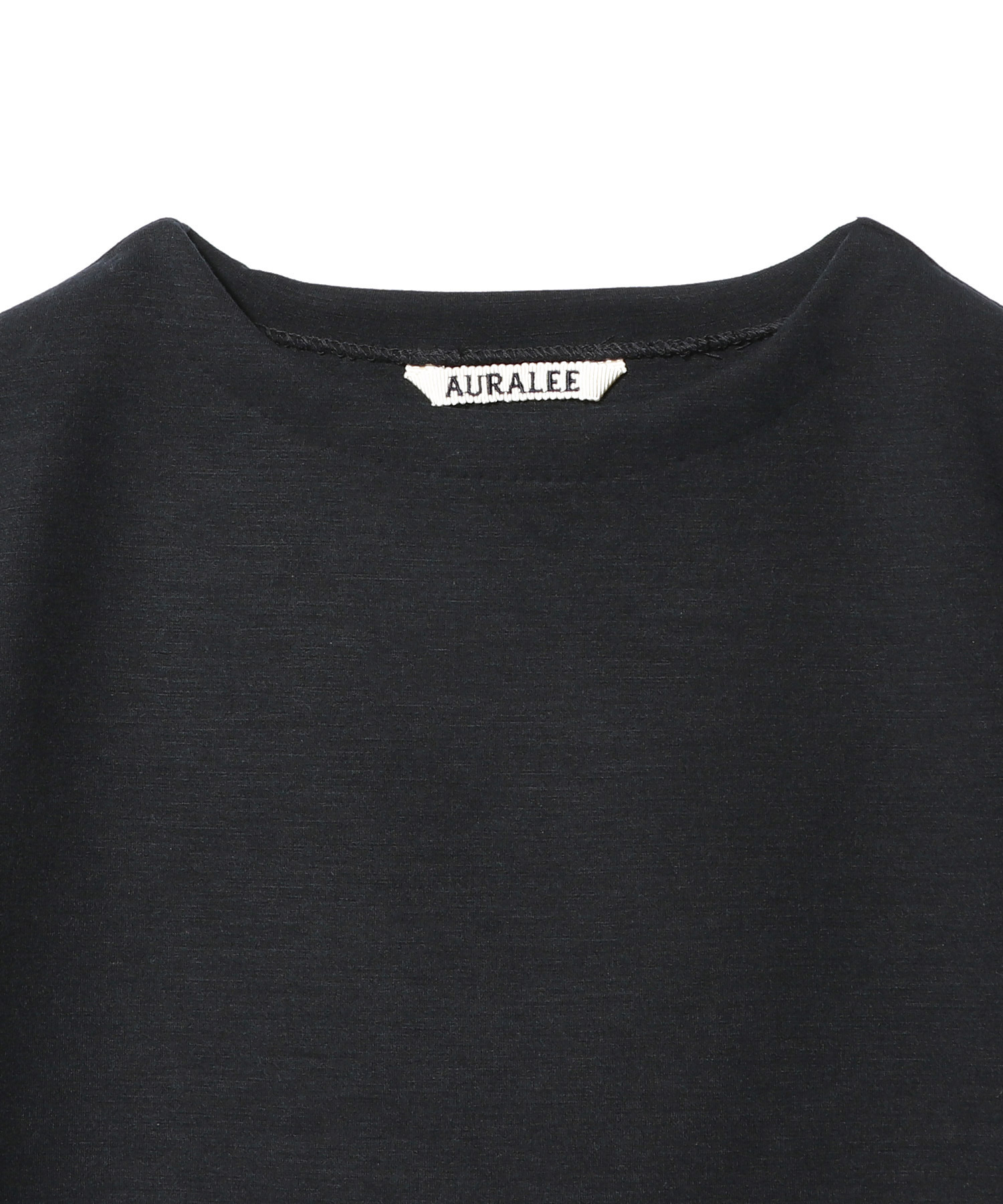 広すぎない開きのボートネックが首元をすっきりと見せ、ミニマルなデザインの中に上品な抜け感を演出します。