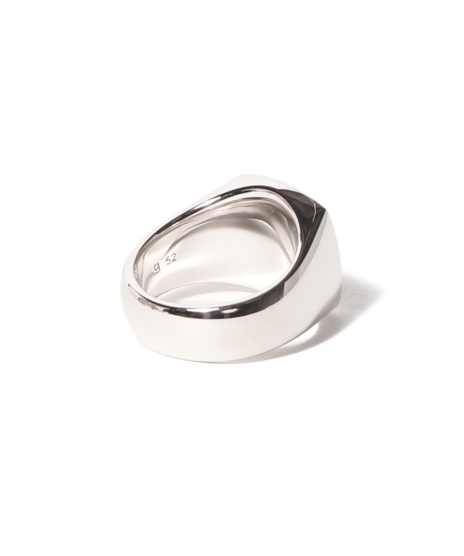 なめらかなベゼルにカスタムカットのラルビカイトを丁寧に手作業で埋め込んだ、クラシックなシグネットリング。