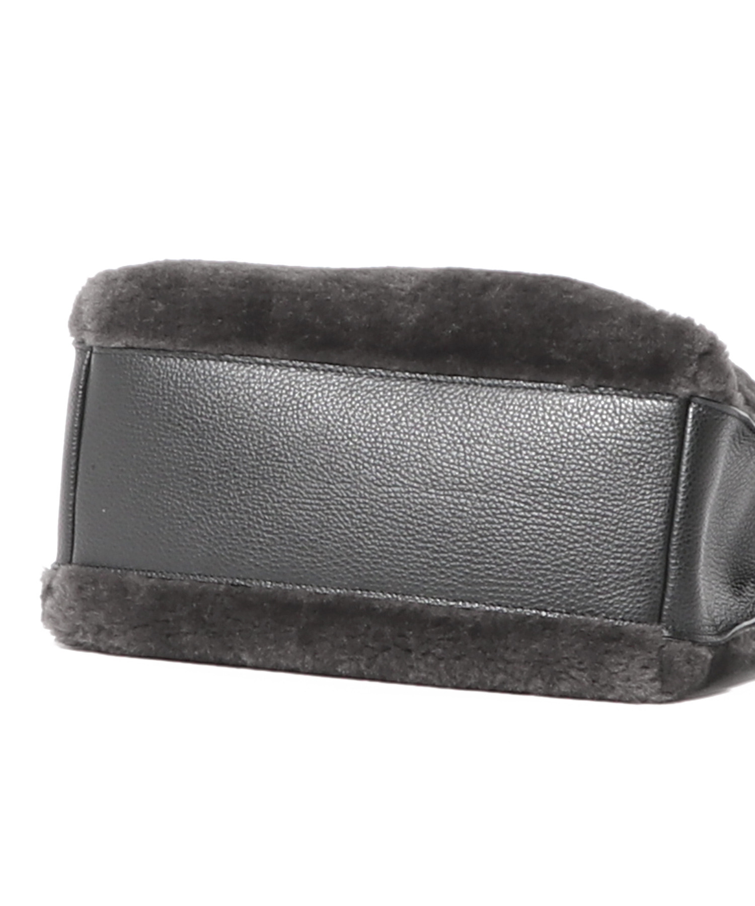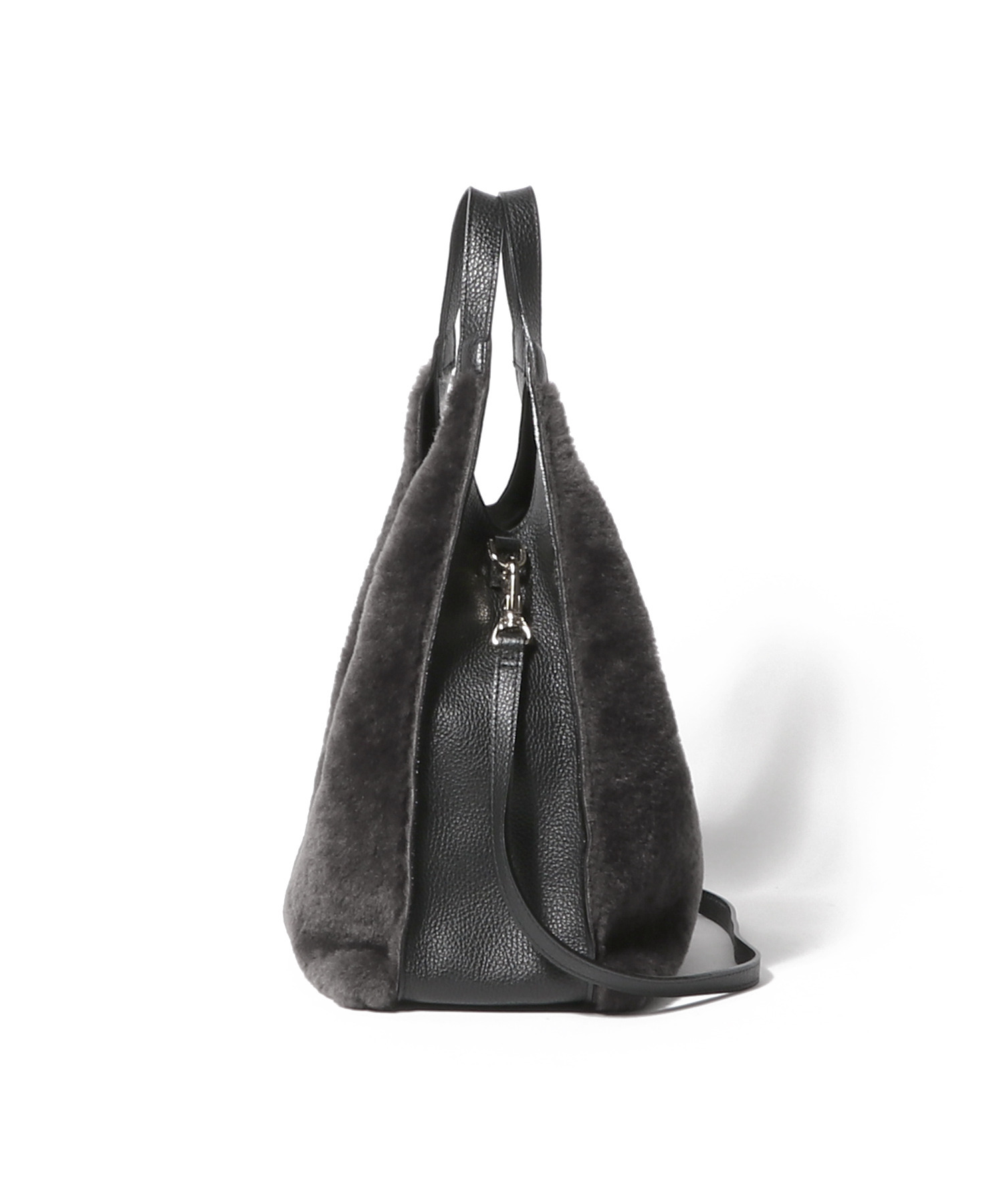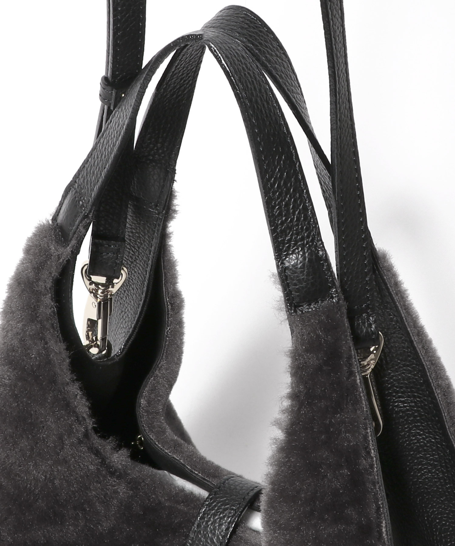 ボアとスムースレザー調の面がWフェイスになったエコファーのトートバッグ。