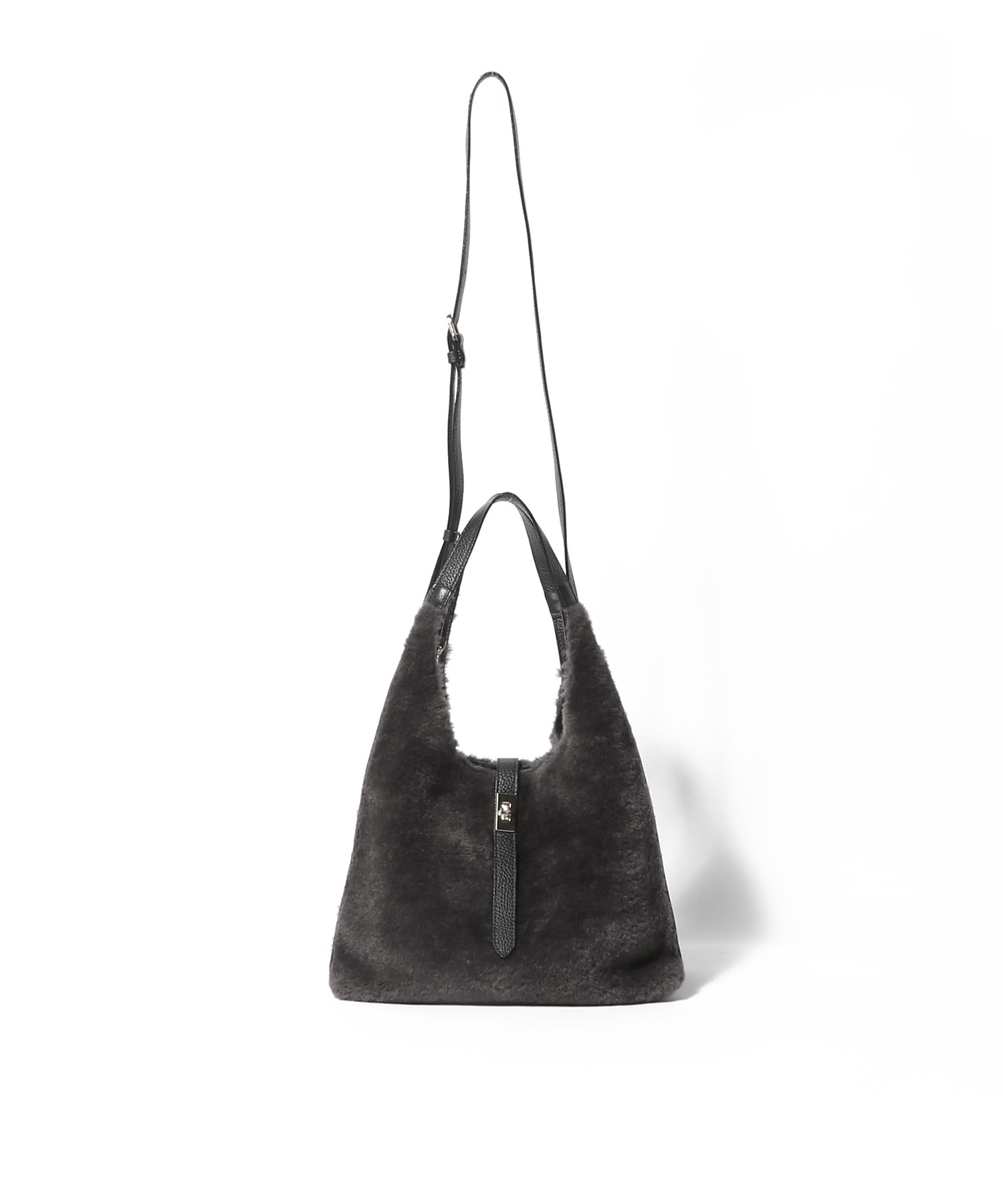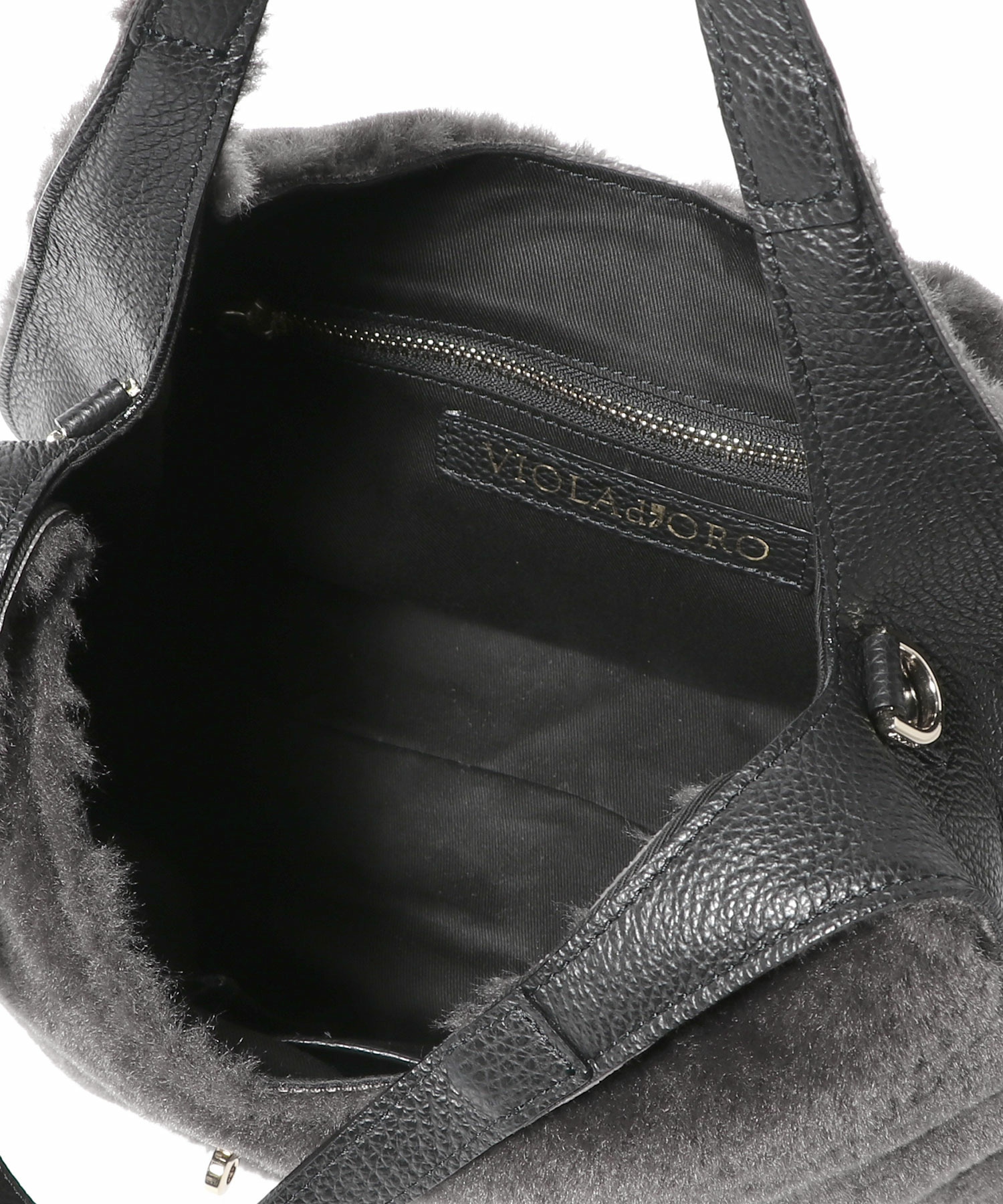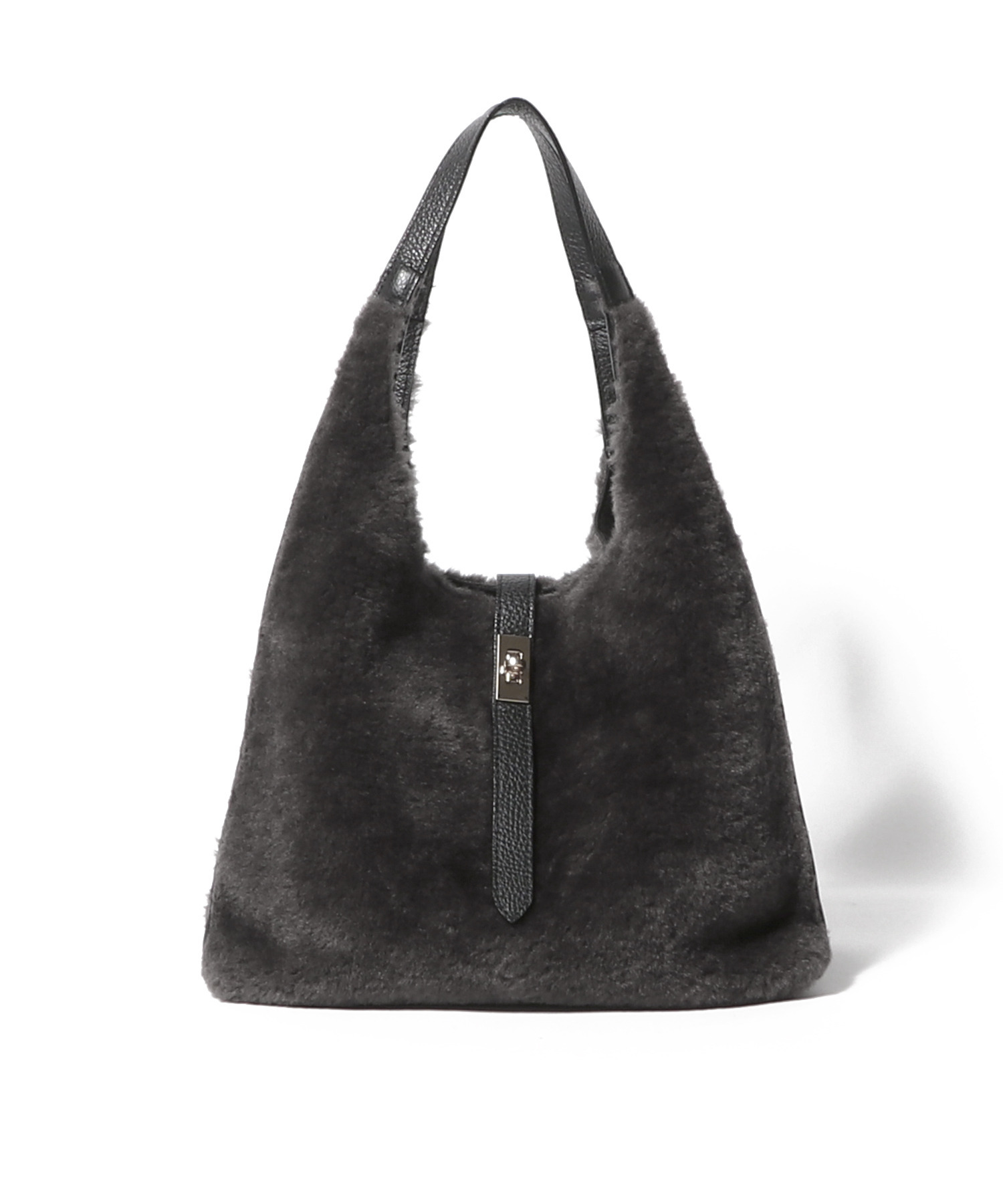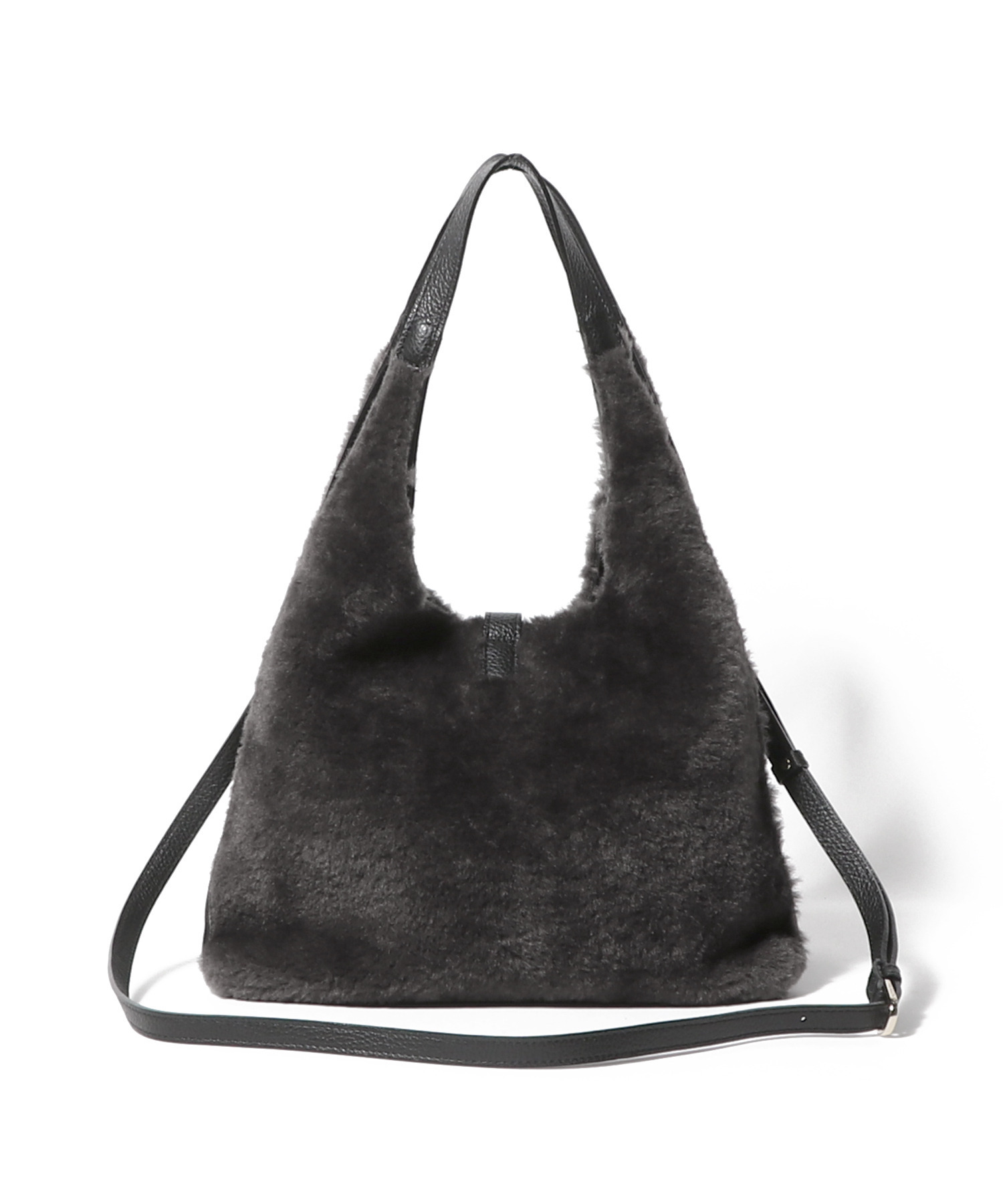 ボアとスムースレザー調の面がWフェイスになったエコファーのトートバッグ。