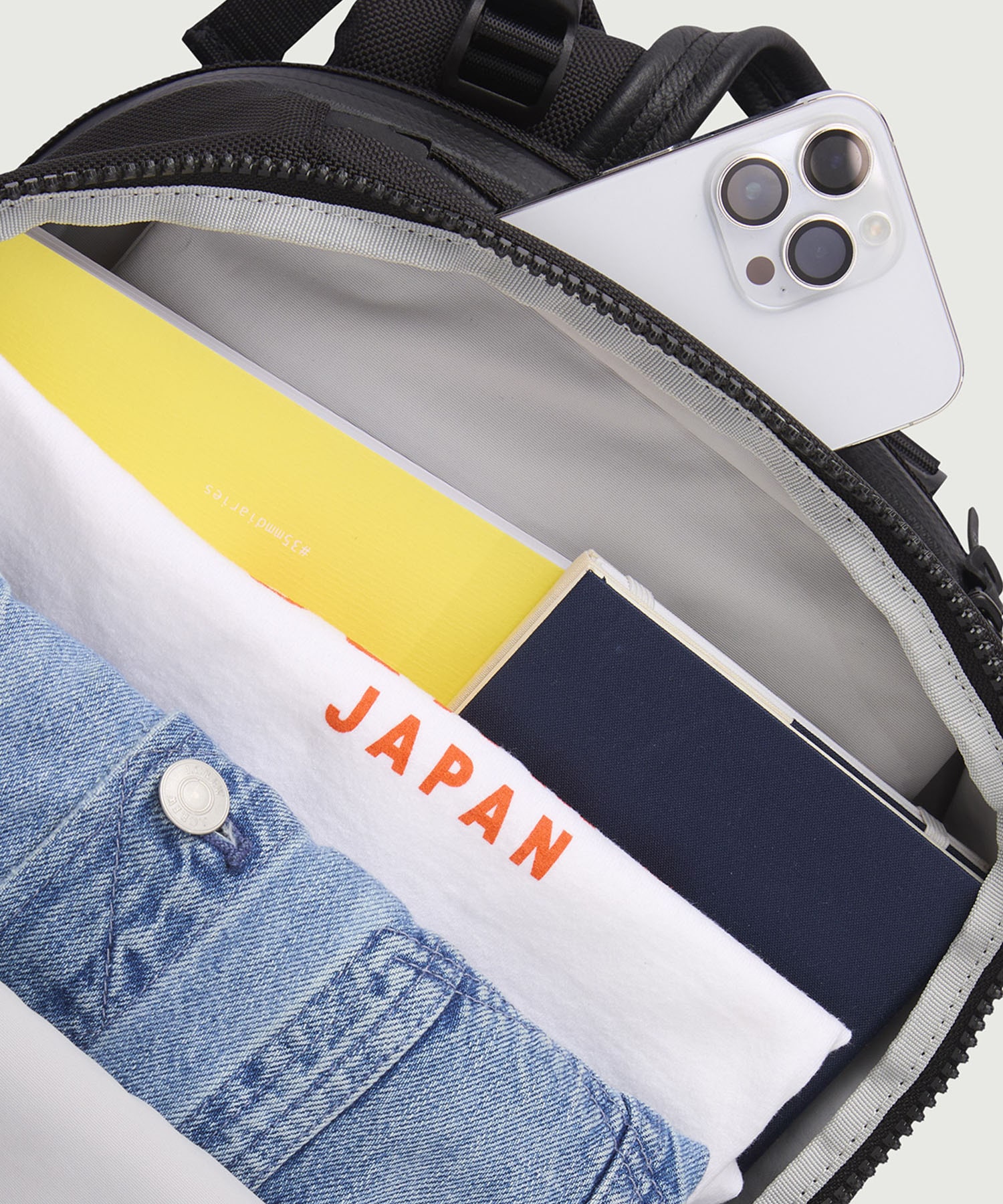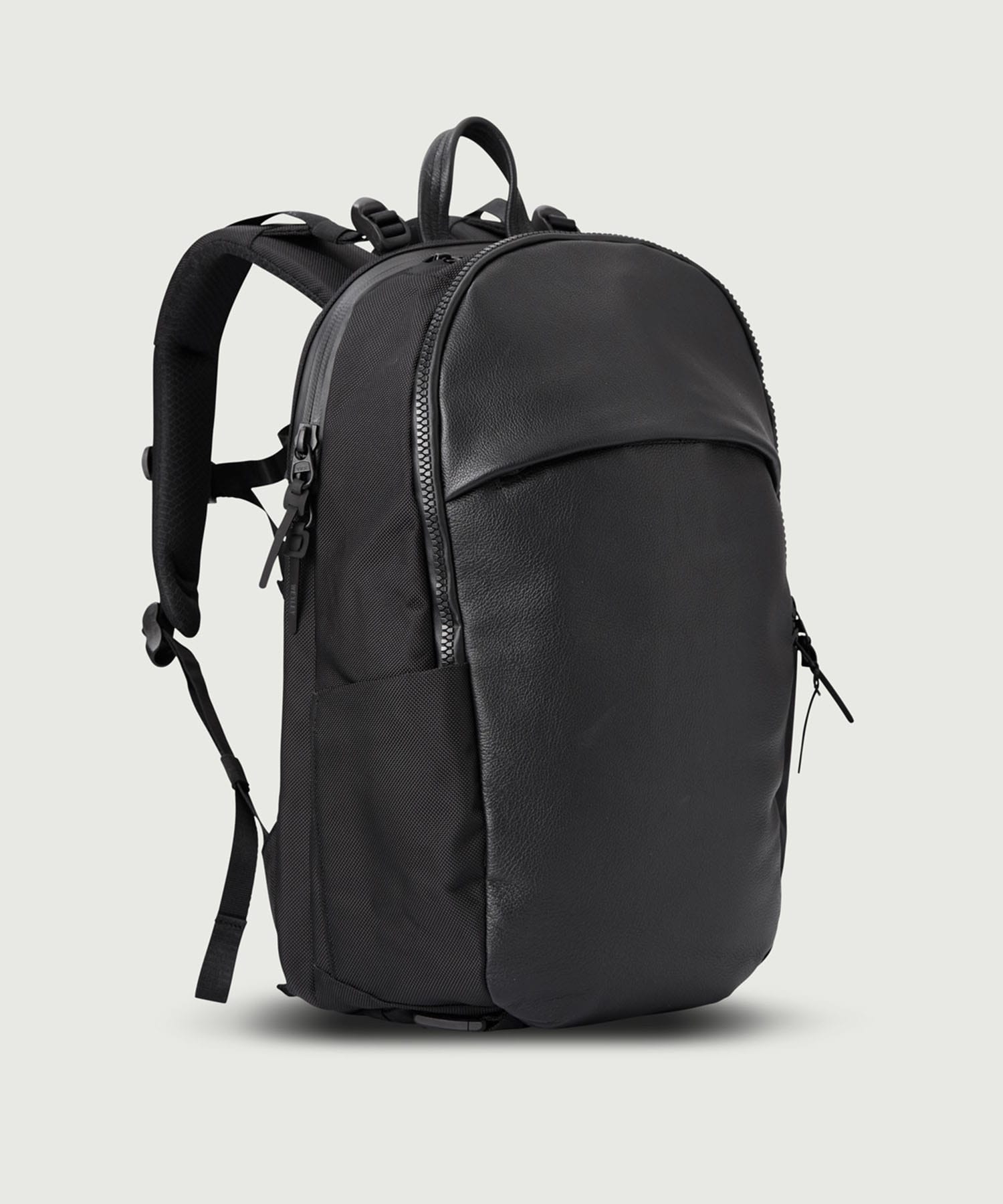 | 素材 | フロントパネル・ハンドル:撥⽔グレインレザー ボディ:1680D Cordura®バリスティックナイロン ライニング:ポリエステル 付属エコバッグ:Ripstopナイロン YKK YKK社製VISLON® AquaGuard® FIDLOCK社製チェストストラップ |