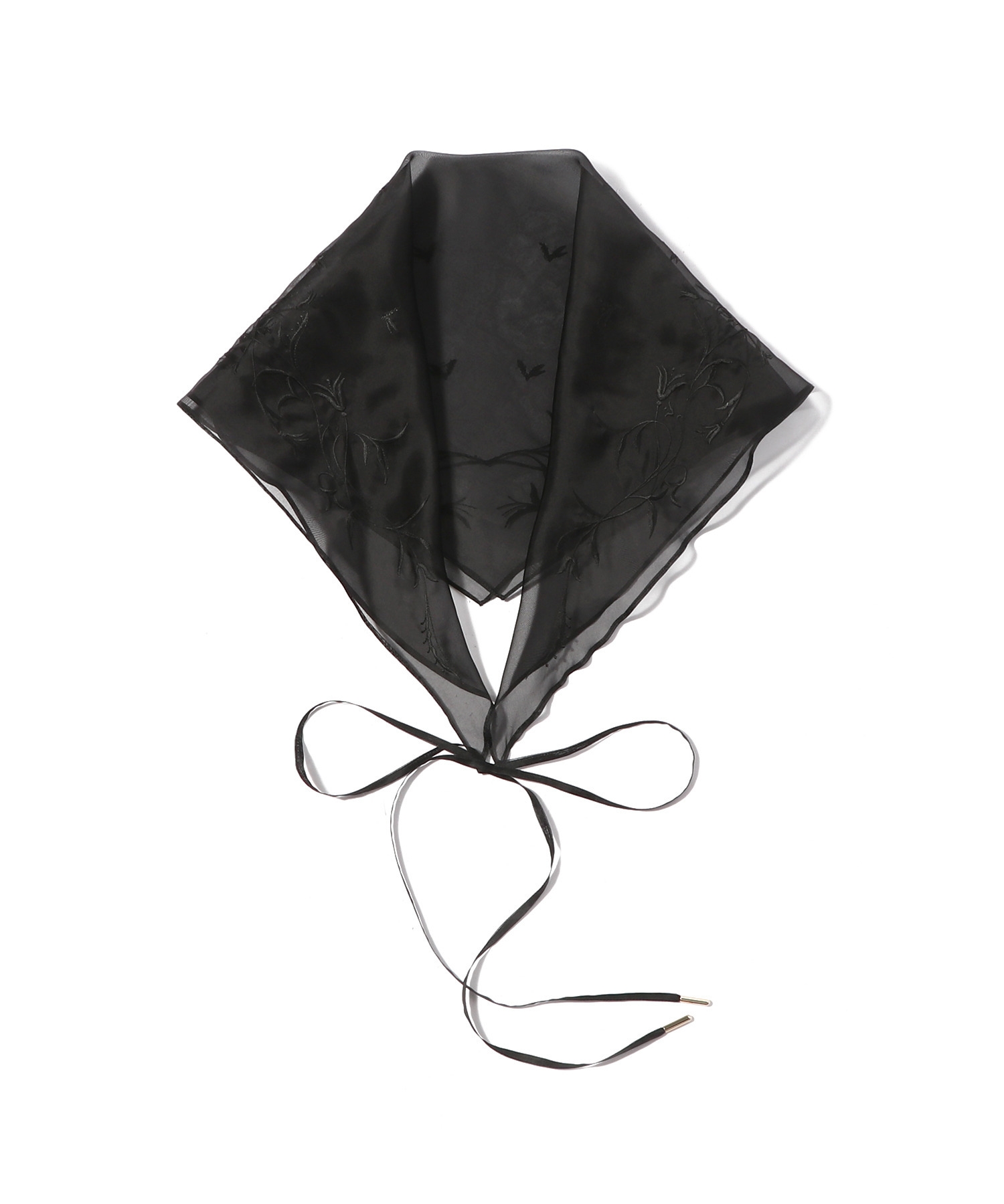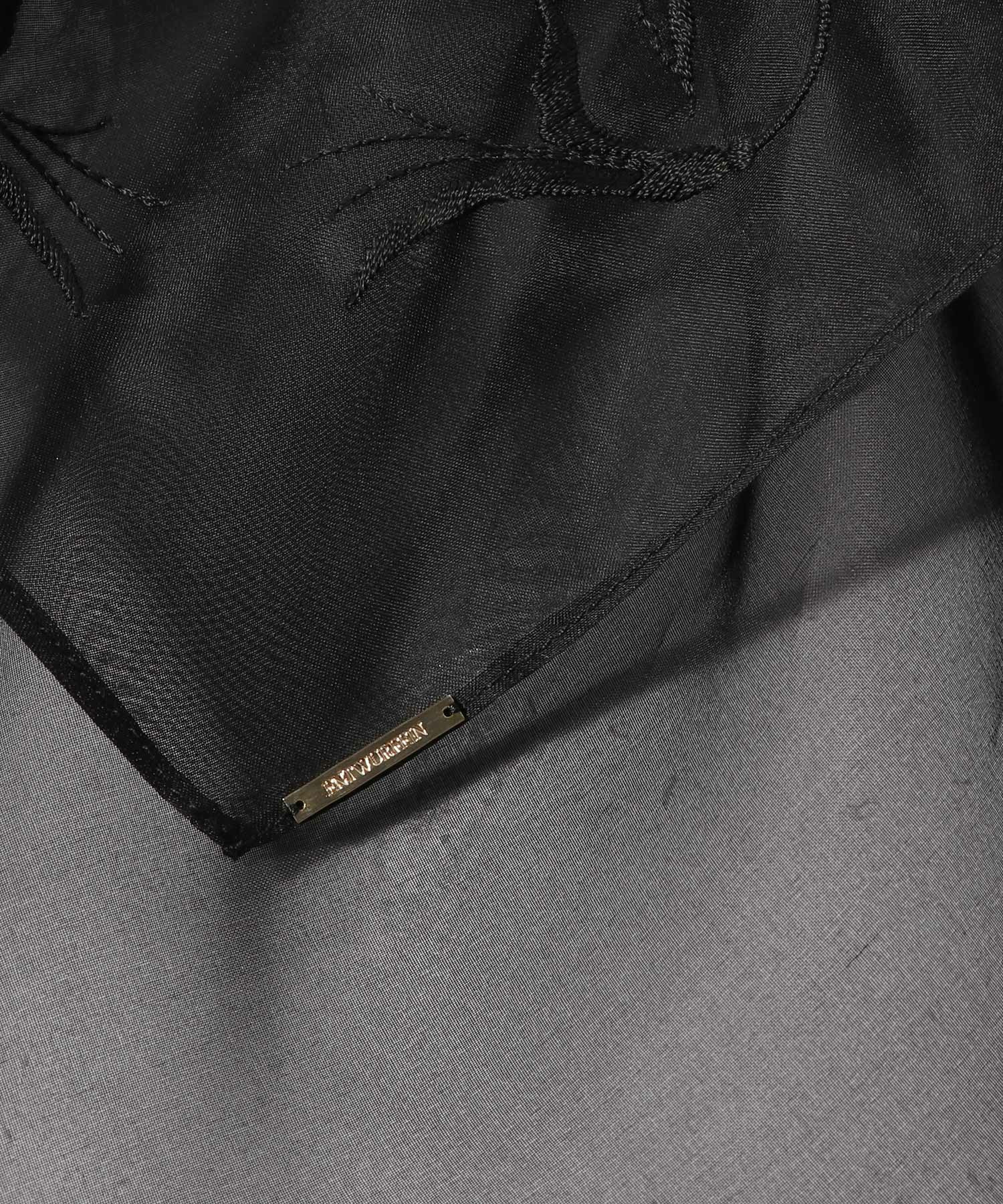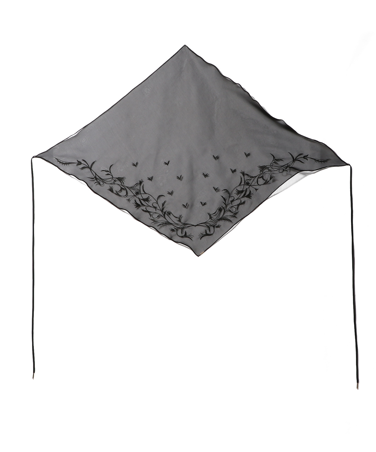 シルクオーガンジーの透けるように繊細な素材に、植物をモチーフとした手書き図案の刺繍をあしらったバブーシュカ。