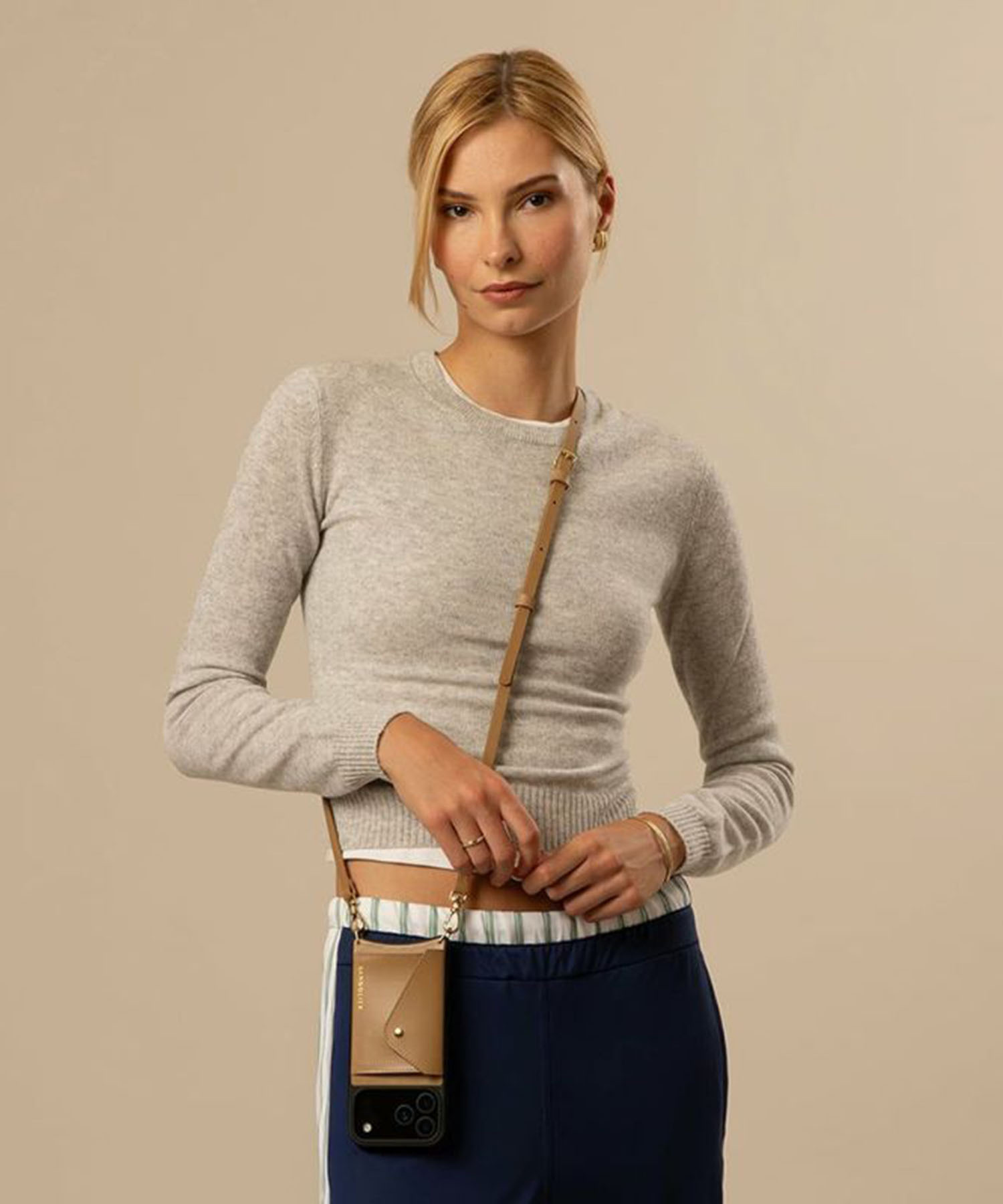 オリジナルiPhoneケースに長めのストラップがついた革新的な デザインは、ハンズフリーでスマートに持ち運びができ、瞬く間に高感度でアクティブな女性達を虜にしました。