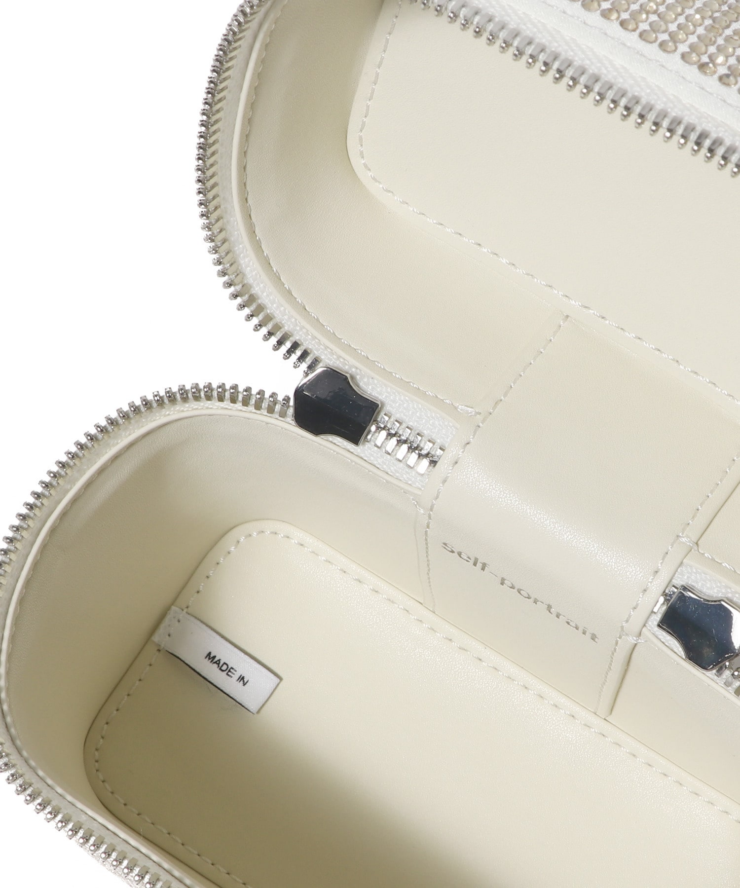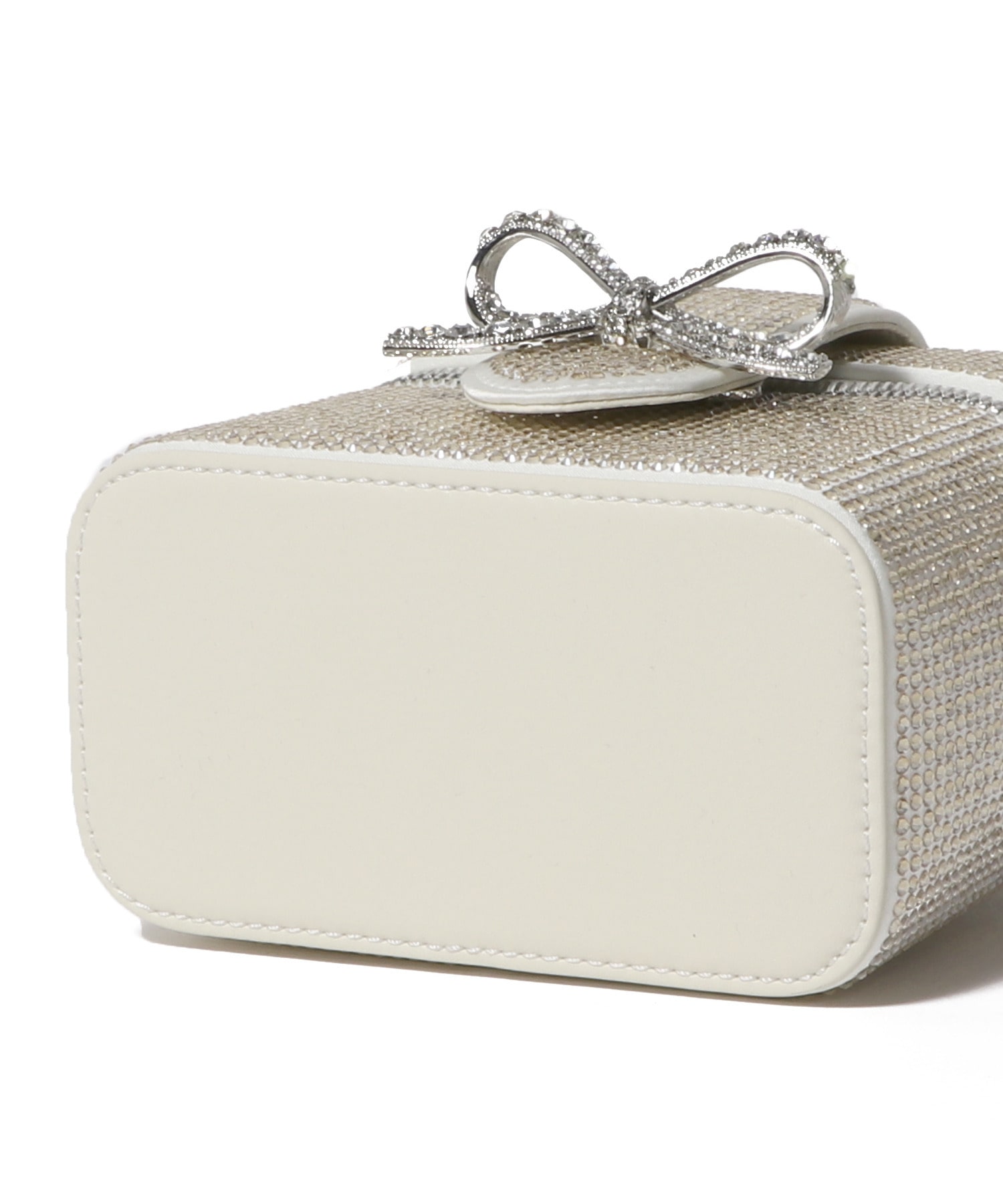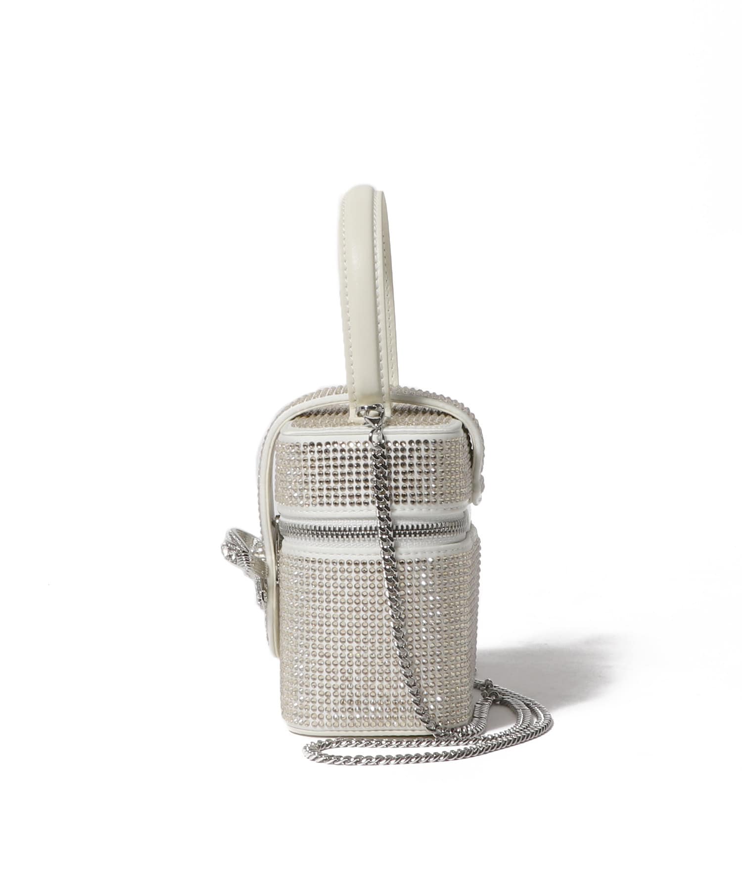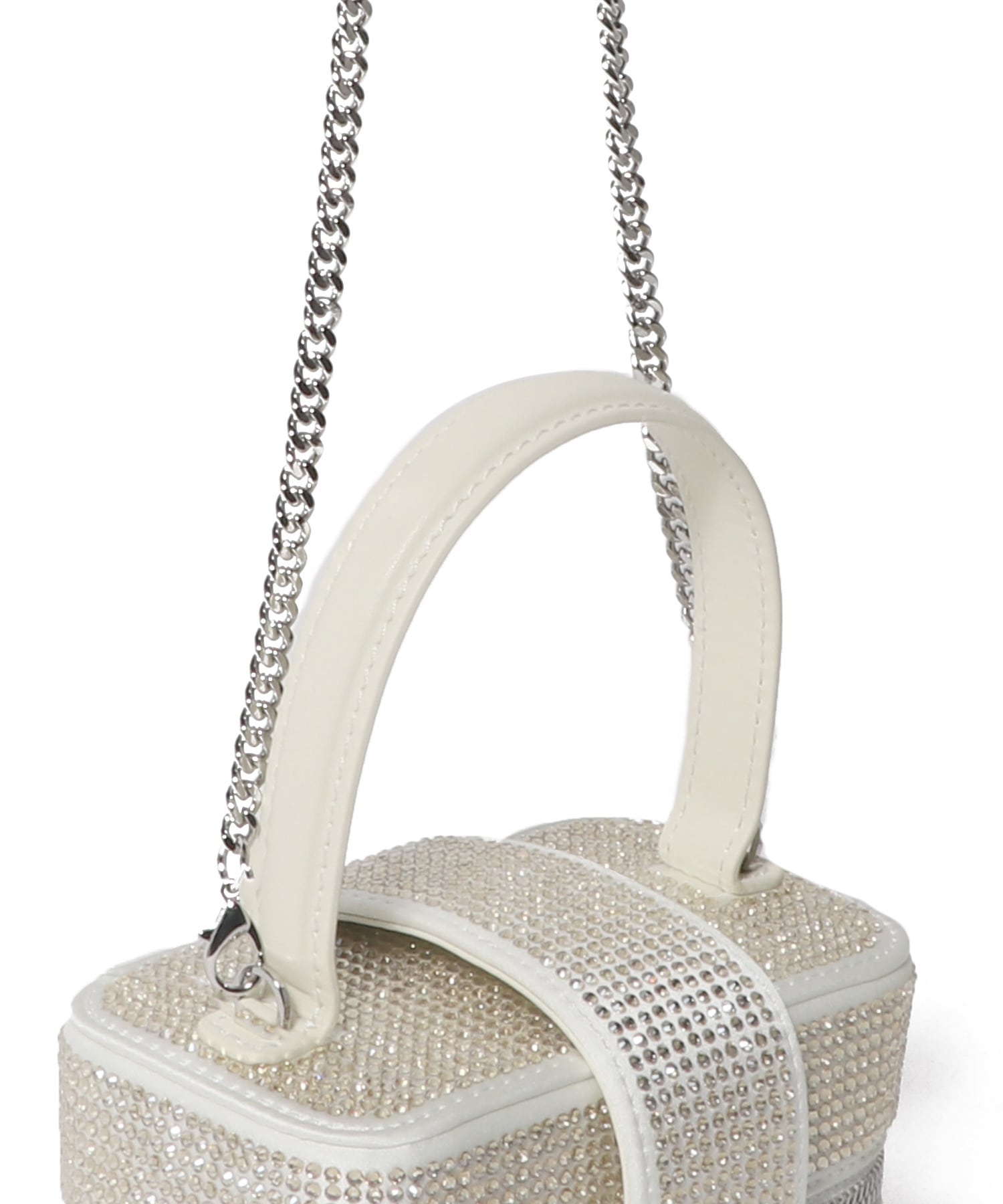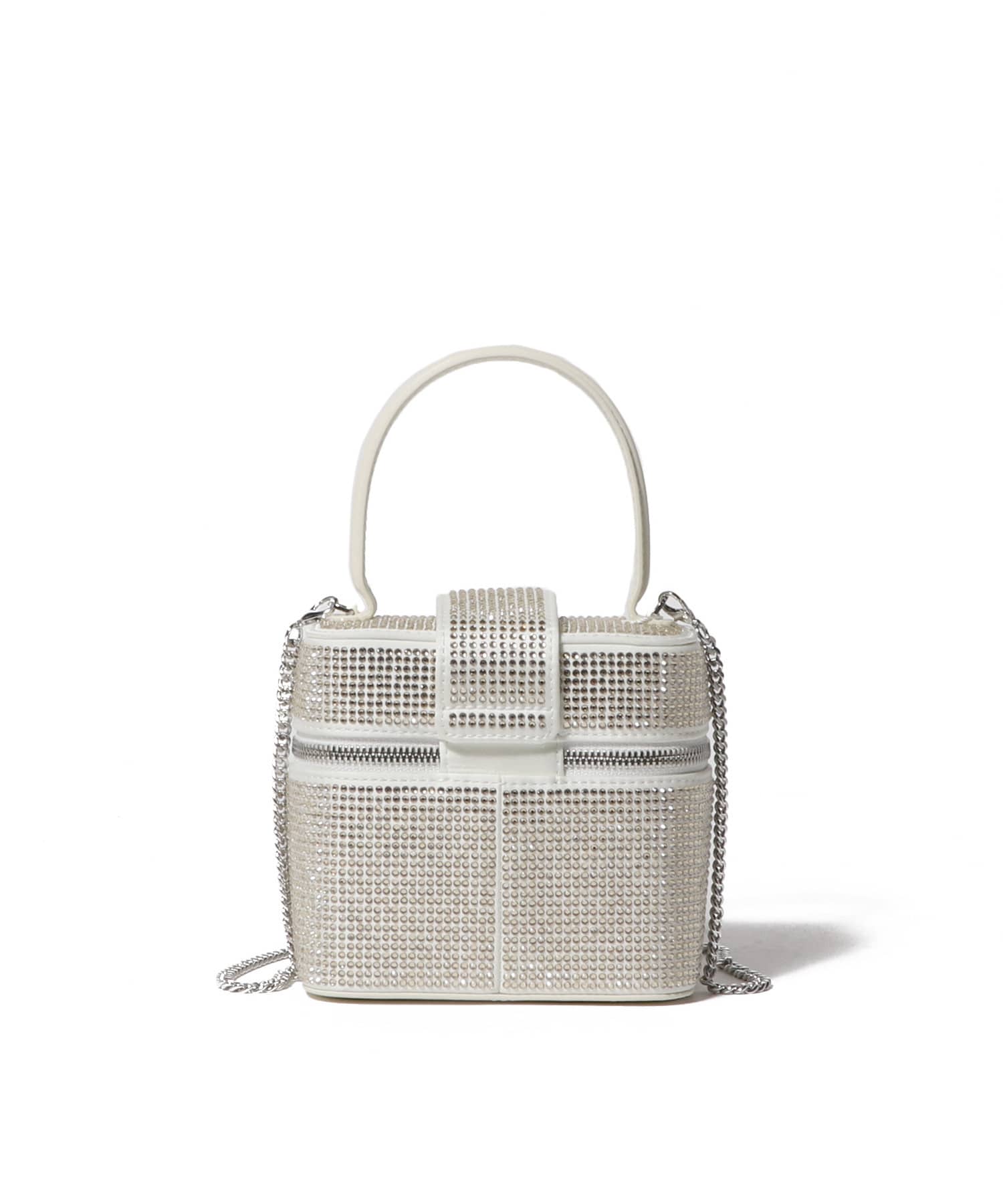 華やかなクリスタルが全面にあしらわれた、視線を惹きつけるボックス型バッグ。