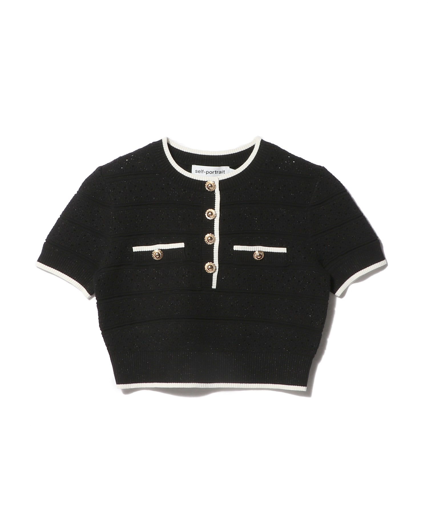 ブラック×ホワイトの配色がクラシカルな一着。クロップド丈とパフスリーブで、女性らしいバランスに決まります。