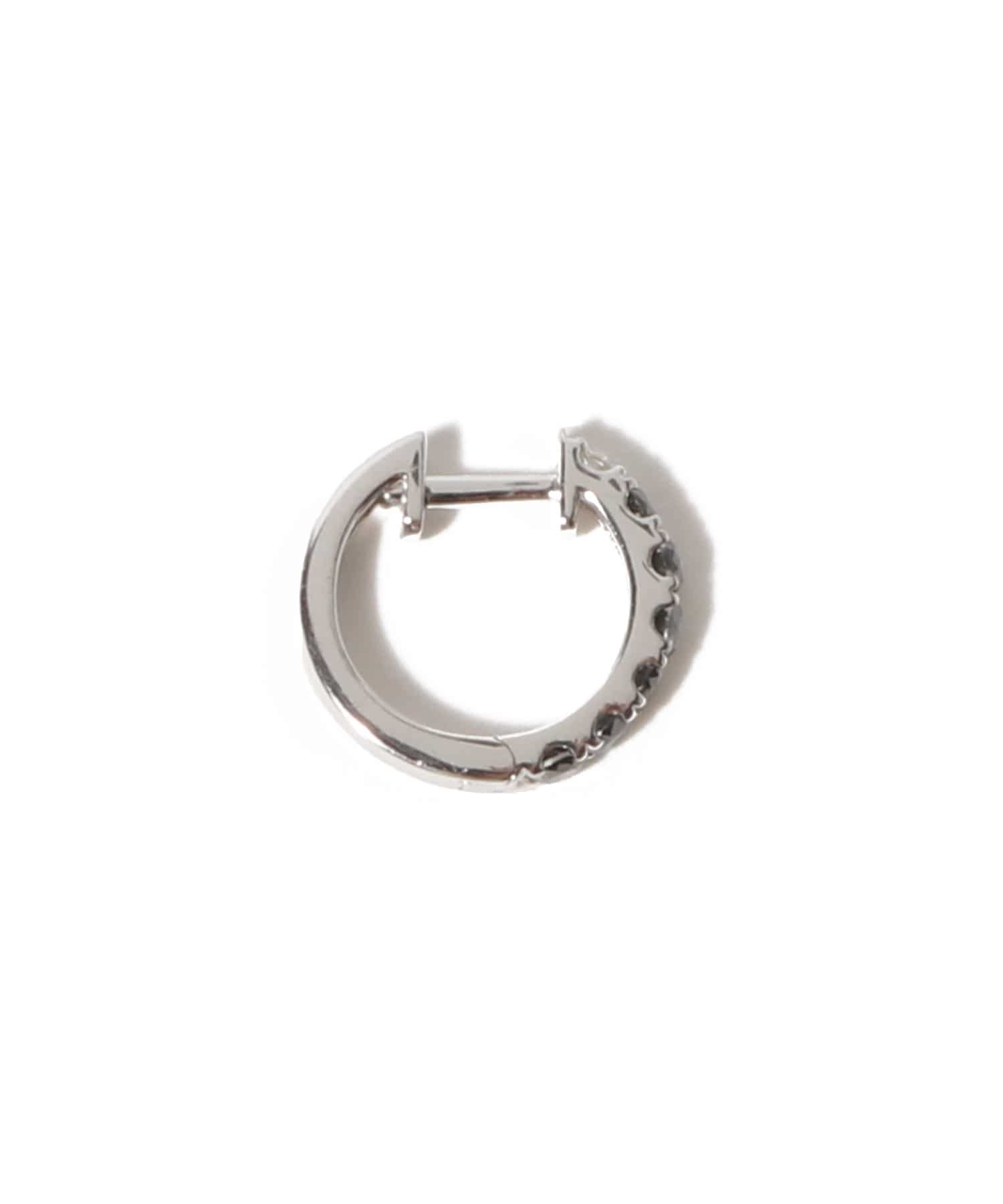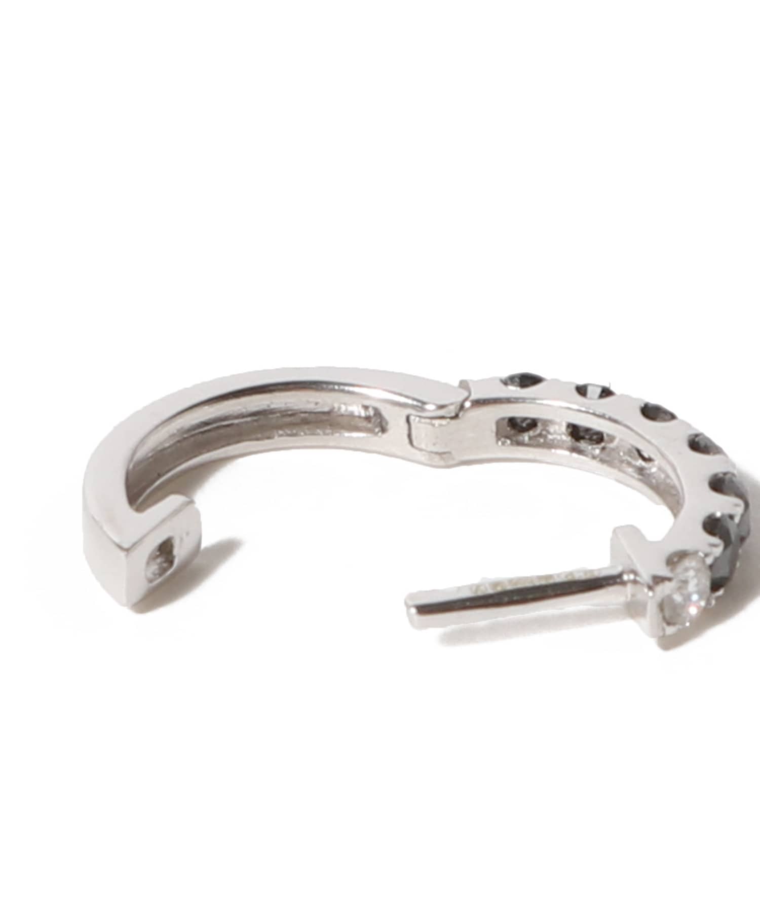 14ctホワイトゴールドに、ブラックとホワイトのパヴェダイヤモンドをセットしたフープ状の片耳用ピアス。