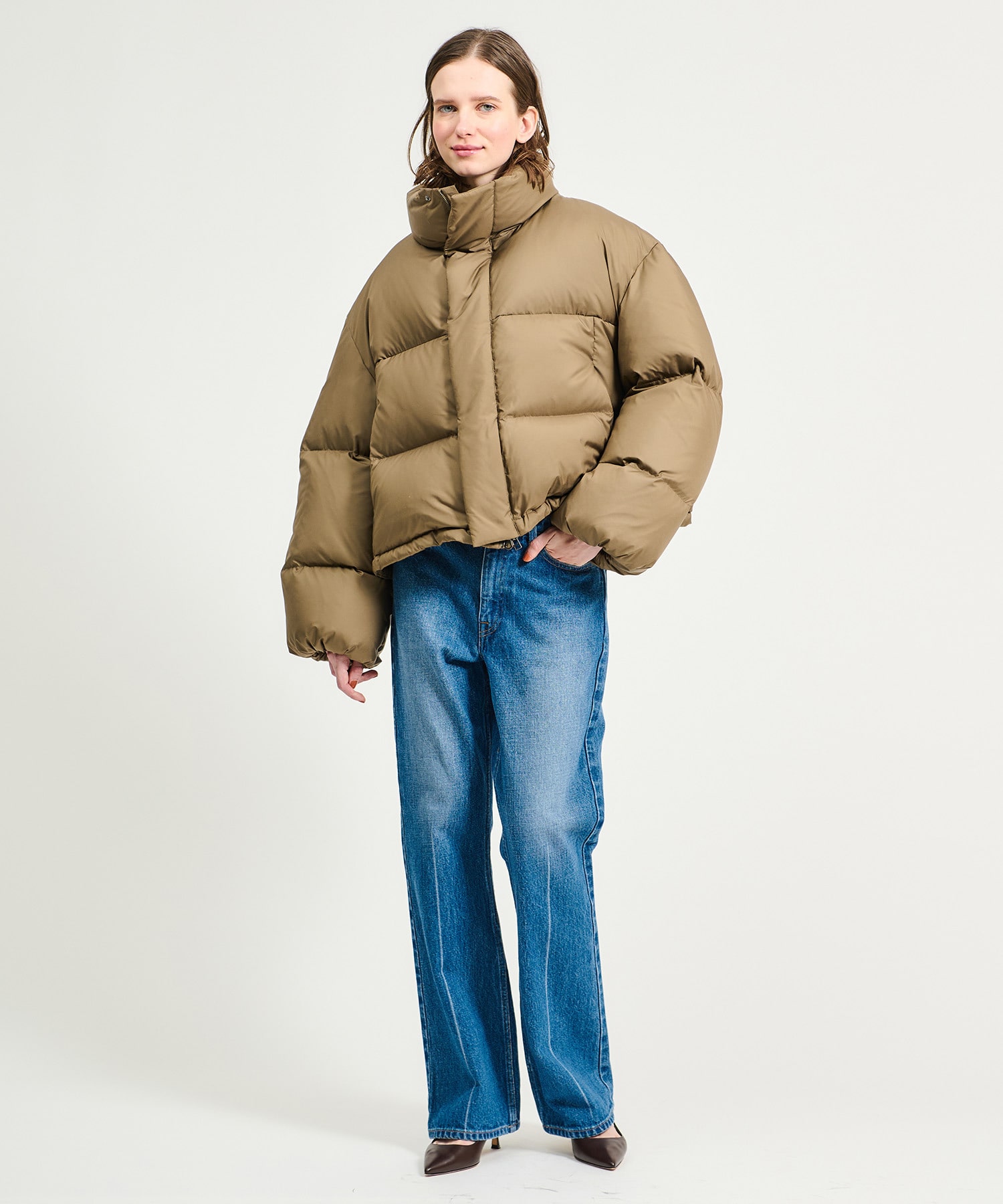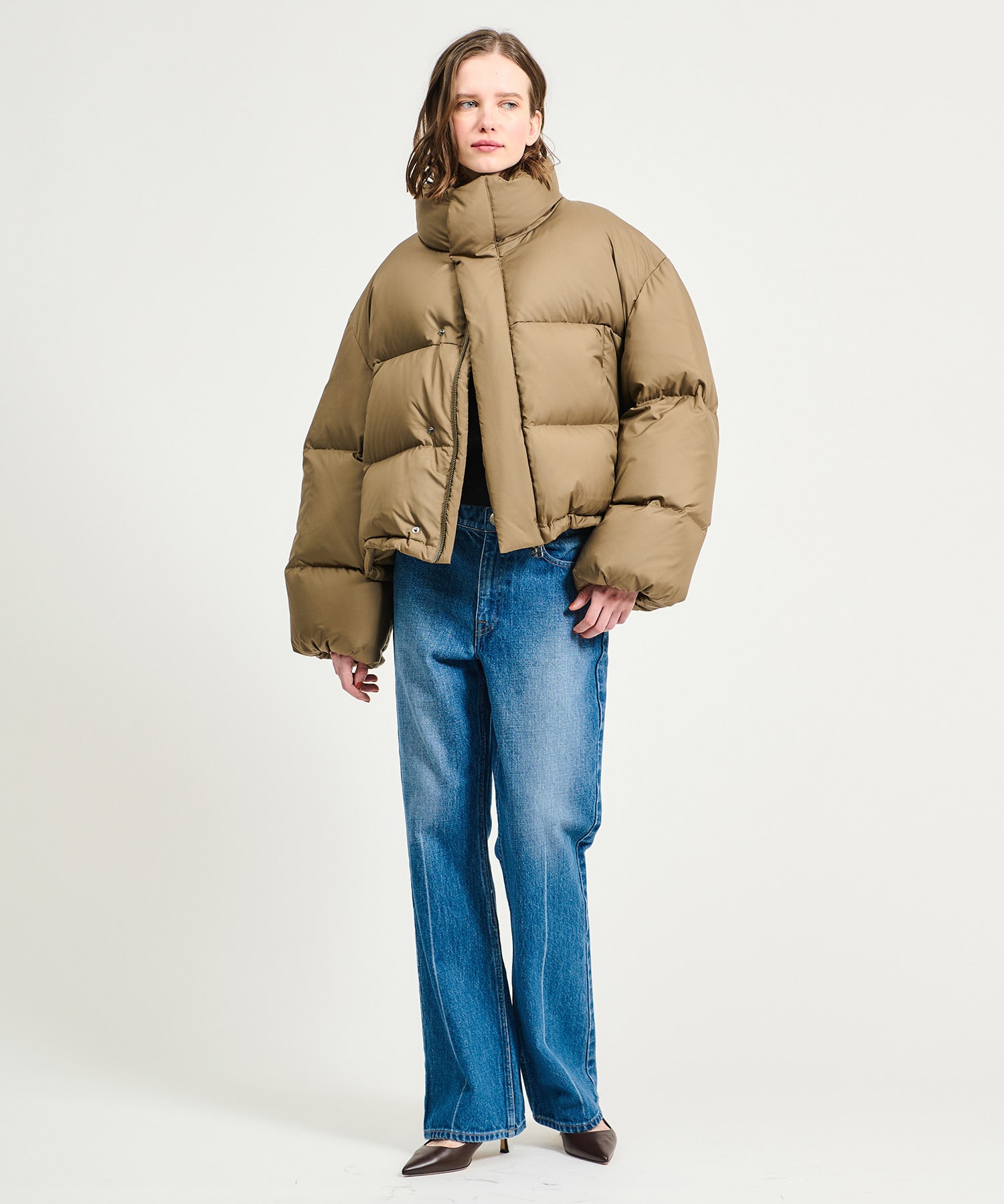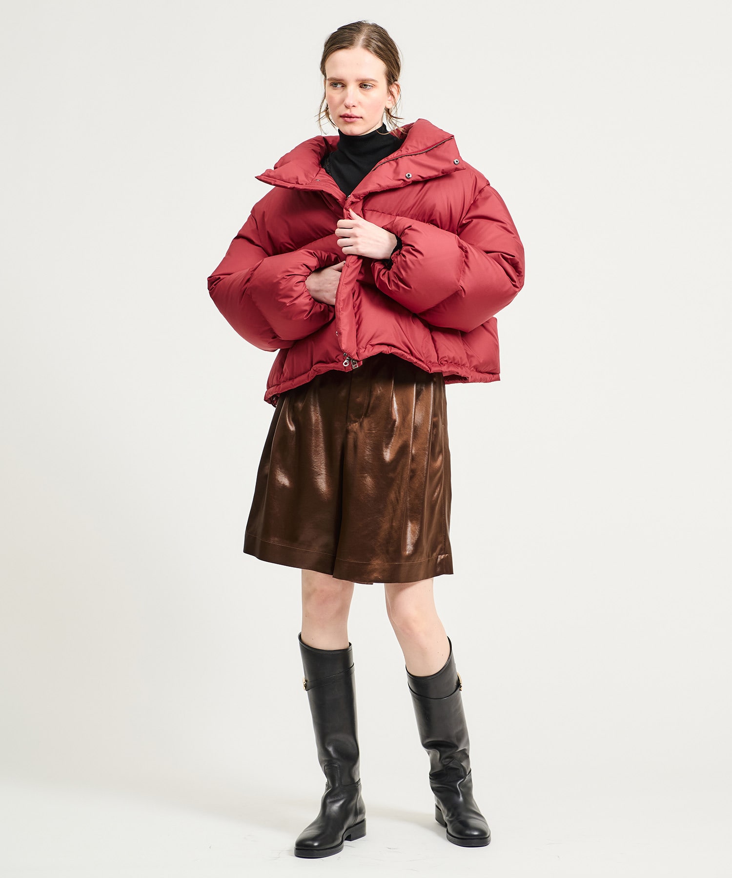 バランスの取りやすいショート丈、裾を絞って丸いフォルムで着るのもおすすめです。