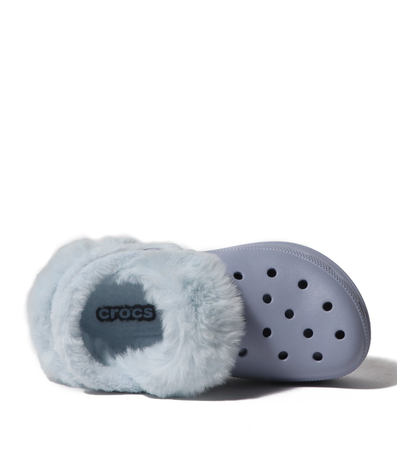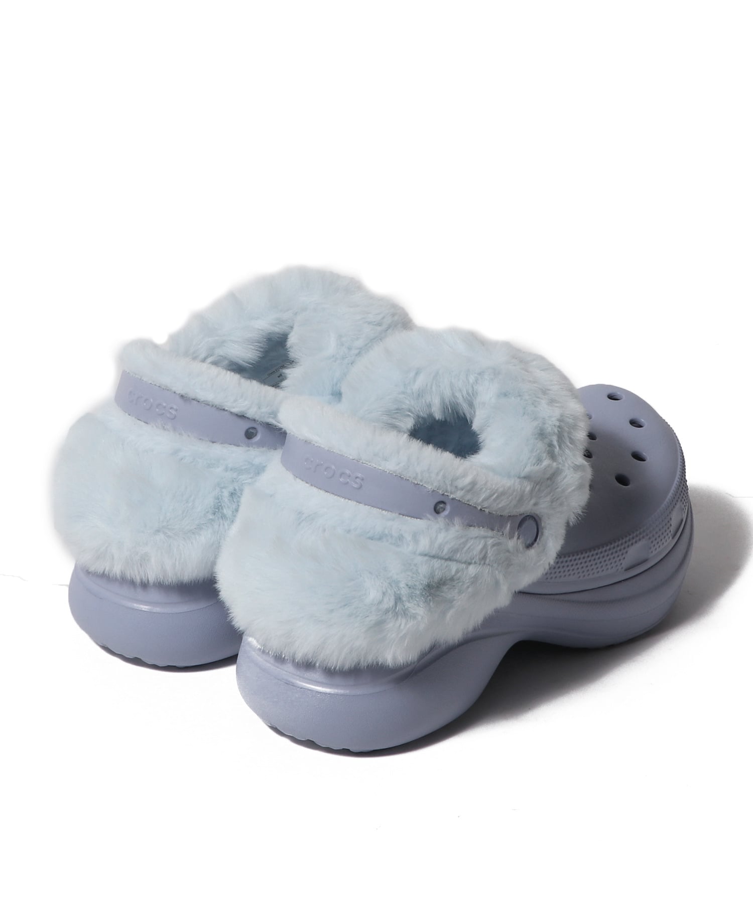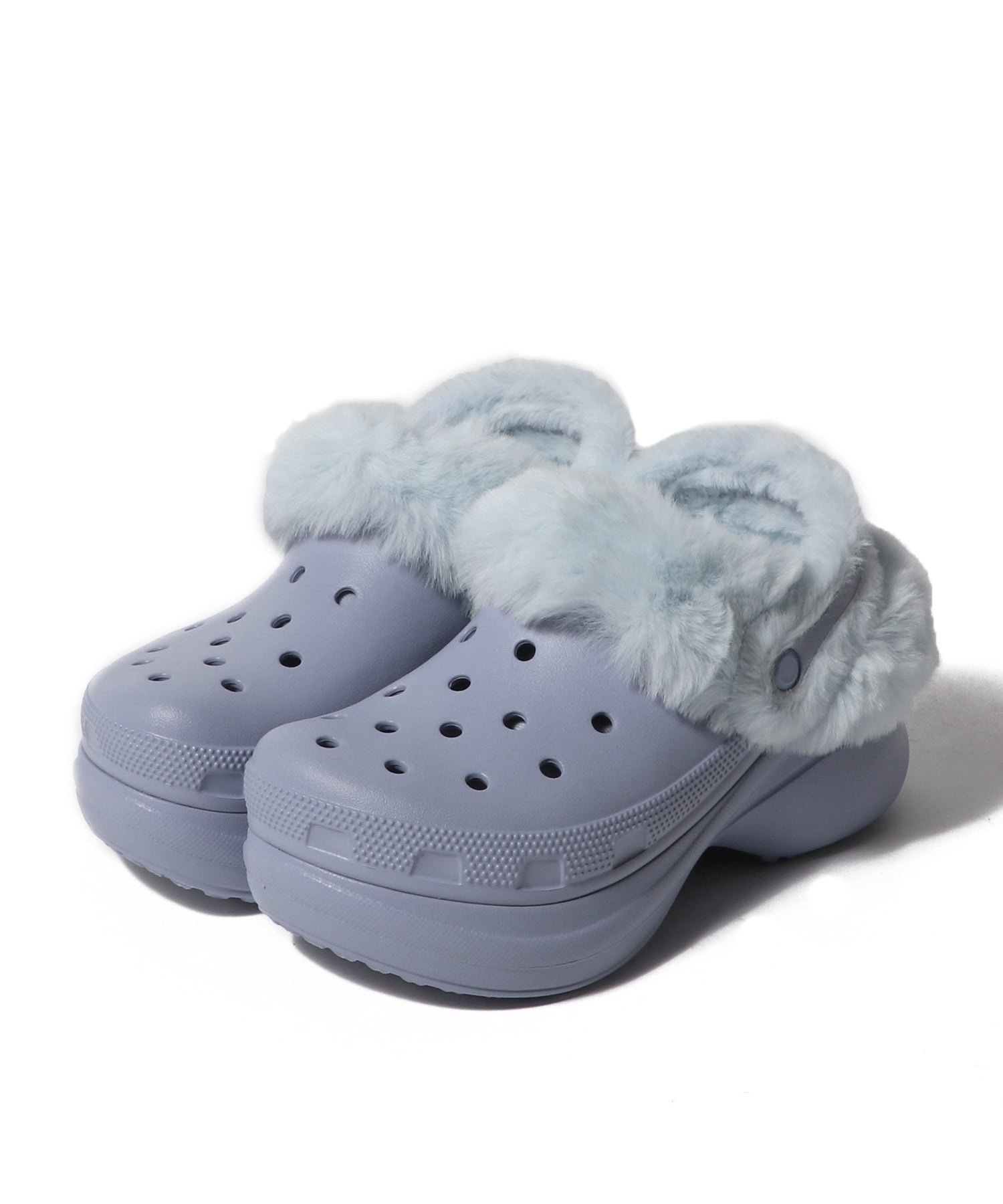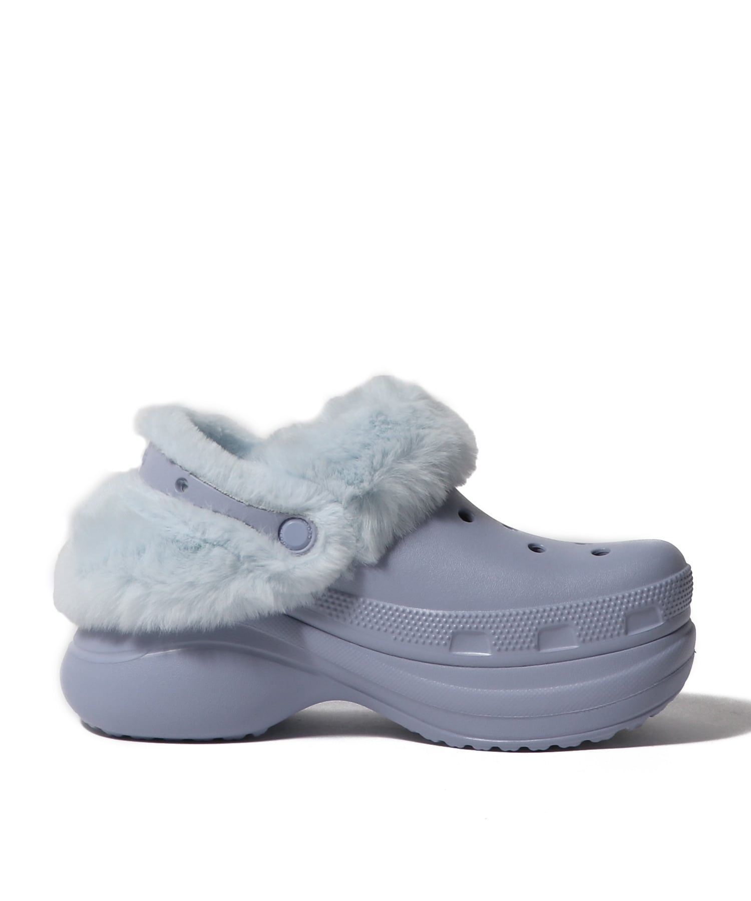高級感のあるソフトなフェイクファーを使った履き口と内側、そしてフェイクファー裏地のバックストラップで、究極の快適さとアイキャッチなスタイルのシューズに仕上がりました。元祖ベイ クロッグ同様、強調された輪郭で厚底のアウトソールが、楽しいジビッツ™を付けられるアッパーをサポートしています。
