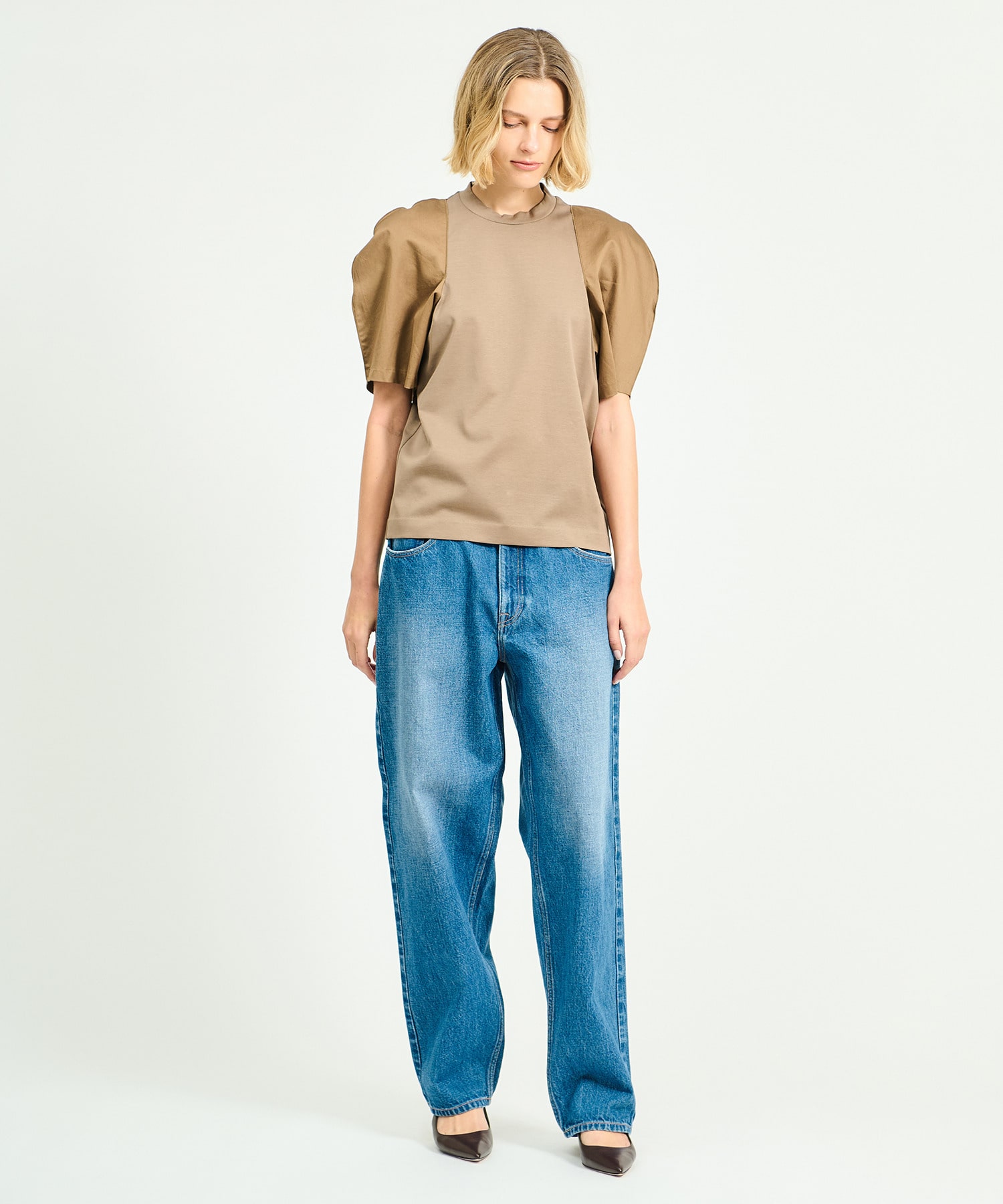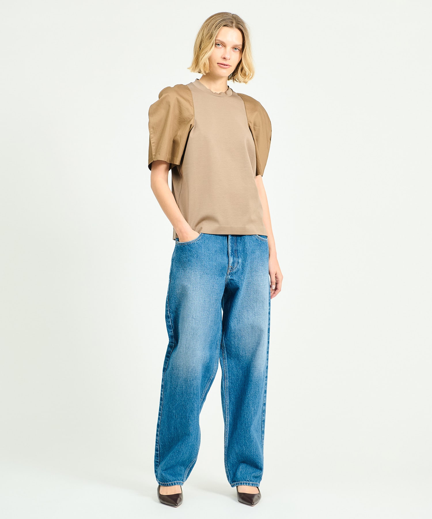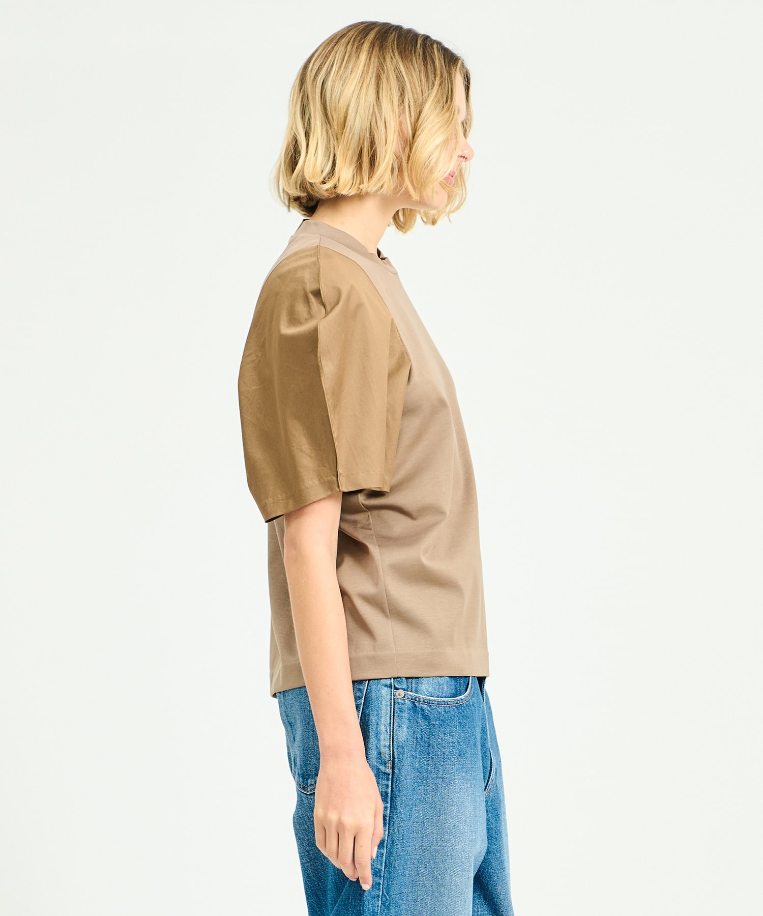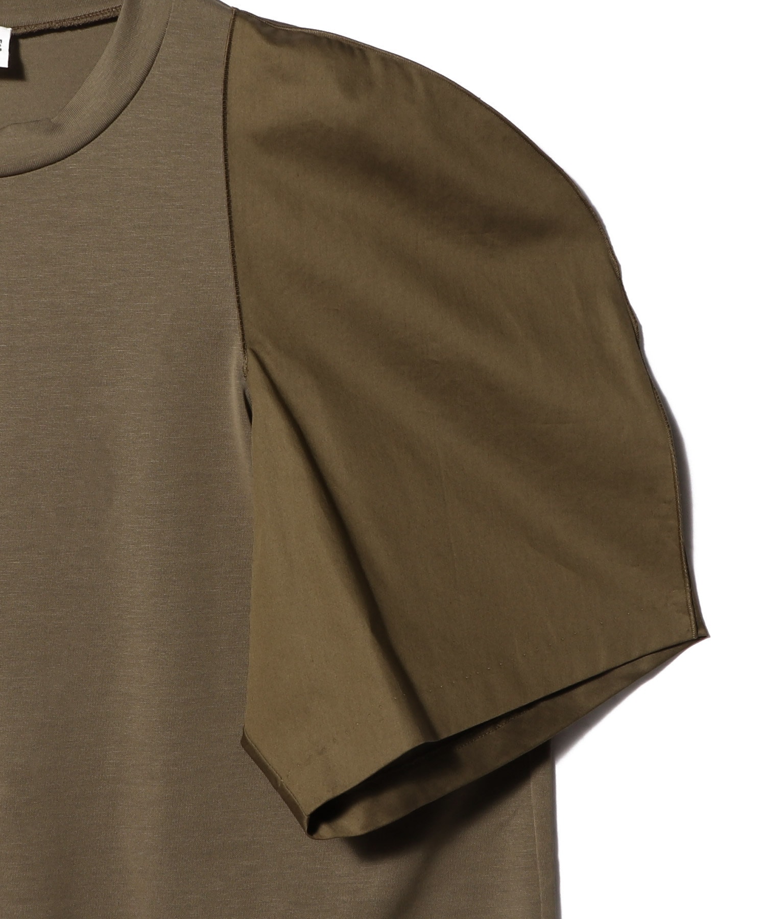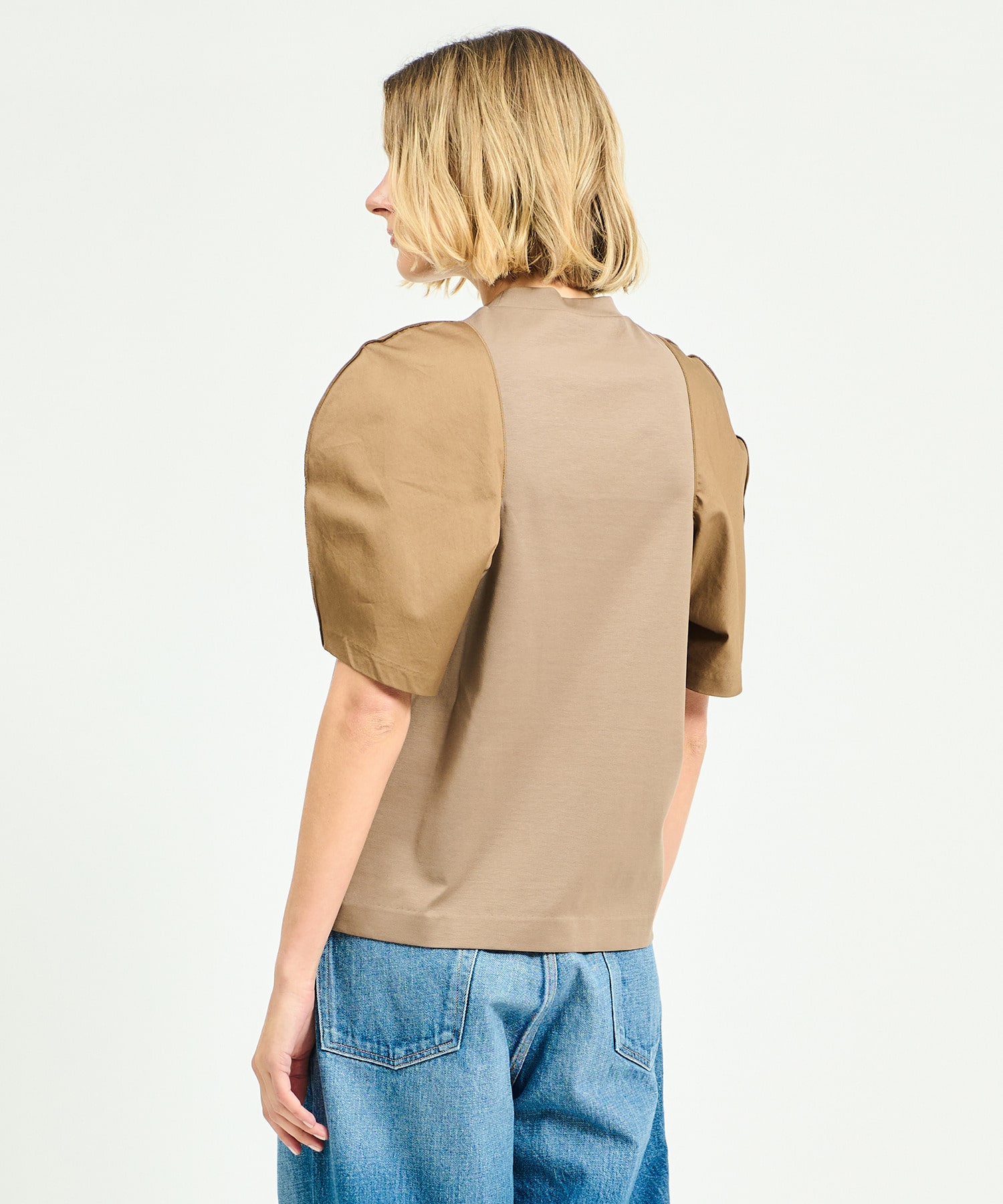 ボディはカットソーで、袖は布帛コンビに別注。袖を布帛素材にすることで袖のデザインがより目立ち、ブラウス感覚で着て頂けます。