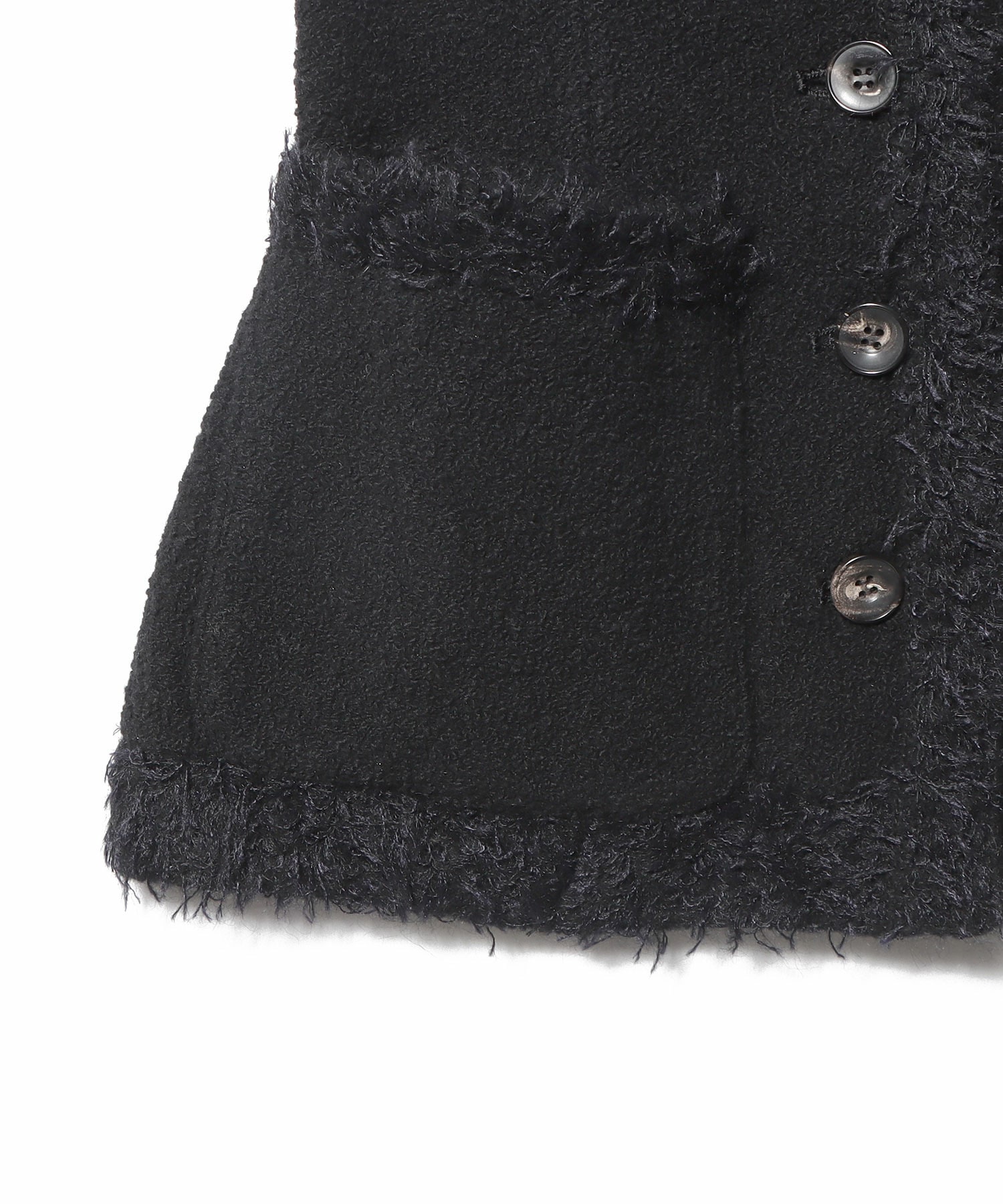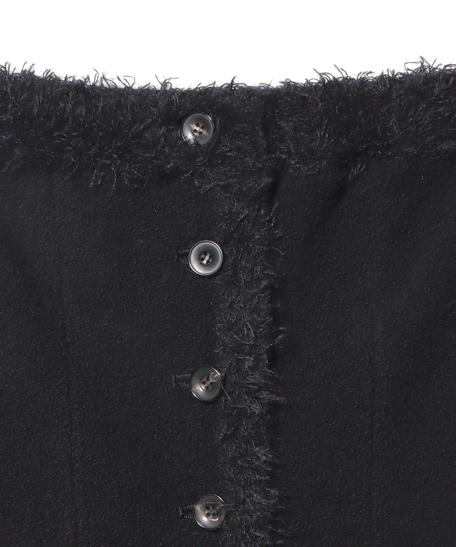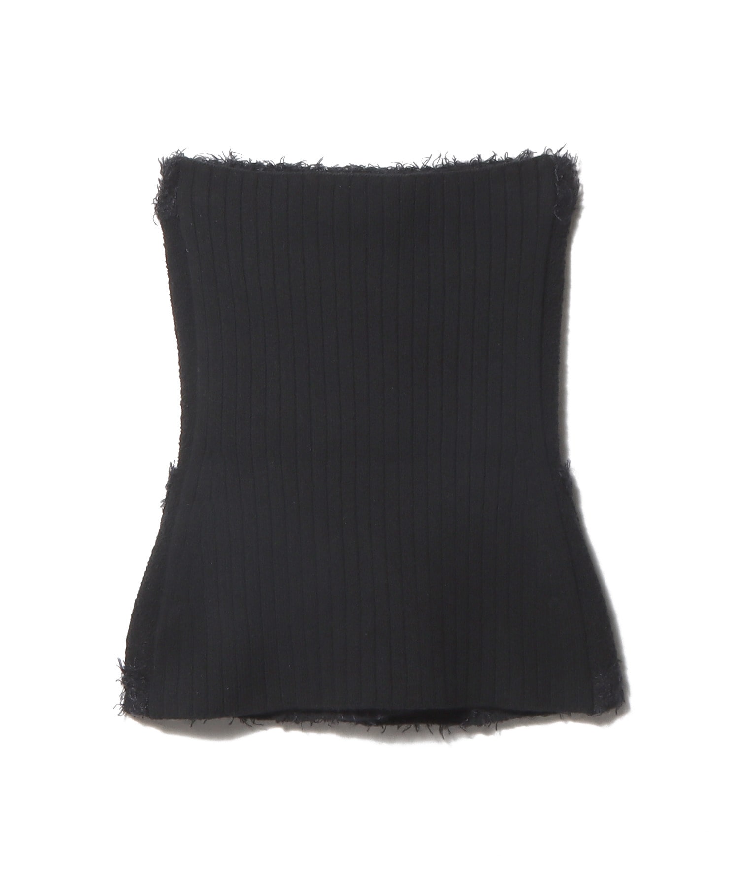 紡毛のふんわりとしたボリューム感と、梳毛のしなやかな質感を兼ね備えた編地を使用したニットビスチェ。
