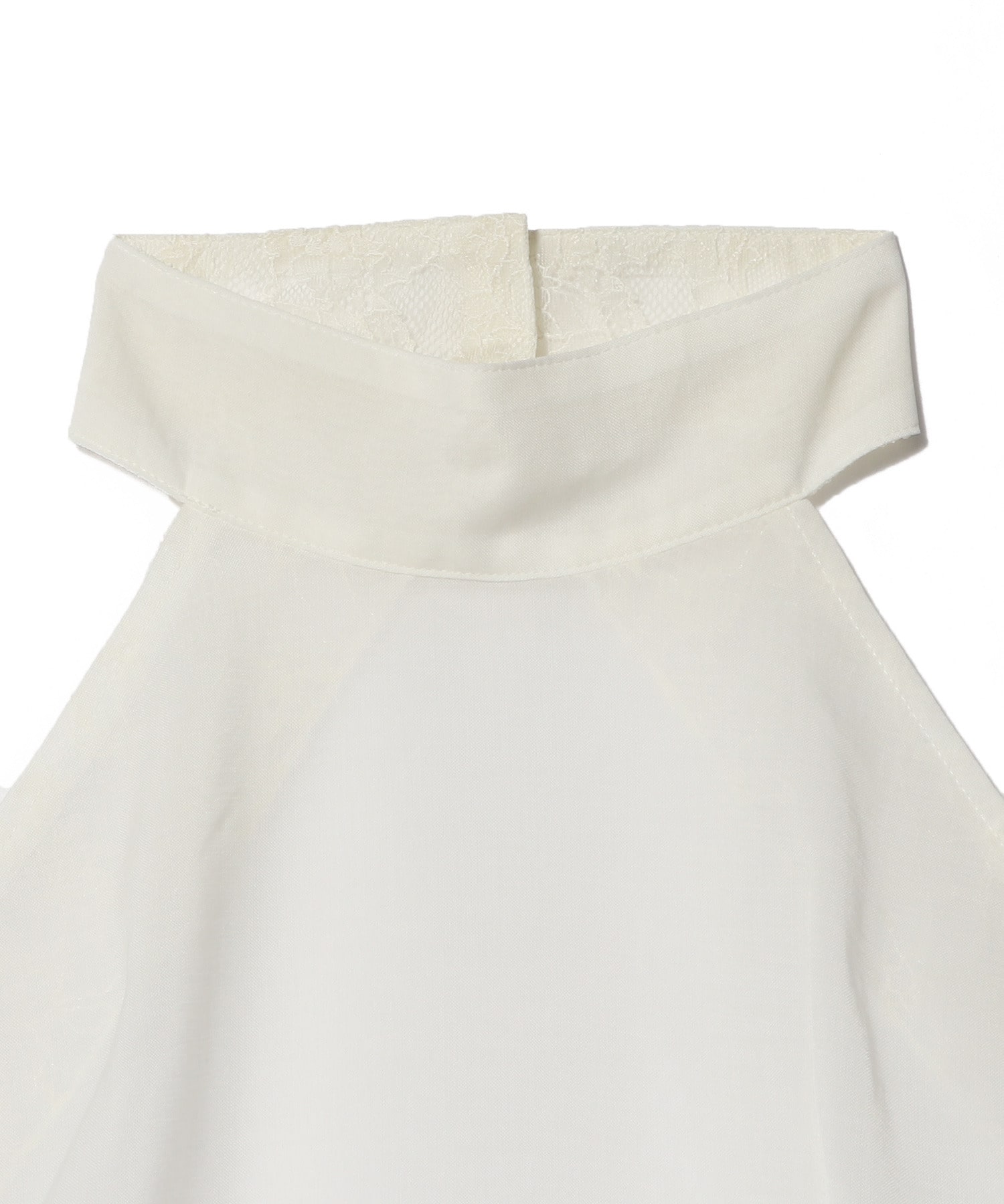裏側にあしらったレースが上品なシアーデザインのホルターネックトップス。