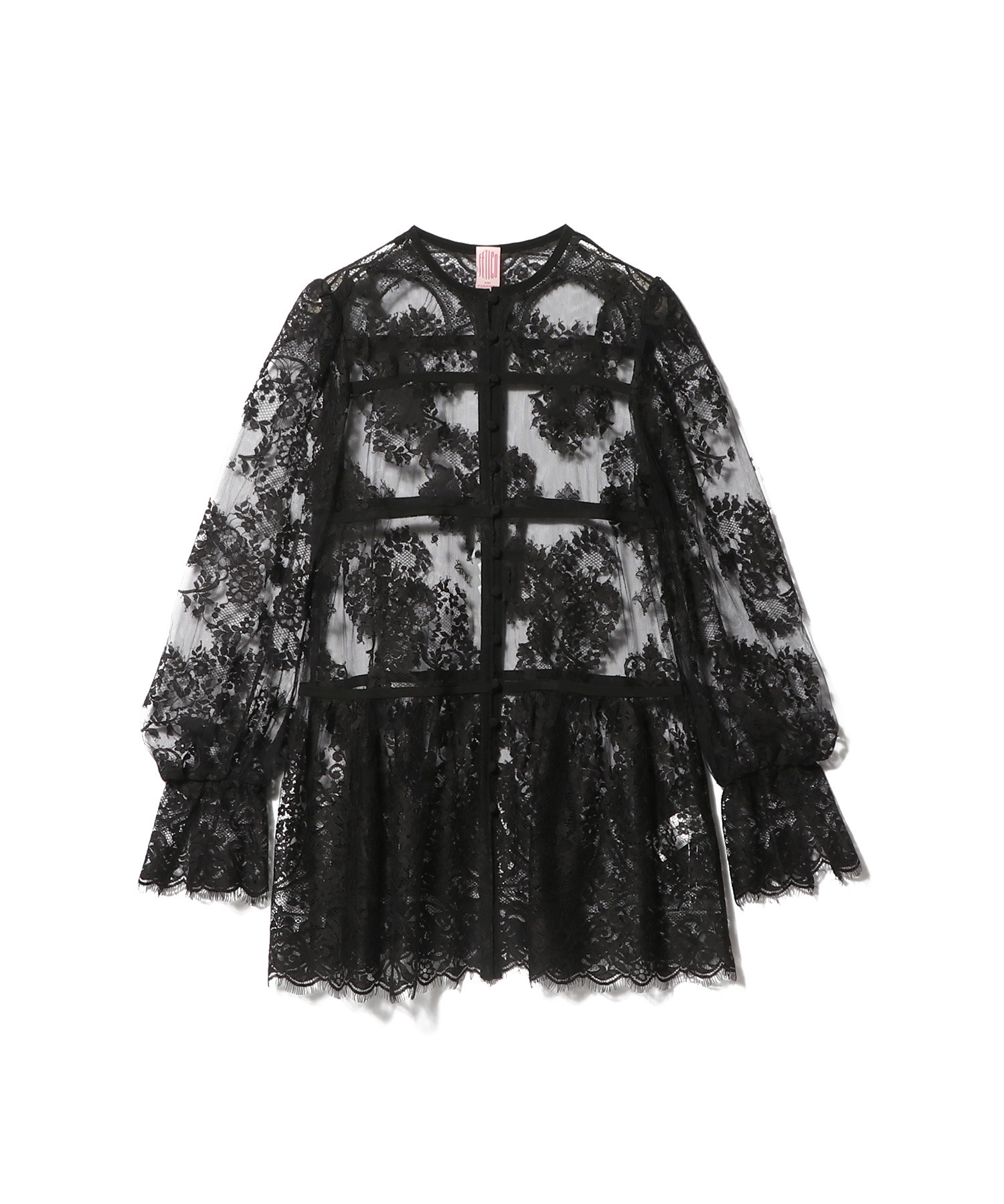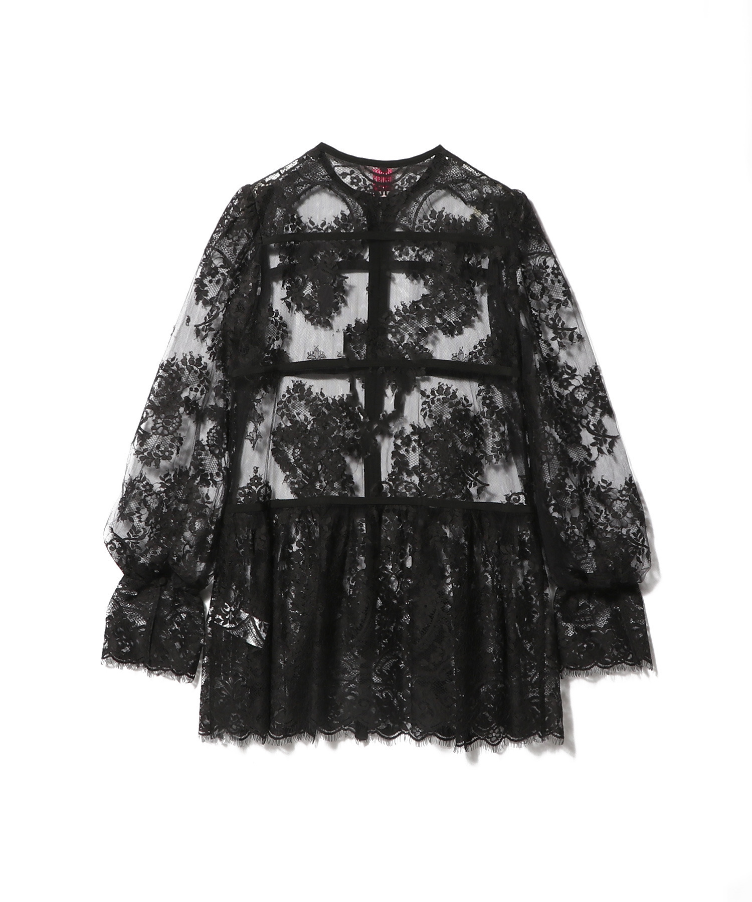 リバーレースの柄配置にこだわったデザインのレースブラウス。