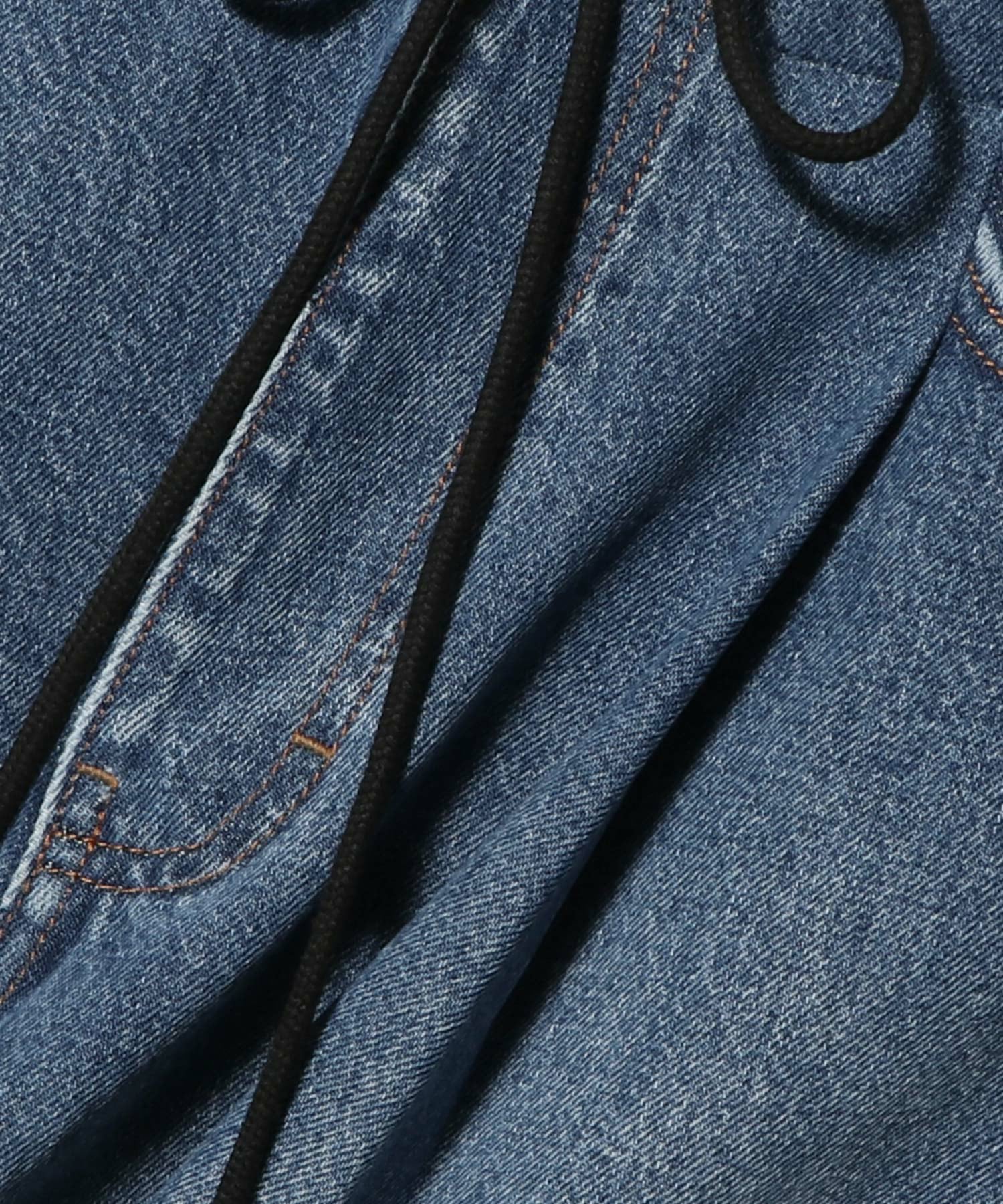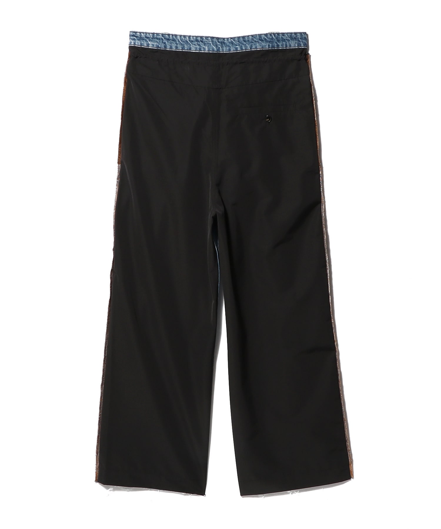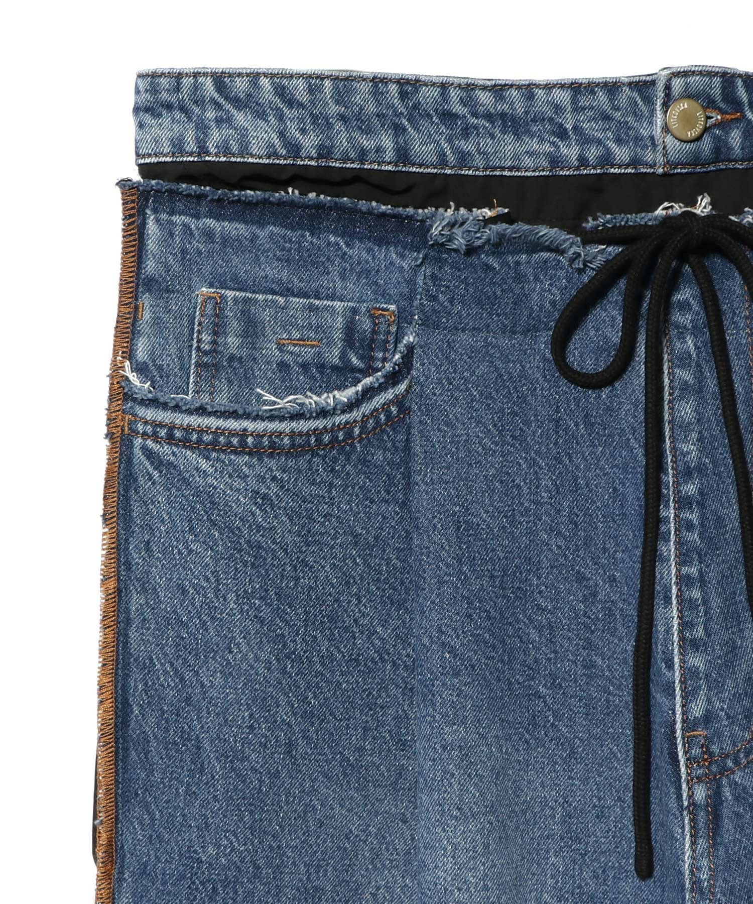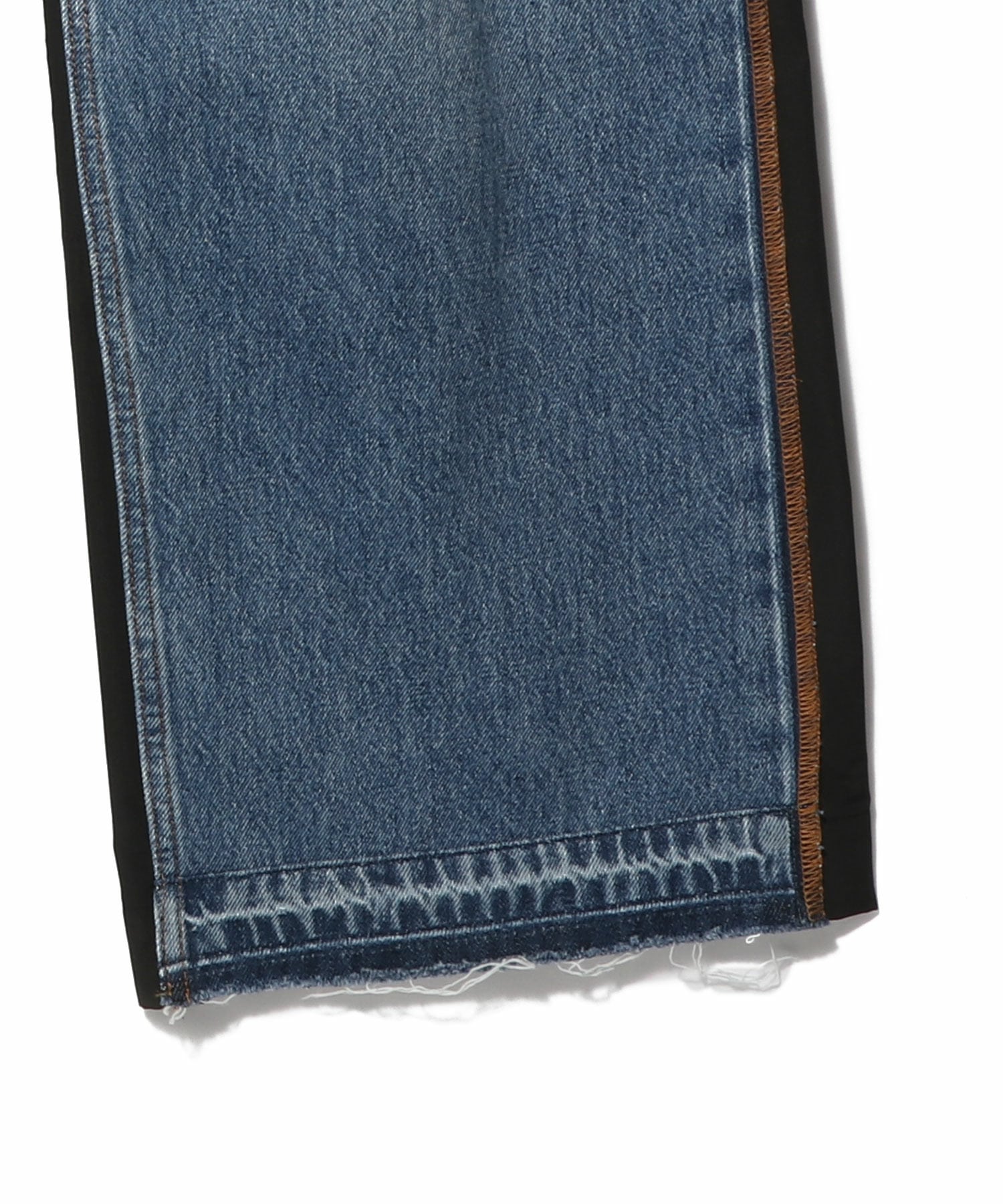 前後の異素材コンビが特徴のデニムパンツ。
