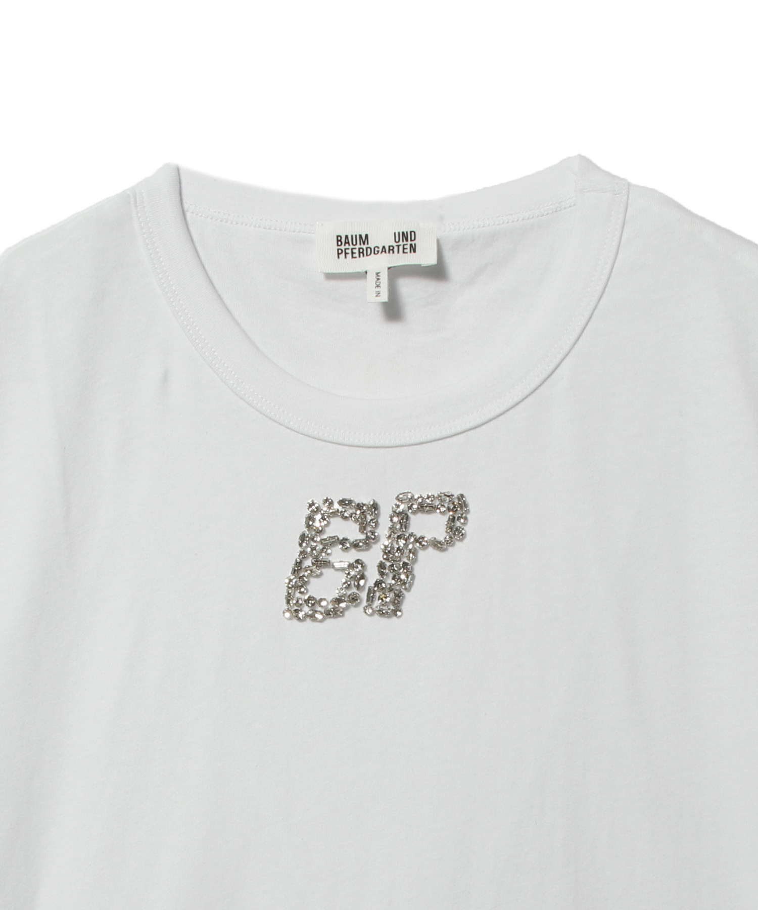 胸元のラインストーンロゴが特徴のJAWO Tシャツ。