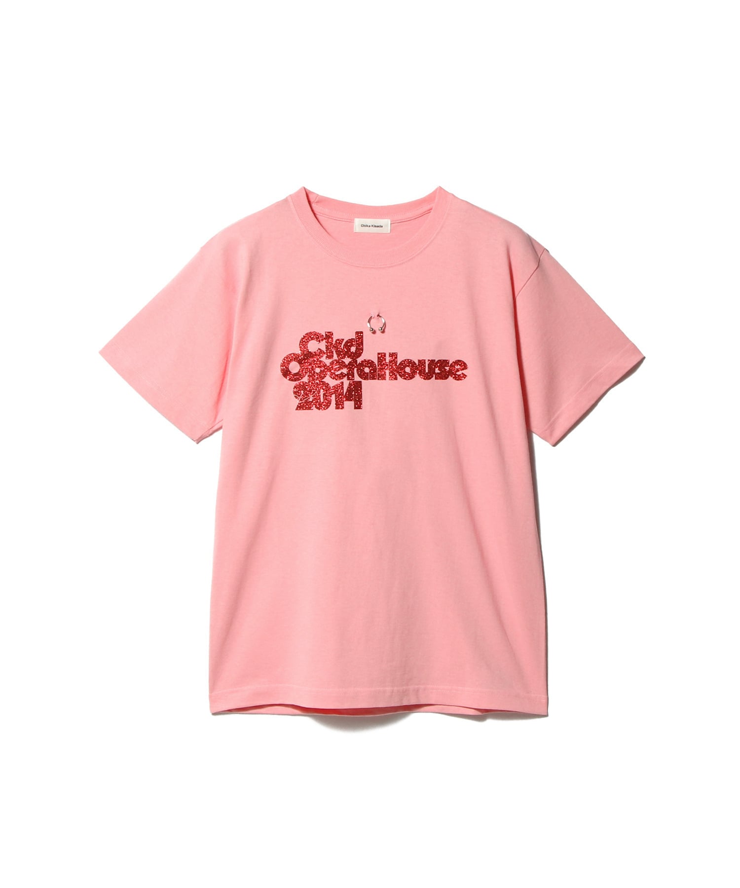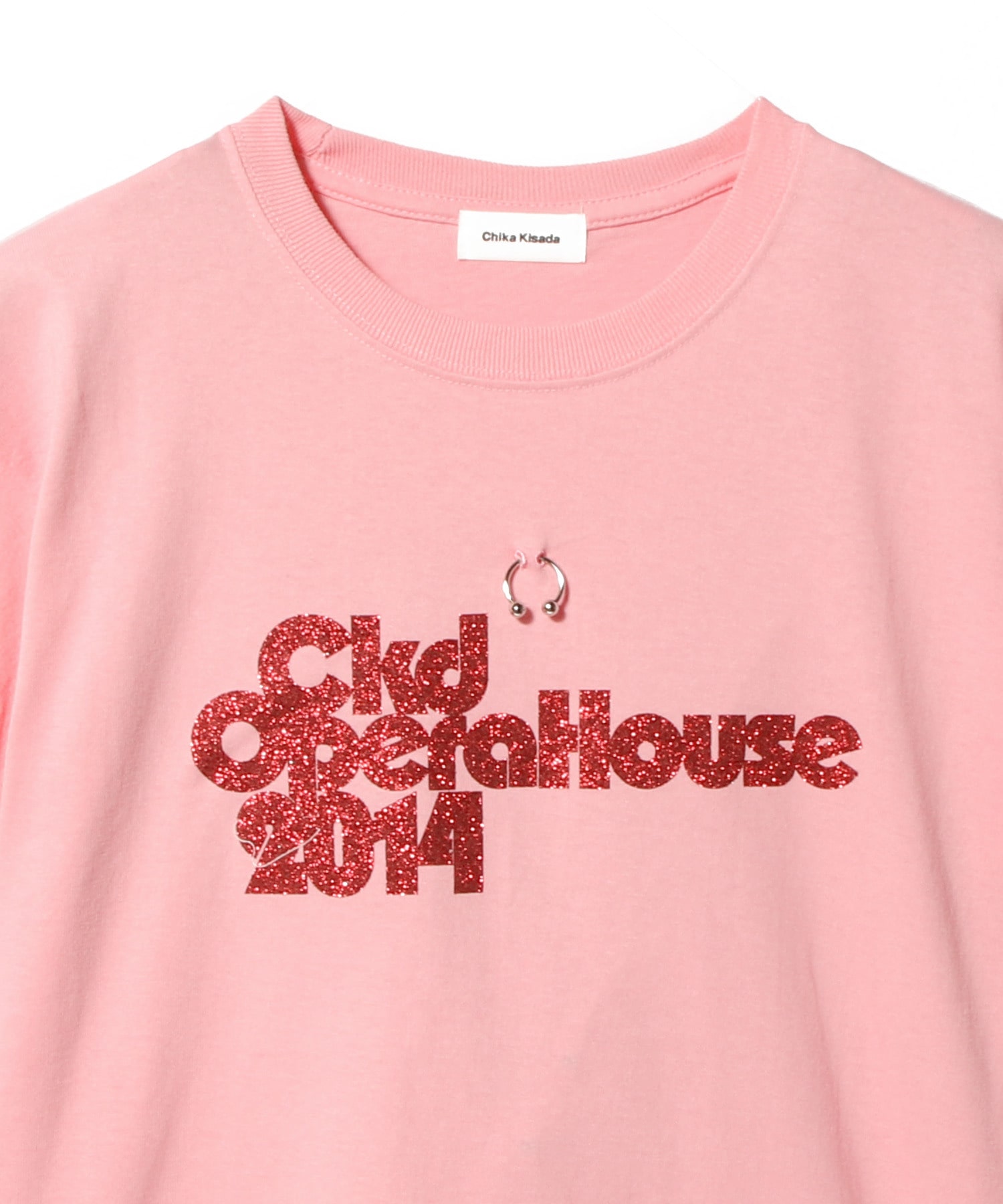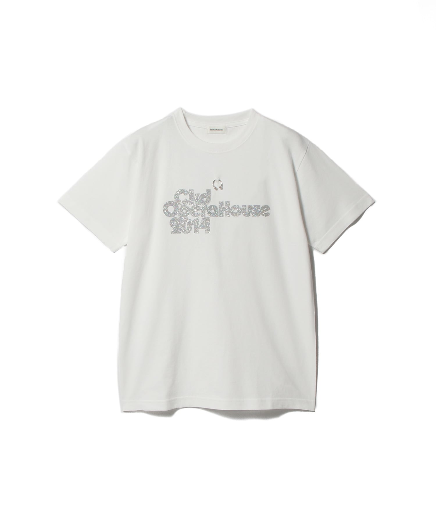 動くたびに煌めくラメ感のあるロゴプリントが目を惹く半袖Tシャツ。