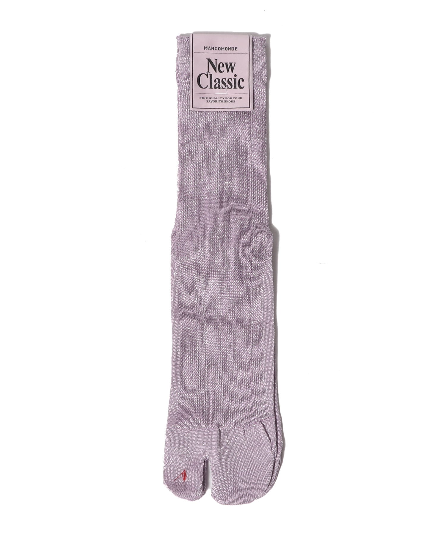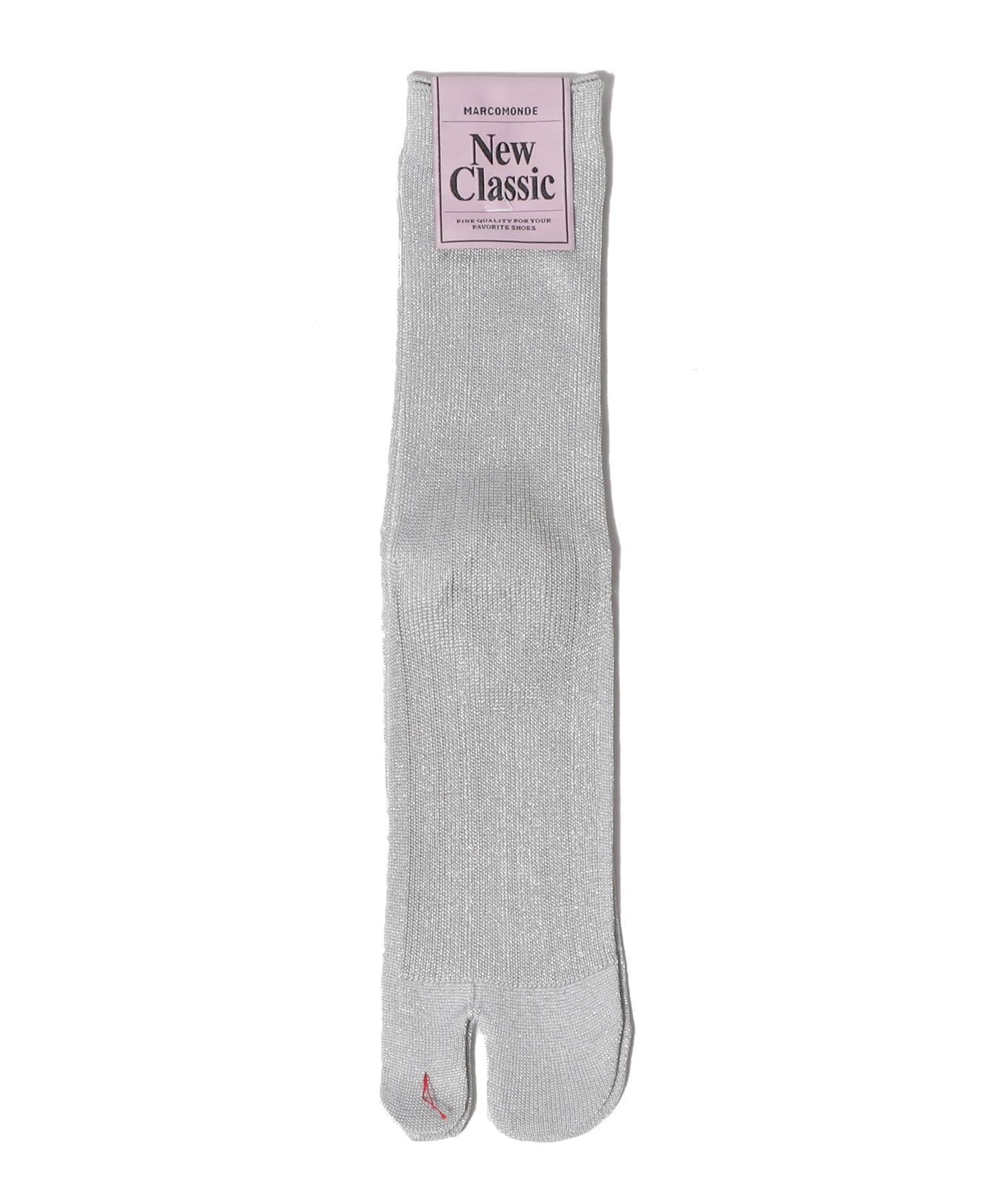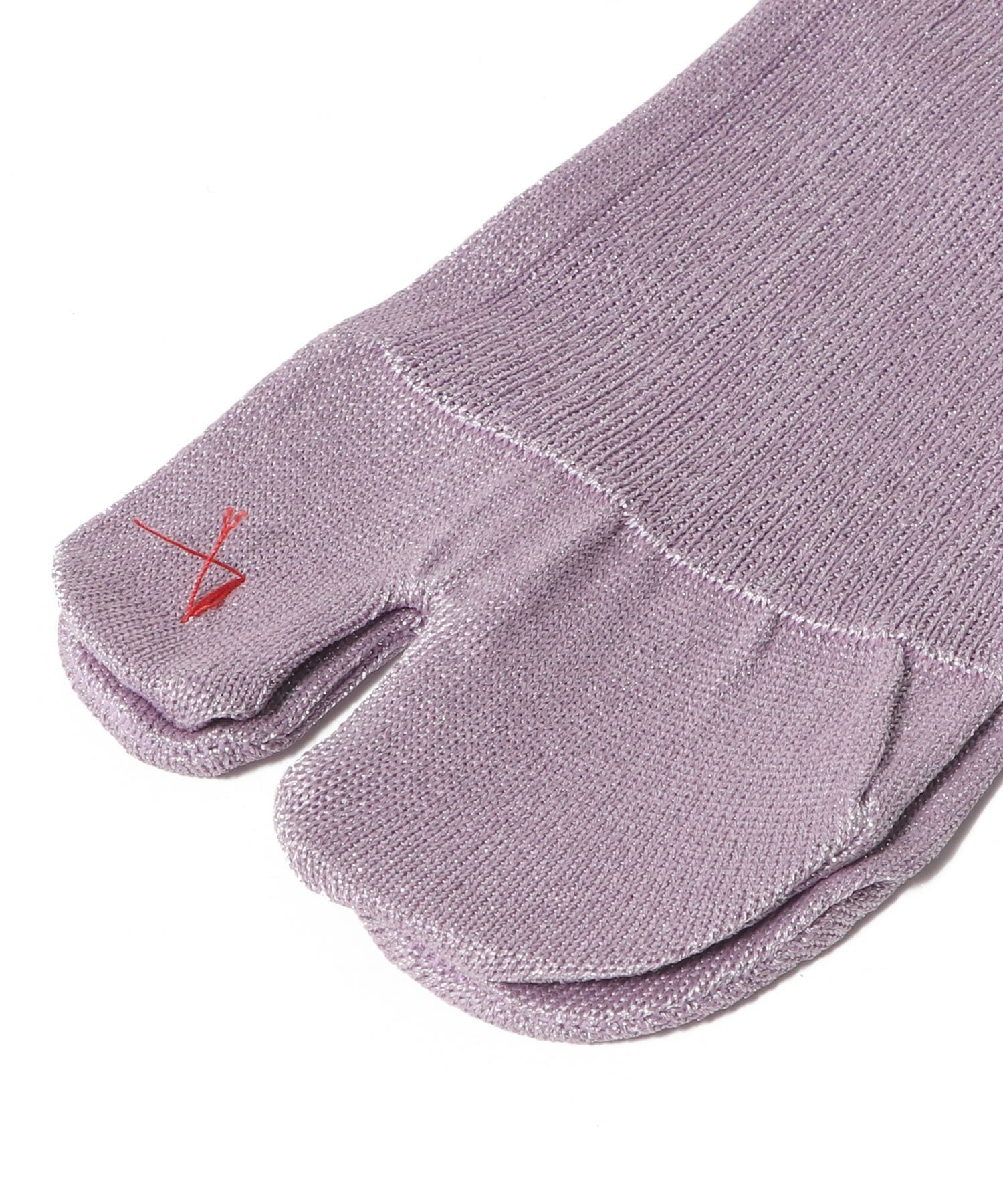 1x1リブのグリッターソックスは肌触りの良いラメ糸を使用し、柔らかくしなやかな履き心地を実現。