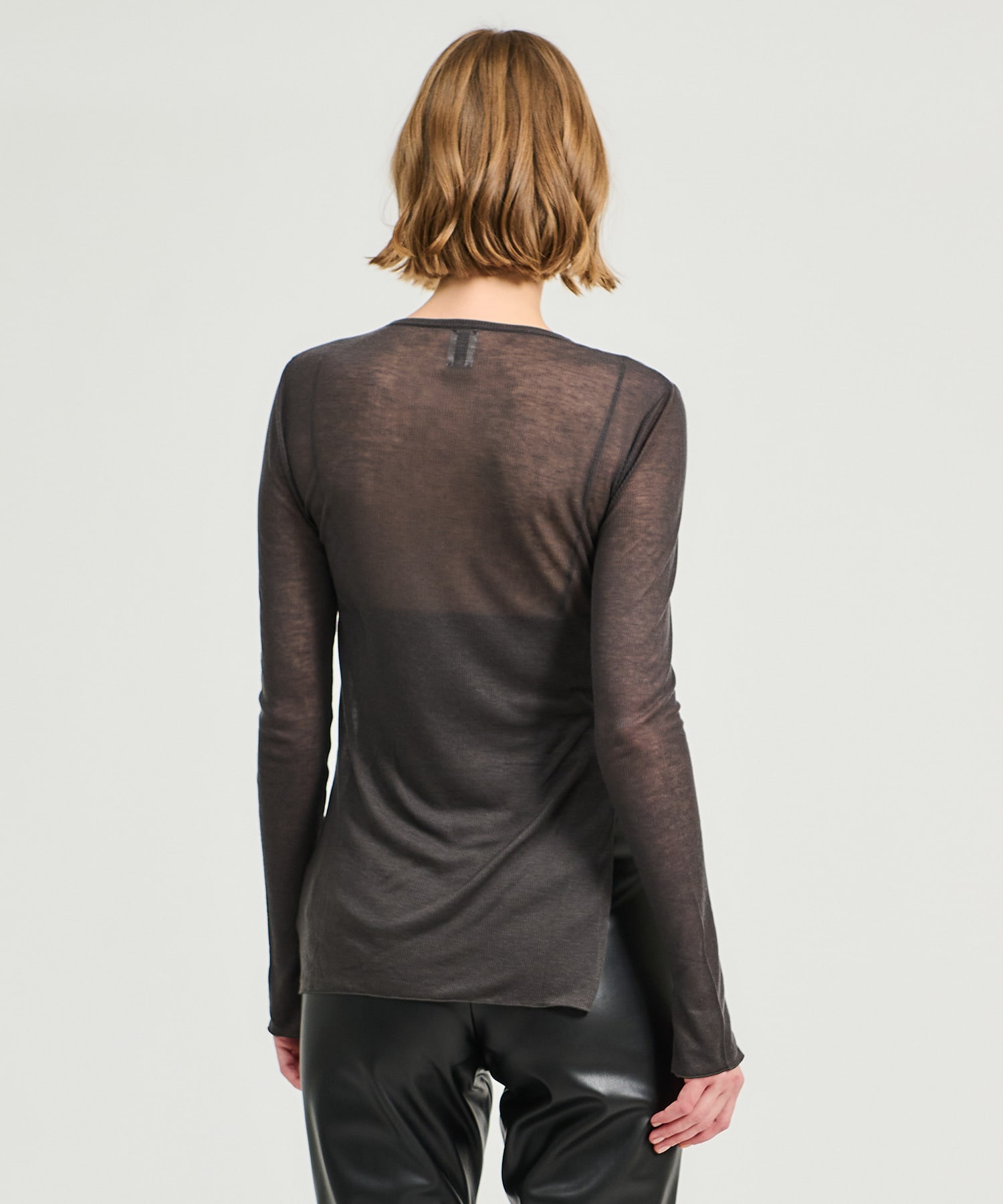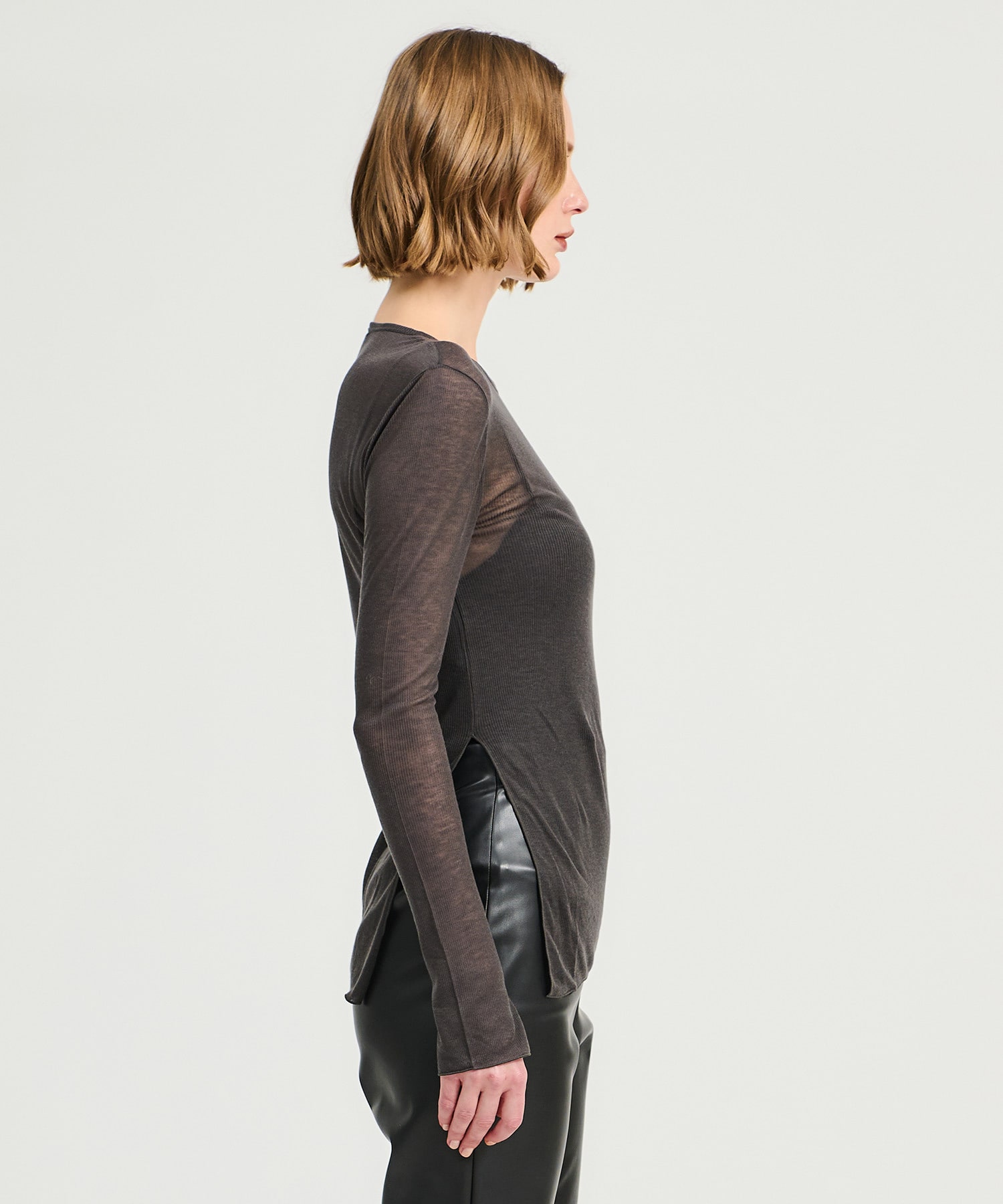 繊細でソフトな肌触りと透け感が特徴のシアーテレコのカットソー。