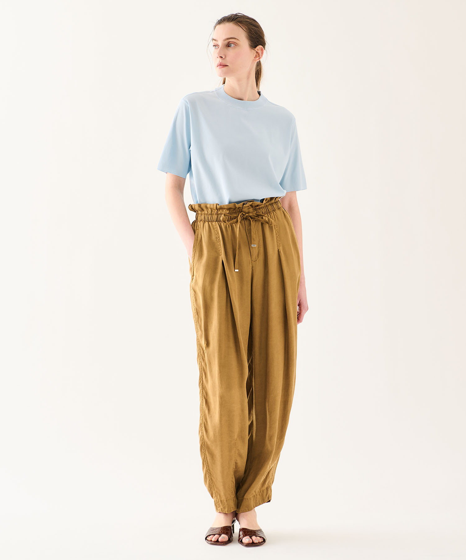 カジュアルな抜け感のある印象ながら、上質な素材がクリーンさをキープ。ゆったりとしたシルエットで、大人のカジュアルスタイルに合わせたい一枚です。