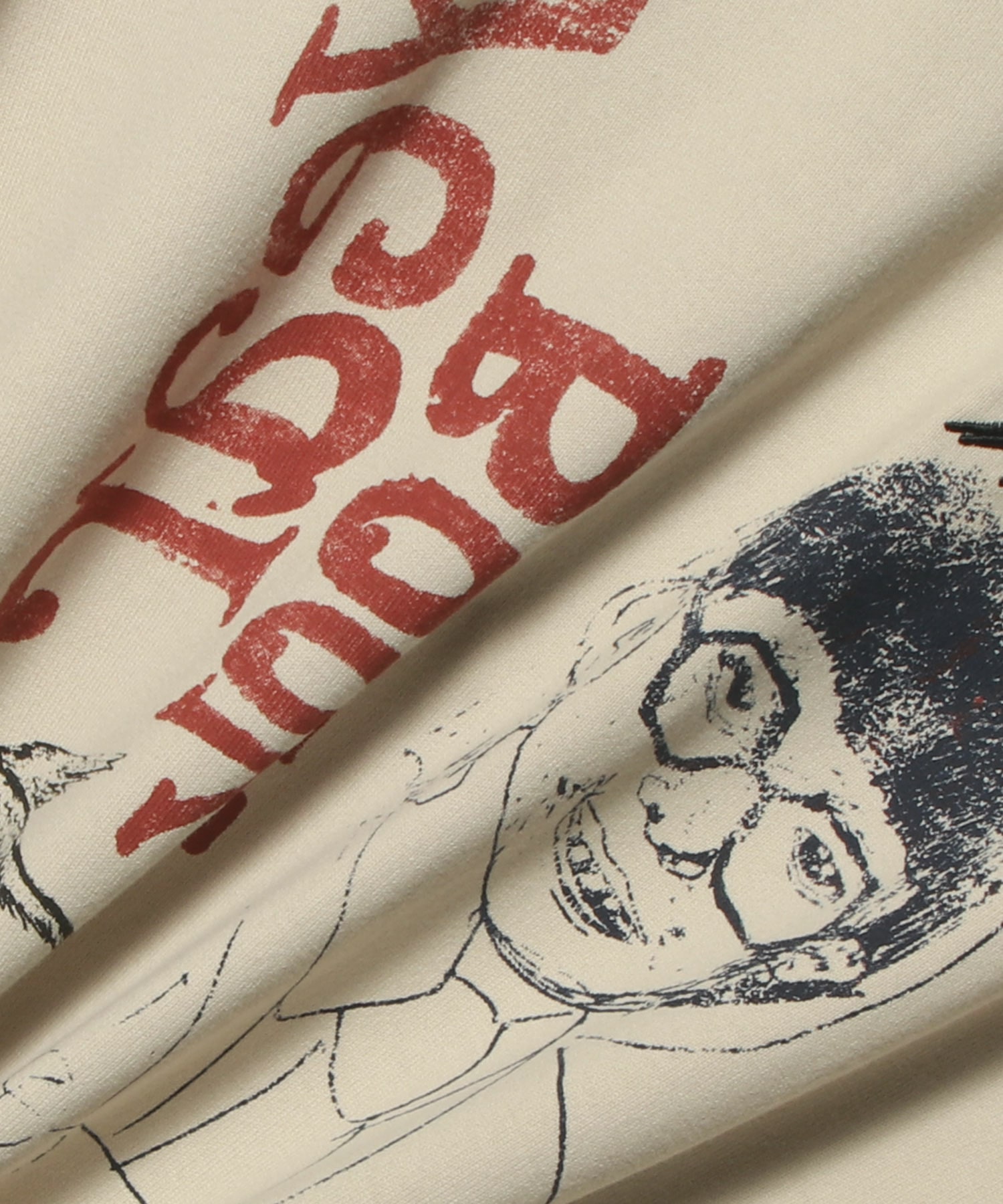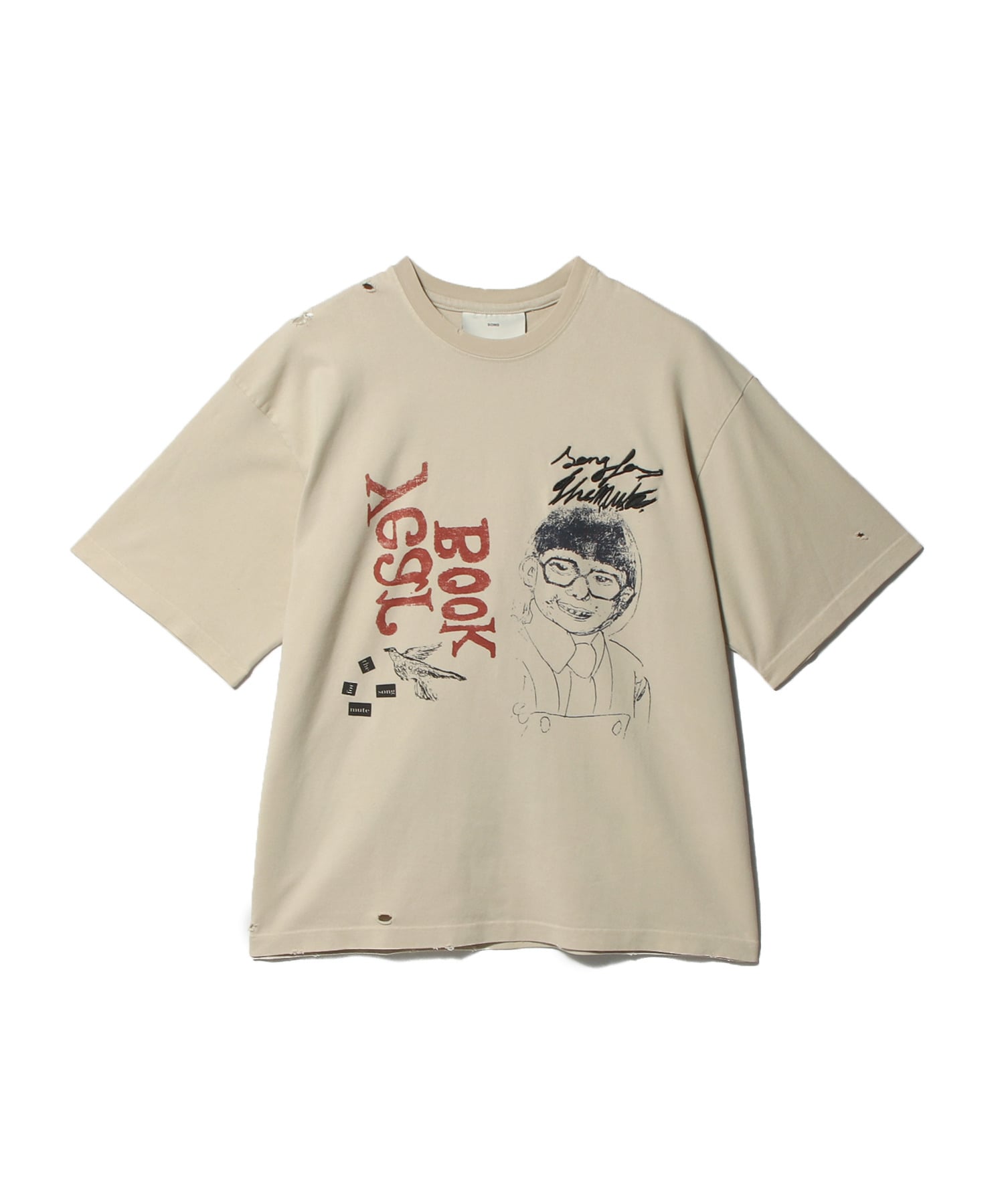 本アイテムは、シーズンを象徴するメインプリントとして複数の学生のポートレートを配し、それに補助的なマークやテキストを重ねることで、スケッチブックのような自由な構成を生み出しています。