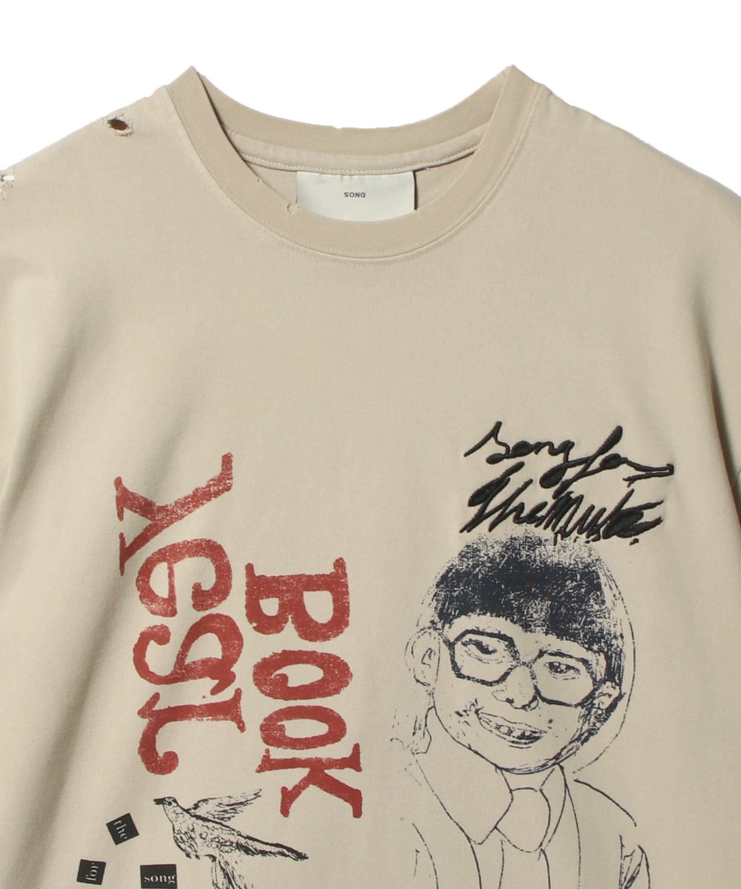 そのビジュアルは非常にストレートで認識しやすく、身近な人々を記録するという行為そのものを、最もシンプルな形で捉えています。単なるプロダクトというよりも「記録」としての意味合いを持たせた、存在のポートレートを表現した一着です。