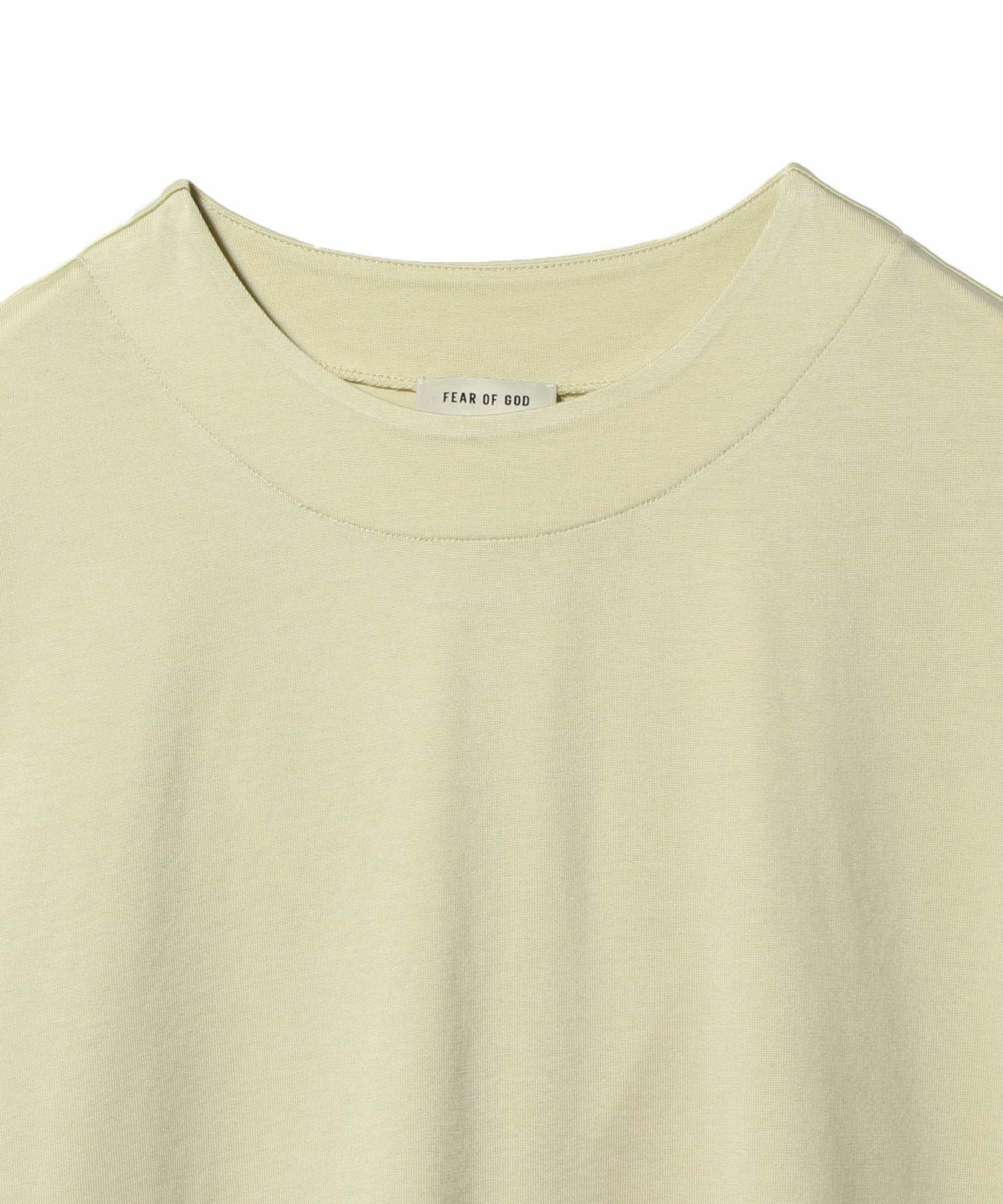 クリーンネックTシャツは、ポルトガル製のコットンレーヨンジャージー素材を使用し、ストーンウォッシュ加工を施したガーメントウォッシュで、本格的なヴィンテージ感を演出しています。ゆったりとした着心地で、リブ編みのクルーネックが特徴です。襟の後ろには、Fear of Godの象徴である4本ステッチのラベルがあしらわれています。