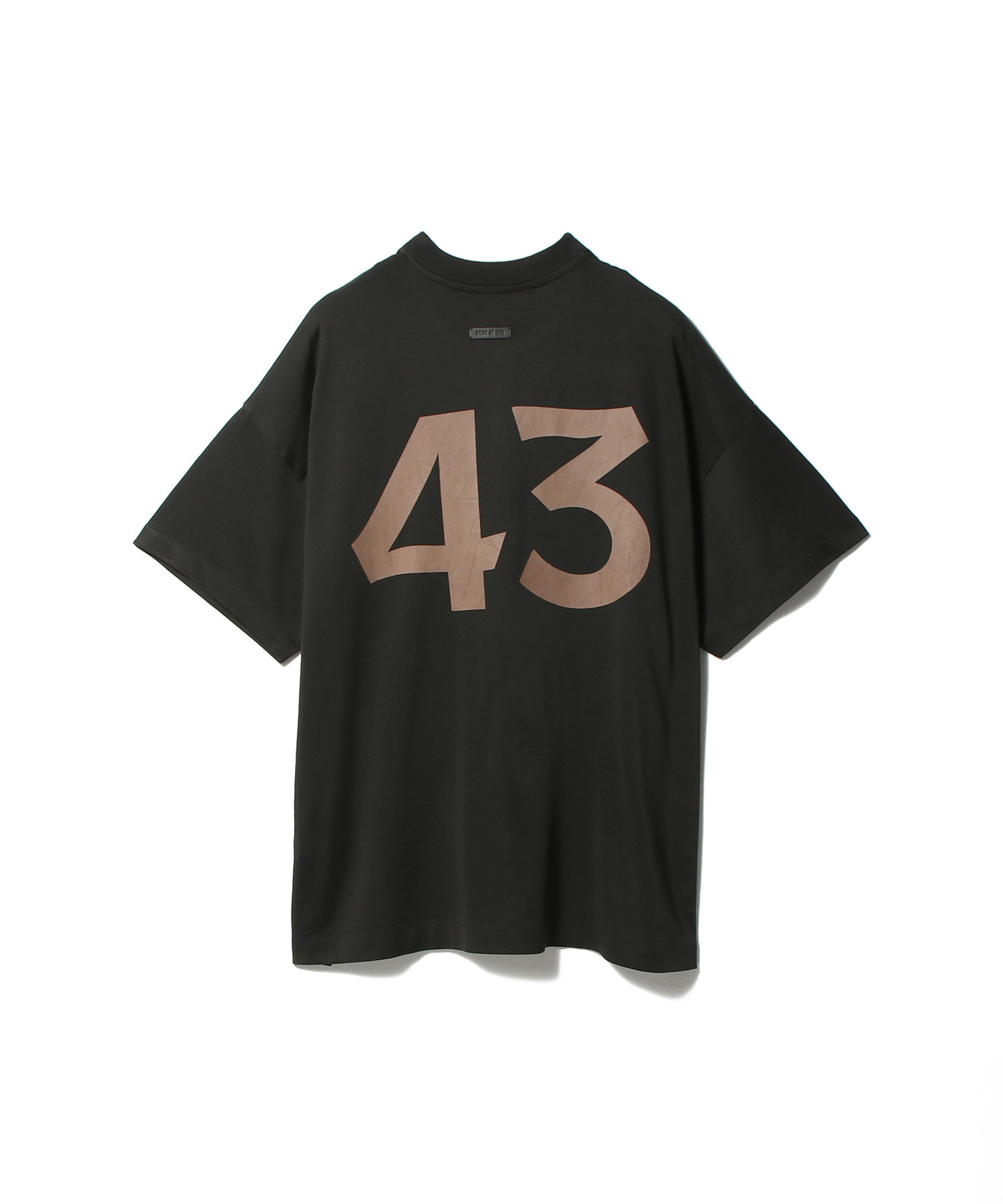 43 Tシャツは、ポルトガル製のコットンレーヨンジャージー素材を使用し、ストーンウォッシュ加工を施したガーメントウォッシュで、本格的なヴィンテージ感を演出しています。手刷りのグラフィックは、過去のアスレチックウェアの伝統的なデザインを彷彿とさせます。ゆったりとしたフィット感で、リブニットのクルーネックが特徴です。襟の後ろには、Fear of Godの象徴的な4ステッチラベルがあしらわれています。