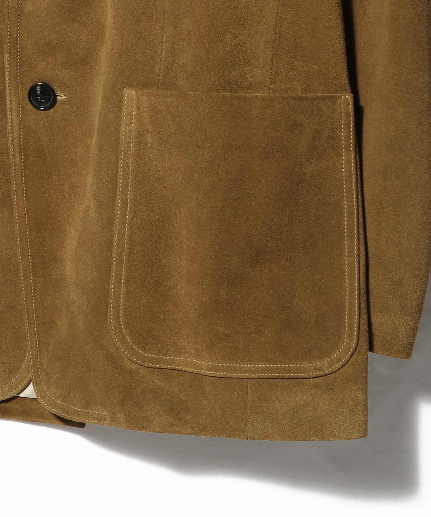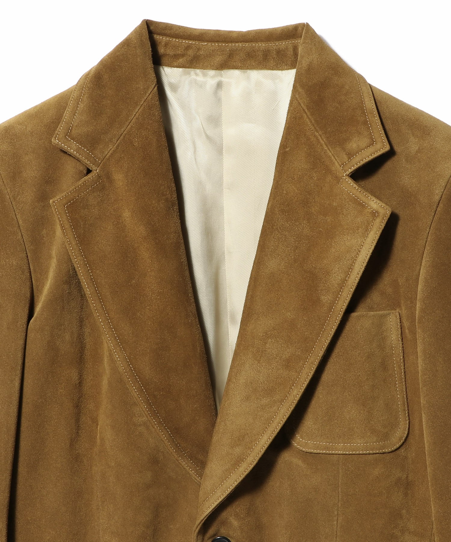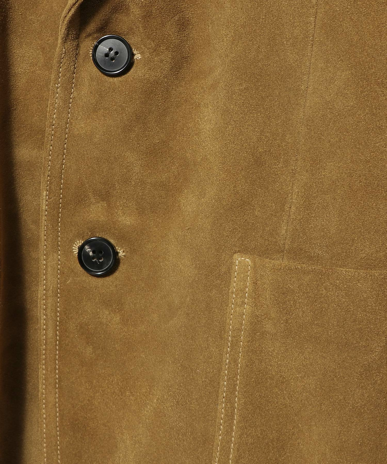 上質なフレンチスプリットカーフスエードを贅沢に使用した、シングルブレストの2ボタンジャケット。