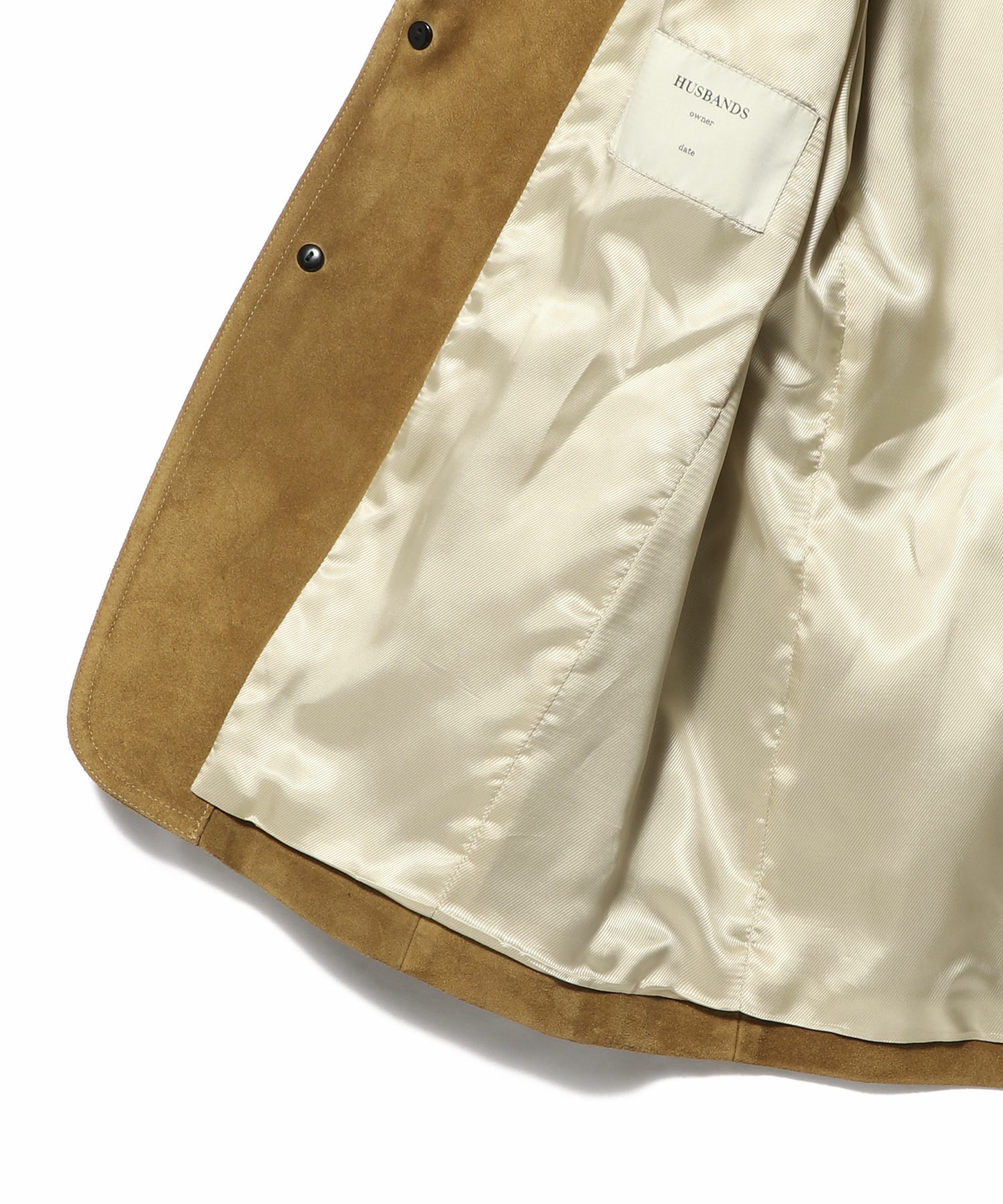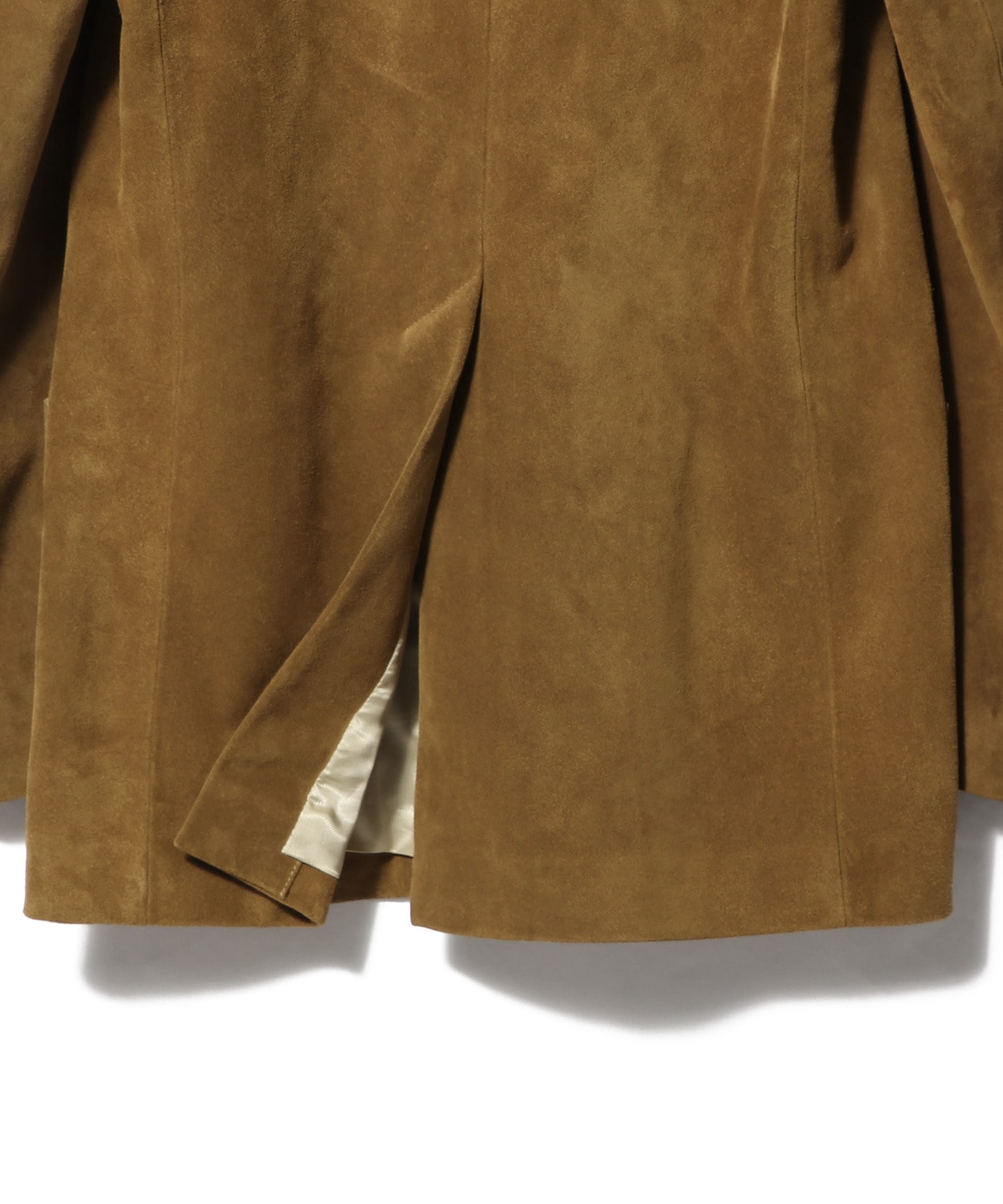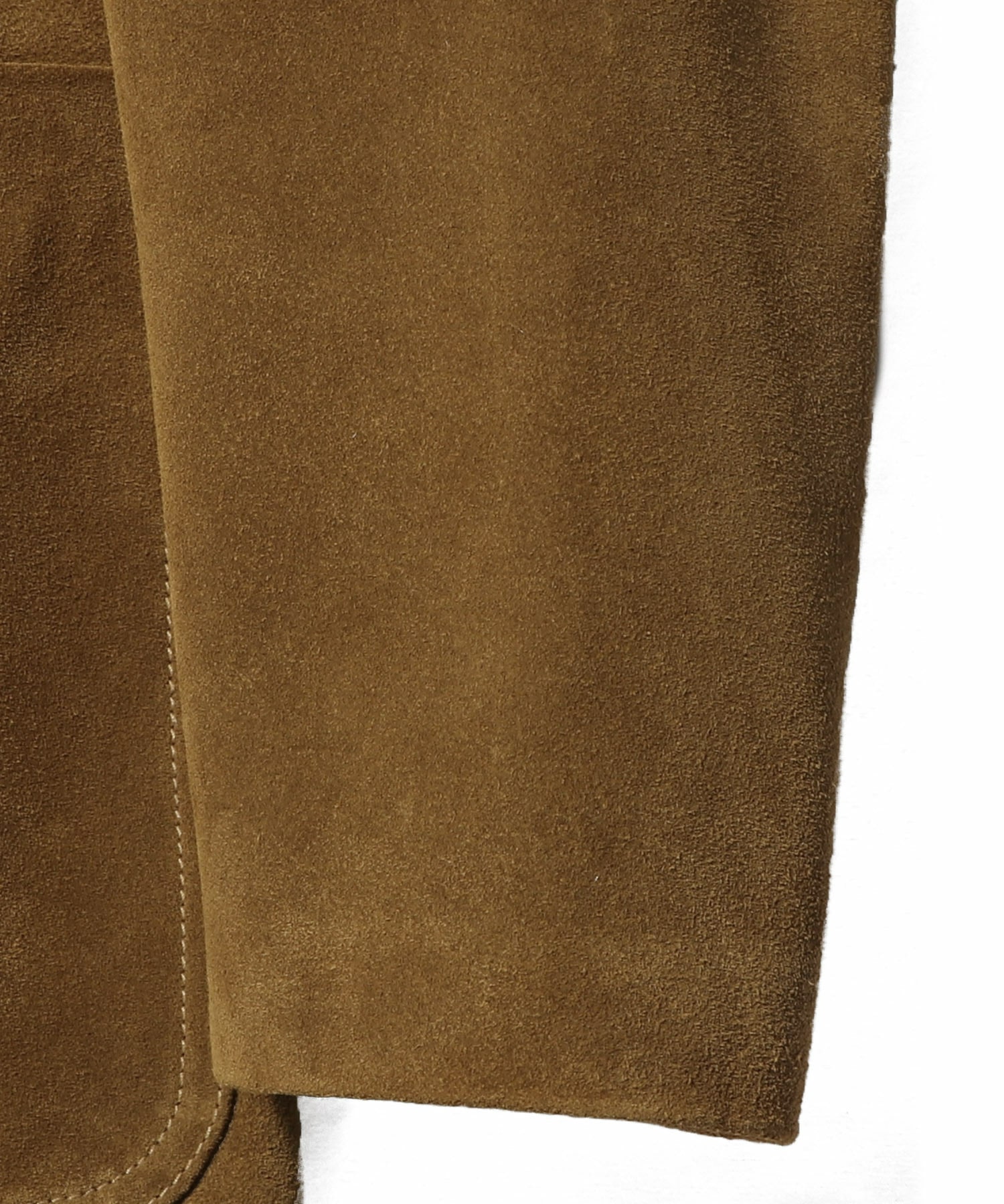 上質なフレンチスプリットカーフスエードを贅沢に使用した、シングルブレストの2ボタンジャケット。