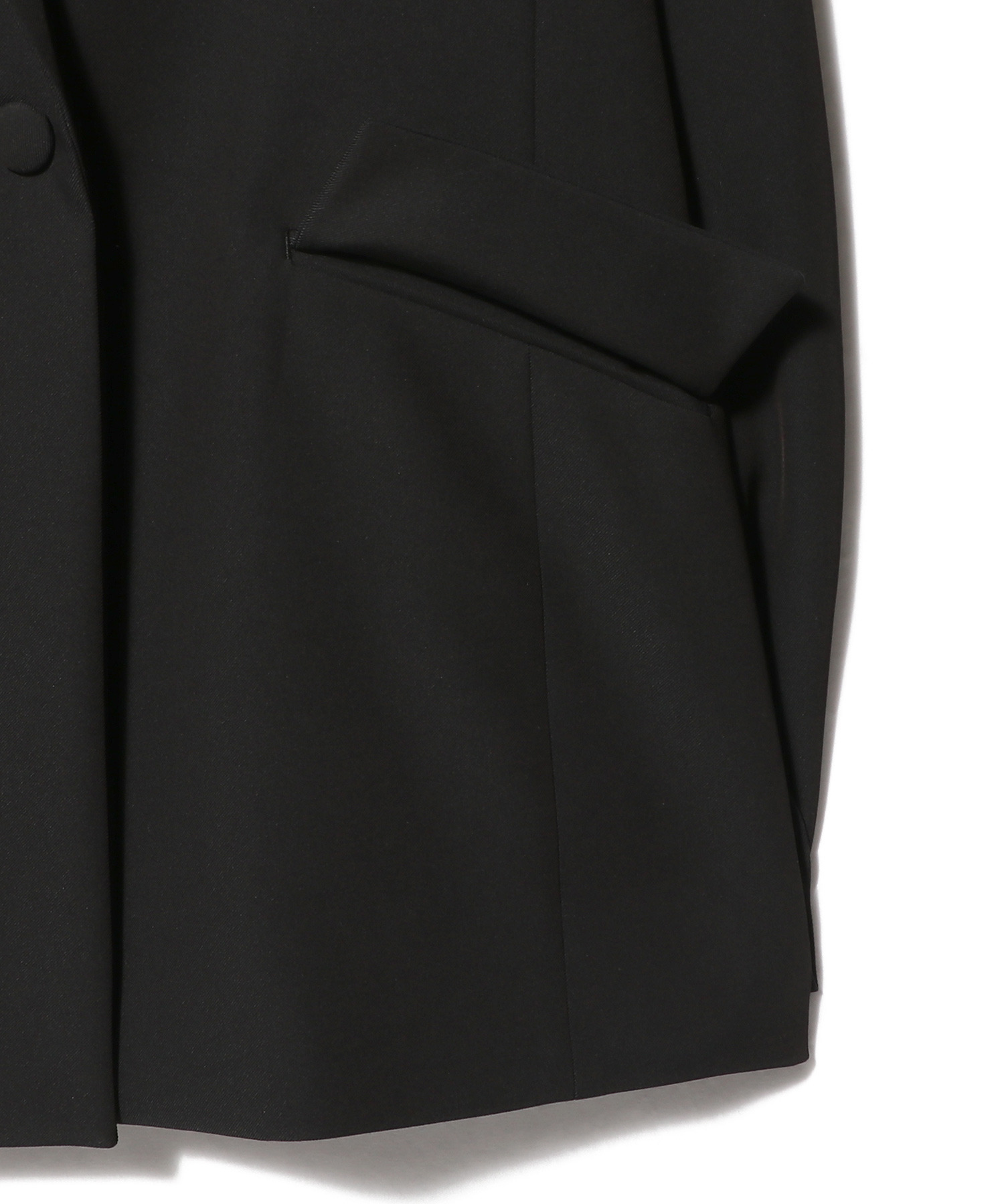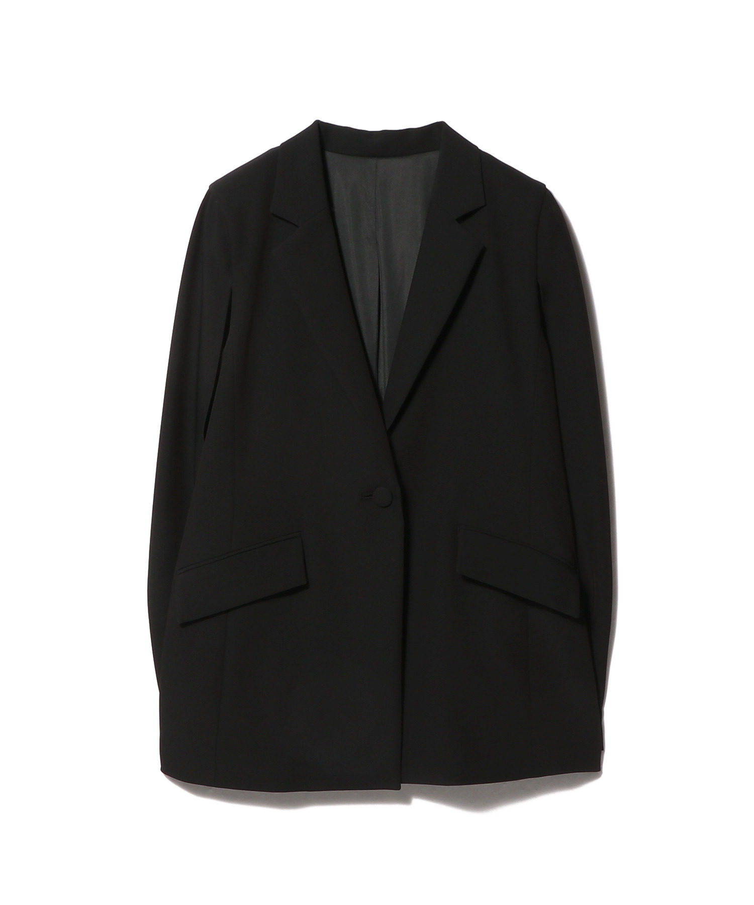 動くたびにエレガントな印象を与えるケープスリーブデザインのジャケット。