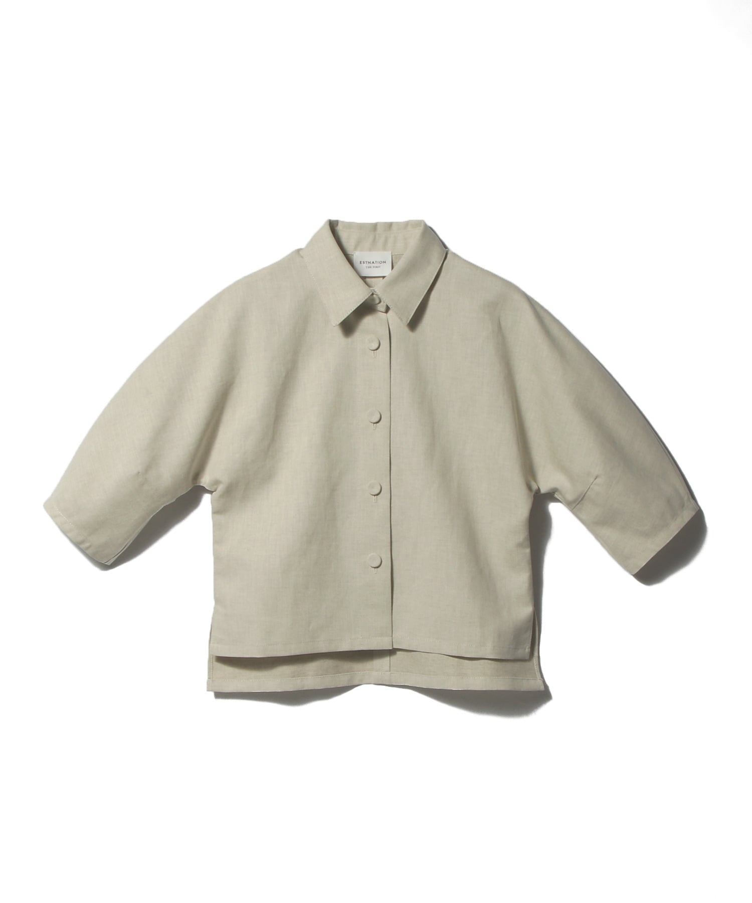 クルミ釦がアクセントのジャケット感覚で羽織れるシャツ。