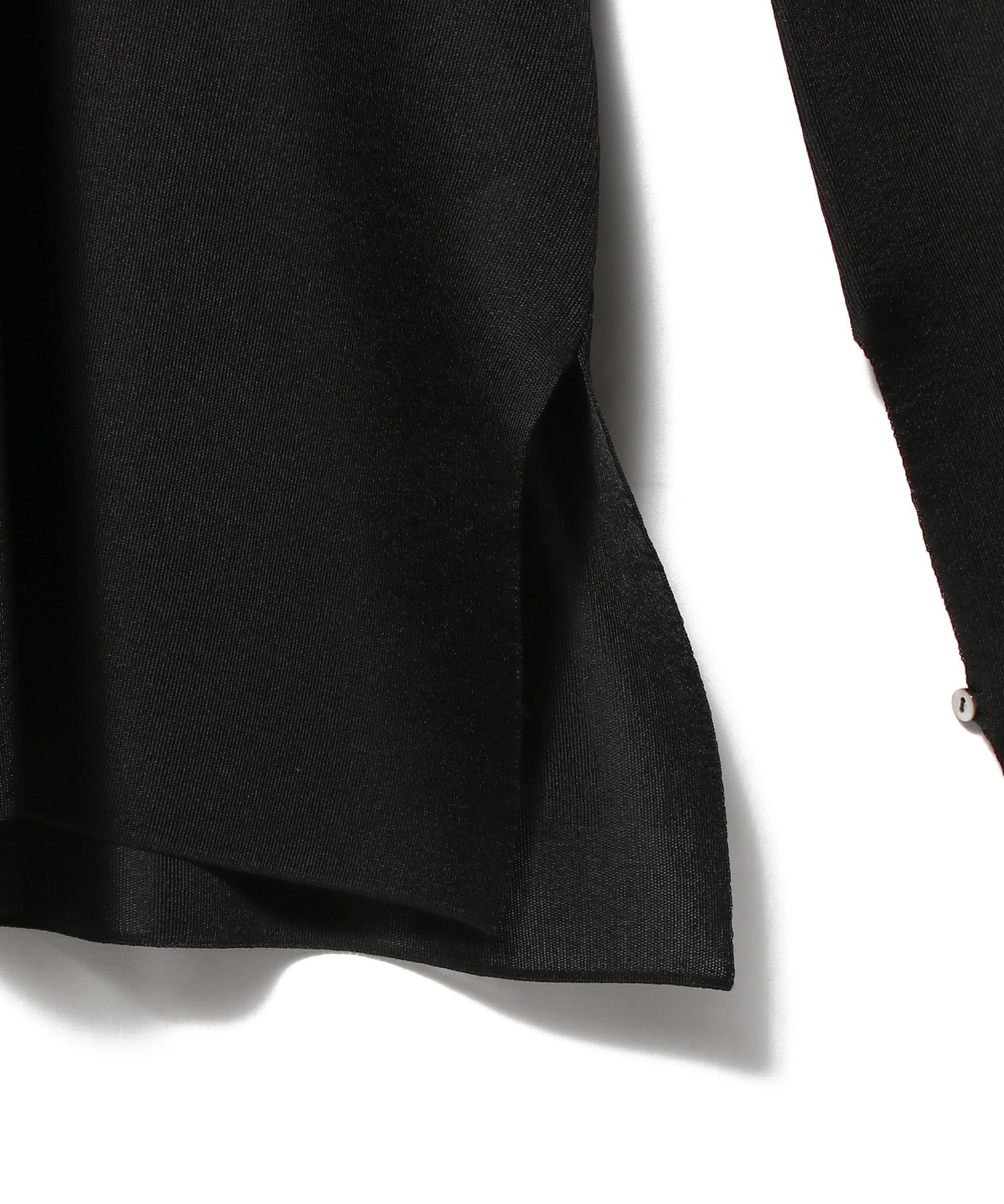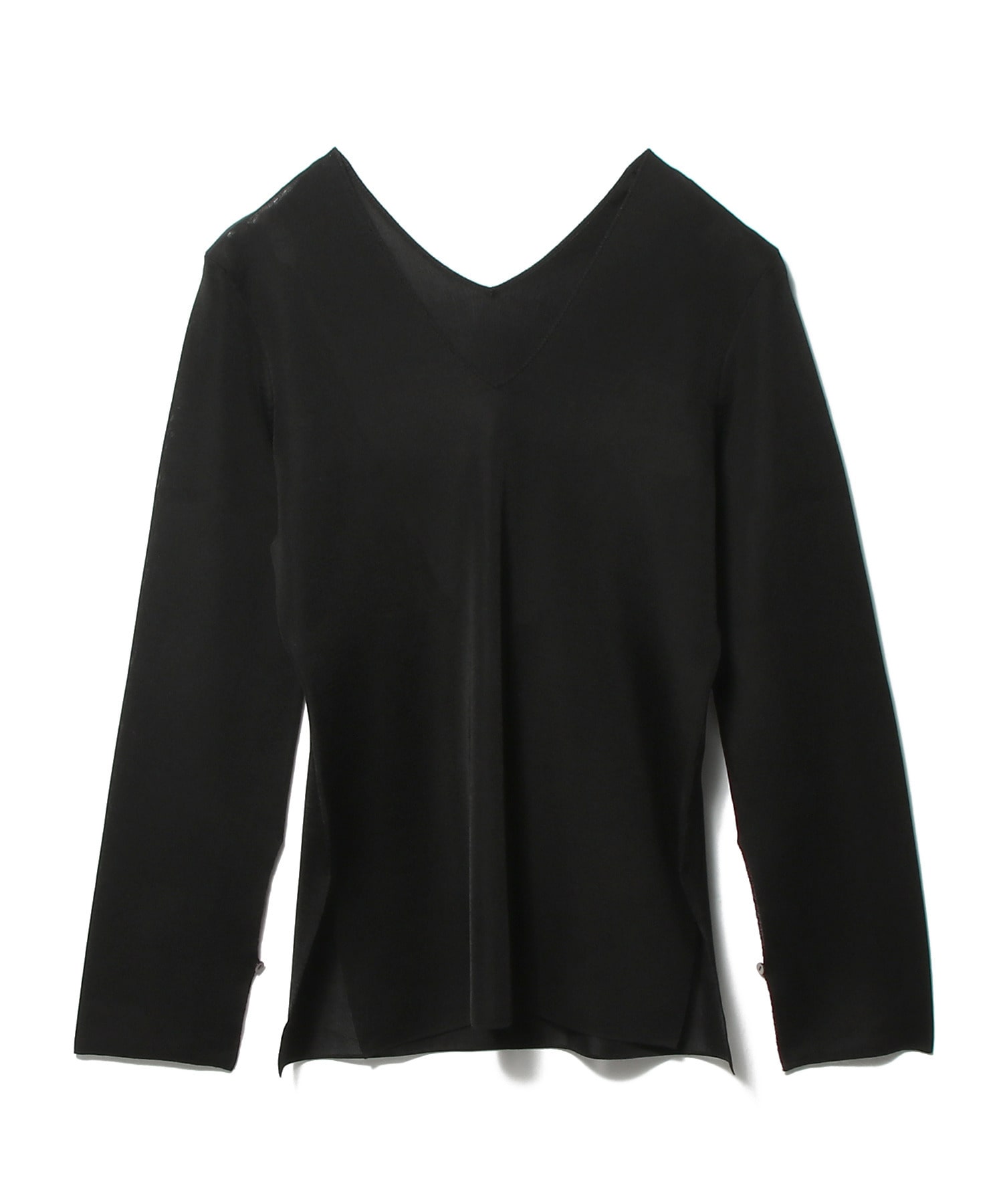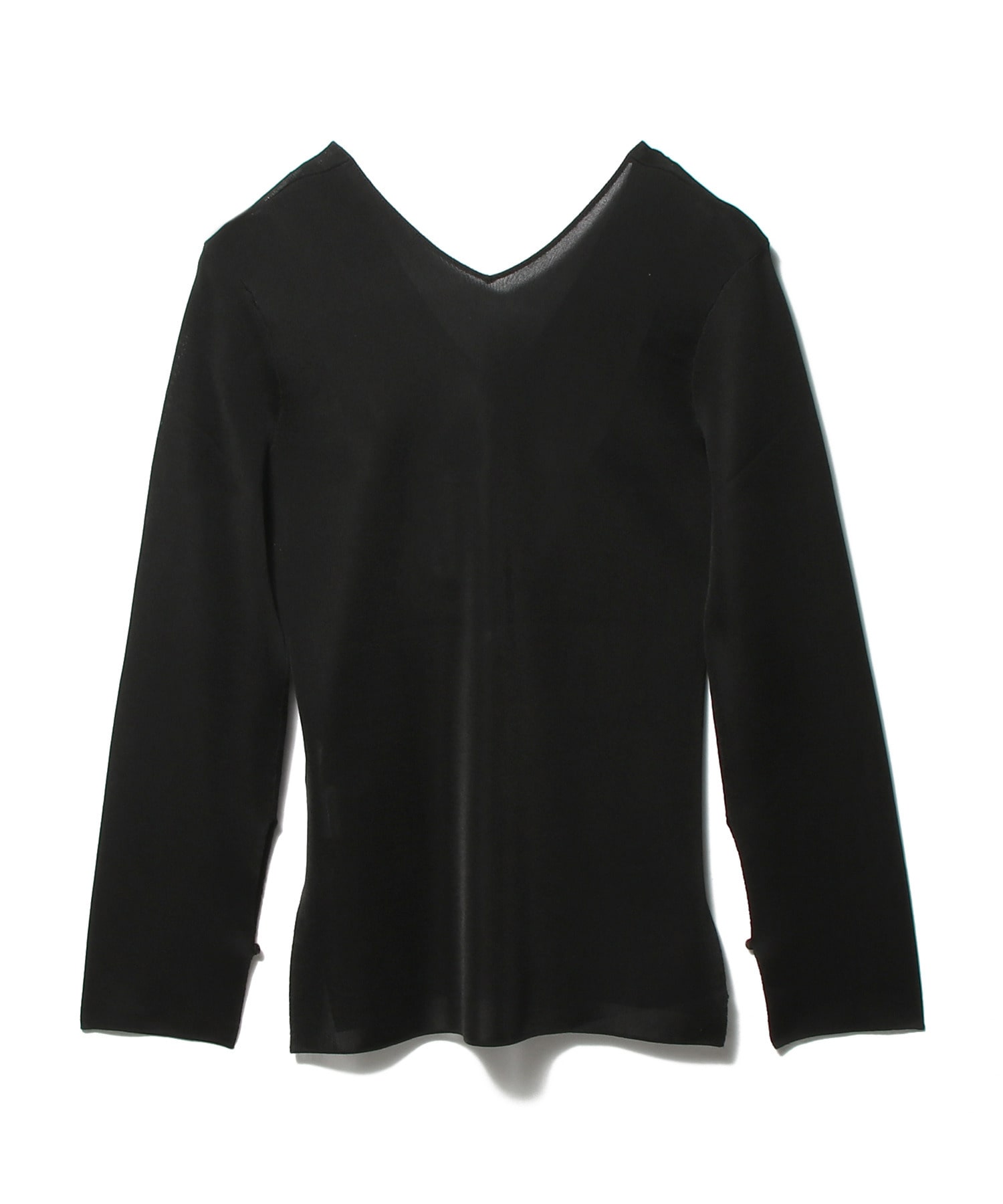 洗練された大人の印象を与える深めのVネックがポイントで、Vネックの深さを気分やスタイリングに合わせて前後で調整できるのも魅力。袖下と裾脇に入れたスリットが、さりげない抜け感と軽やかさをプラスします。