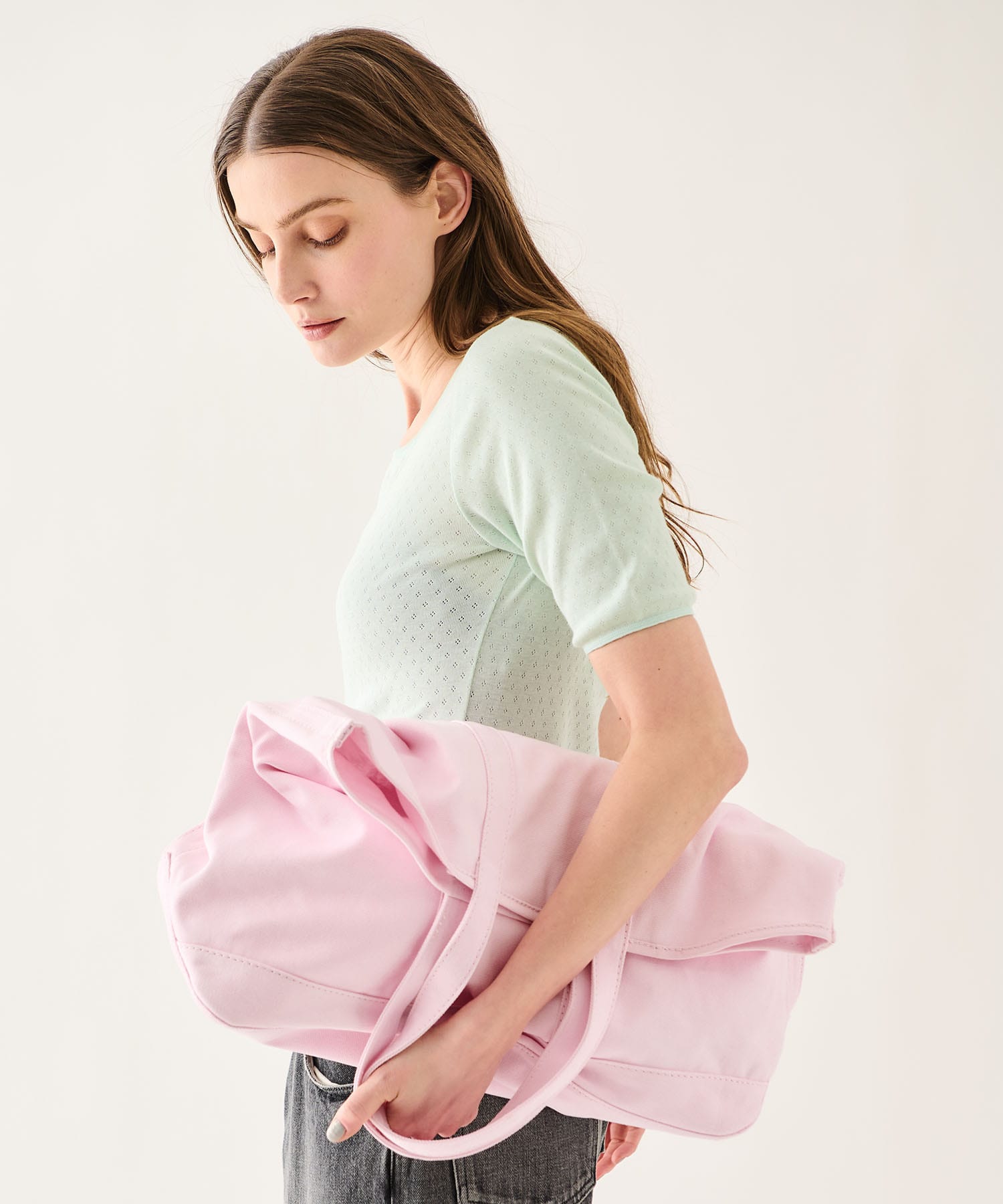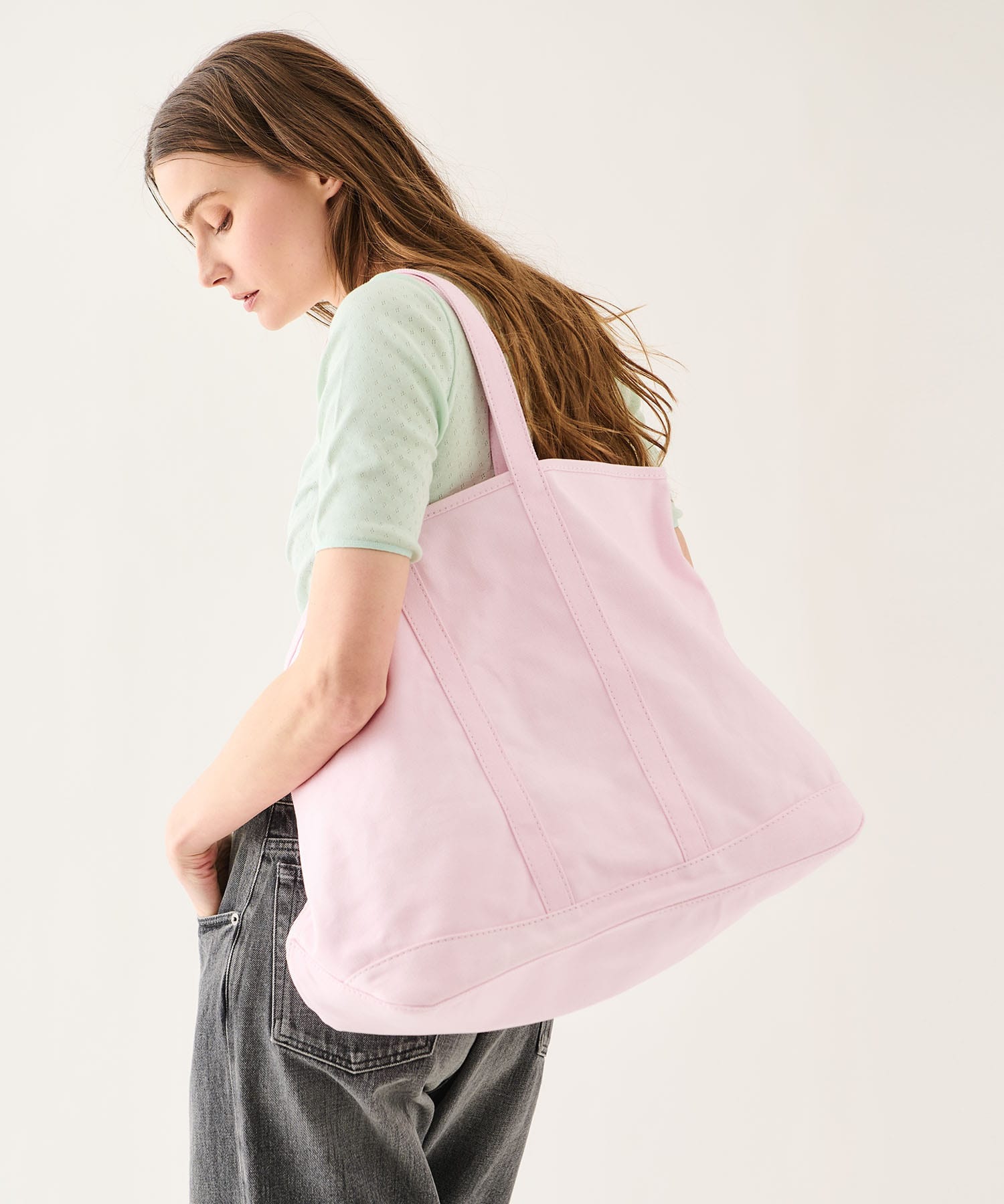 優しいカラーリングが目を惹くキャンバストートバッグ。
