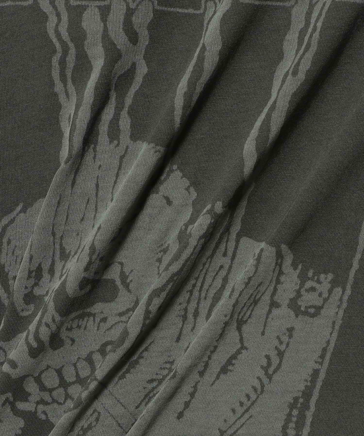 本品は独自の加工工程により製造され、一点一点に個別の色合いと風合いが生まれます。レーザープリントは意図的にプリント内に微細な穴を生じさせ、着用と共に変化する可能性があります。顔料染色のため、明るい色の衣類や表面に色移りする場合があります。着用者の体型に馴染み、経年と共に自然な風合いへと変化していきます。