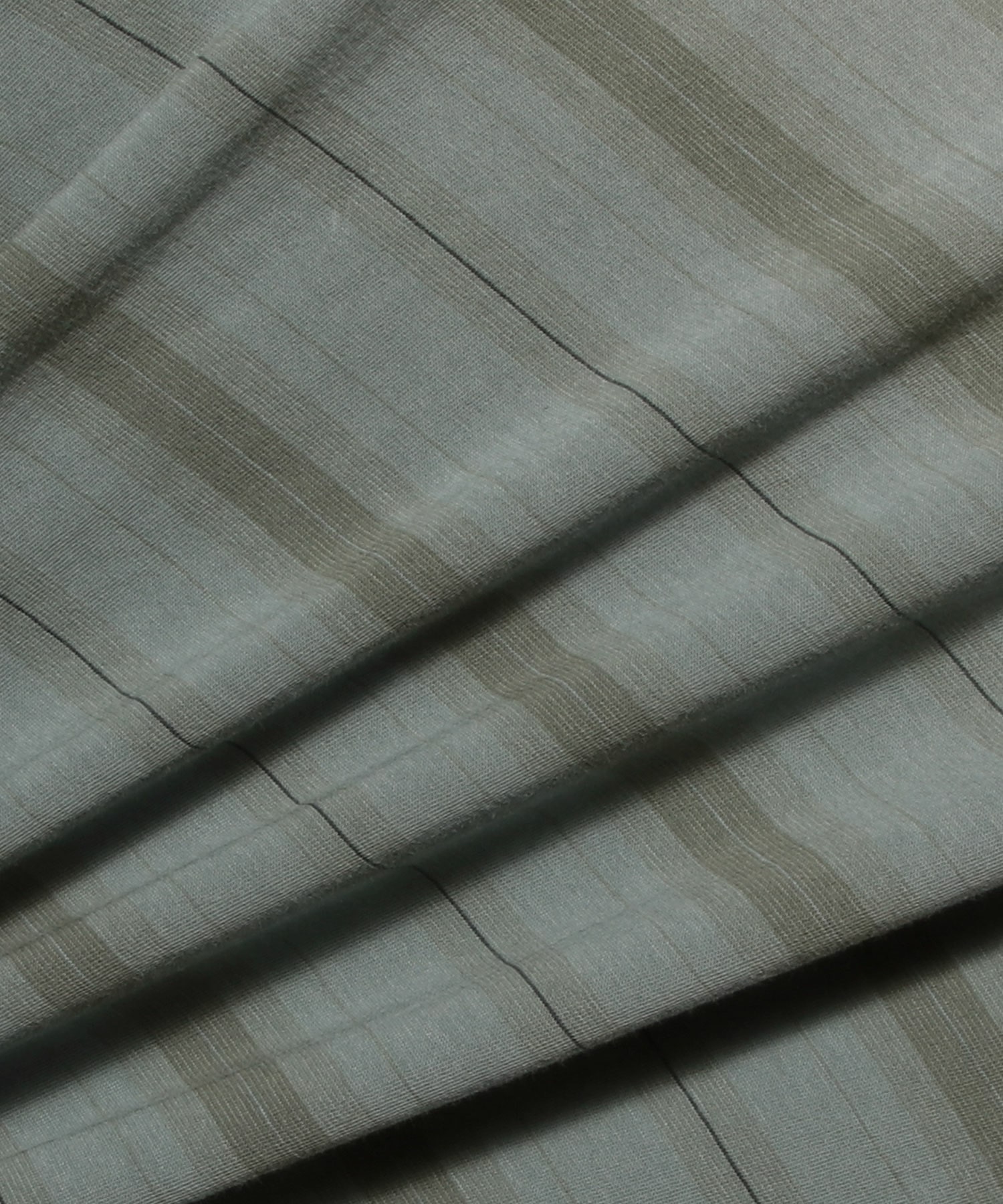 スプレードエードゴーストストライプのボックスロングスリーブ。ポルトガル産コットンジャージーにストライプ柄を施し、顔料スプレーによるオーバーダイ加工を施した一品。独自開発のゴーストストライプが微妙な色調の変化と深みを演出し、柔らかな着古した風合いを醸し出します。ボックスロングスリーブはオーバーサイズのボックスシルエットを採用。細リブの襟、サイドシームのベント、ドロップバックヘムが特徴です。