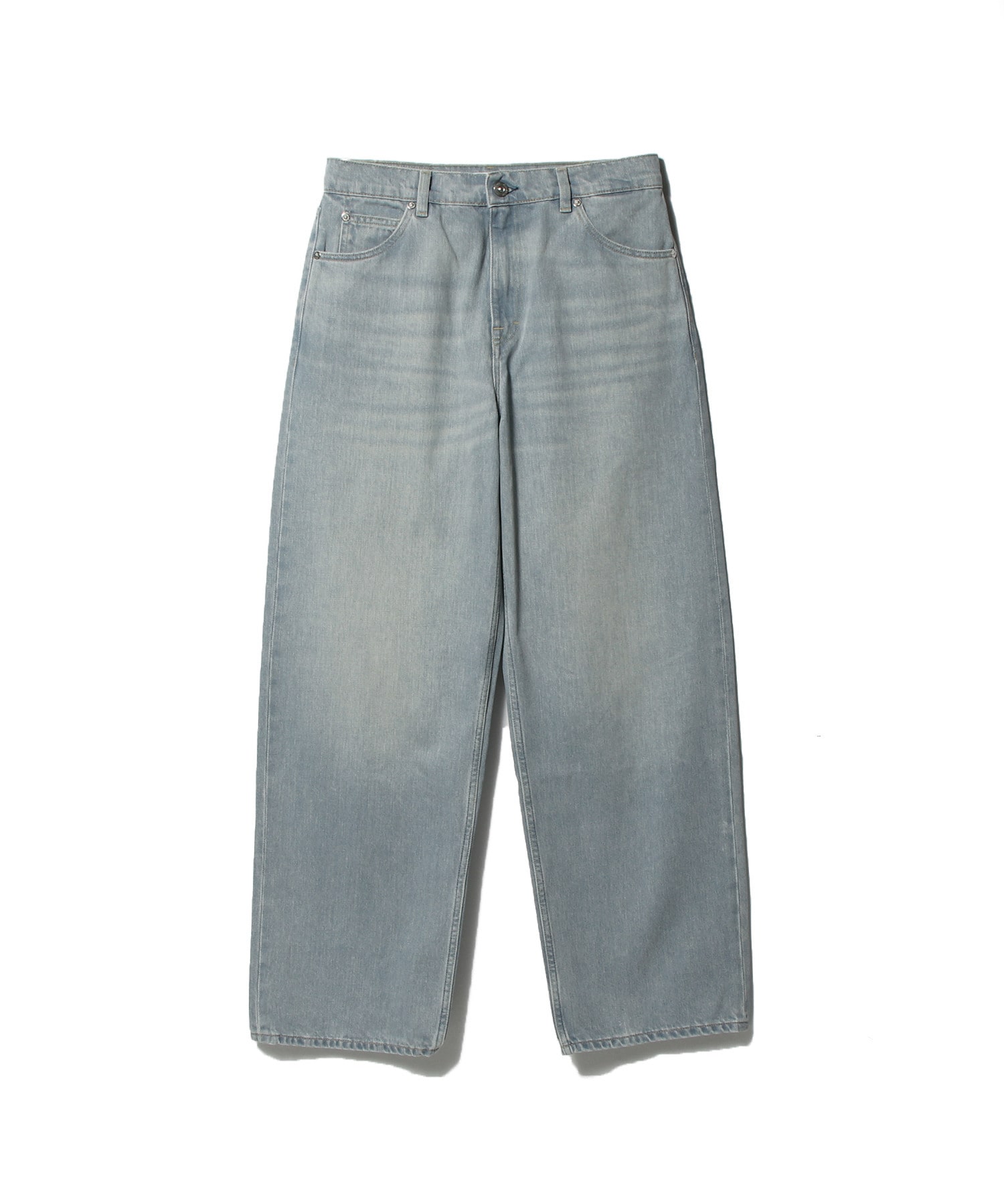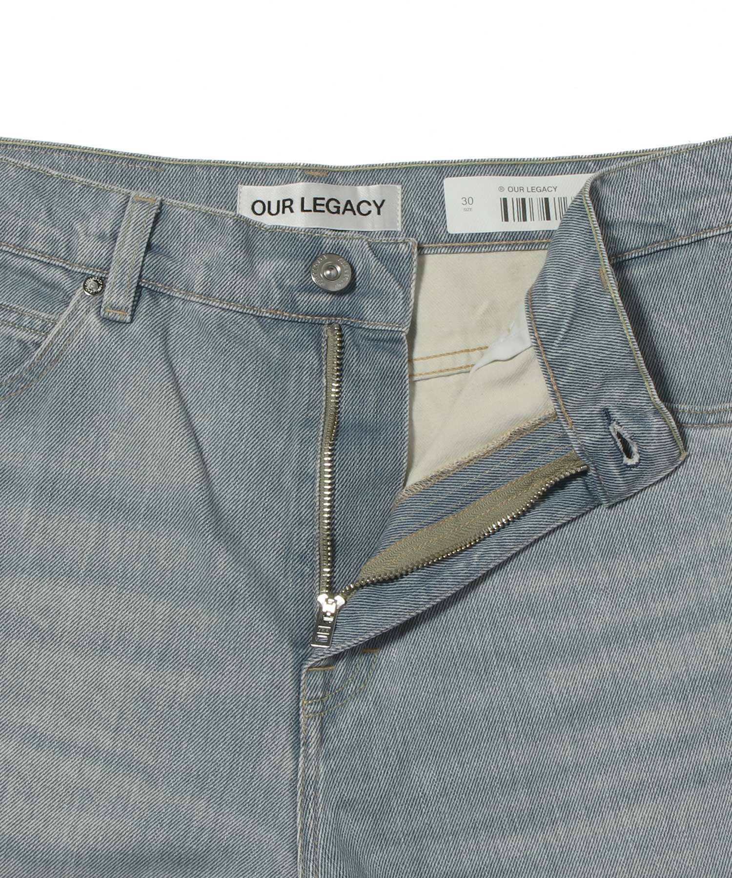 ヴァストカット ペールコーストウォッシュ。顔料コーティングを施したトルコ産コットンを使用し、柔らかく使い込まれた風合いを実現。ハイウエストのゆったりとしたワイドシルエットに、YKKジップフライ、スチールリベット、5つのポケット、エンボス加工のOUR LEGACYパッチを特徴とします。
