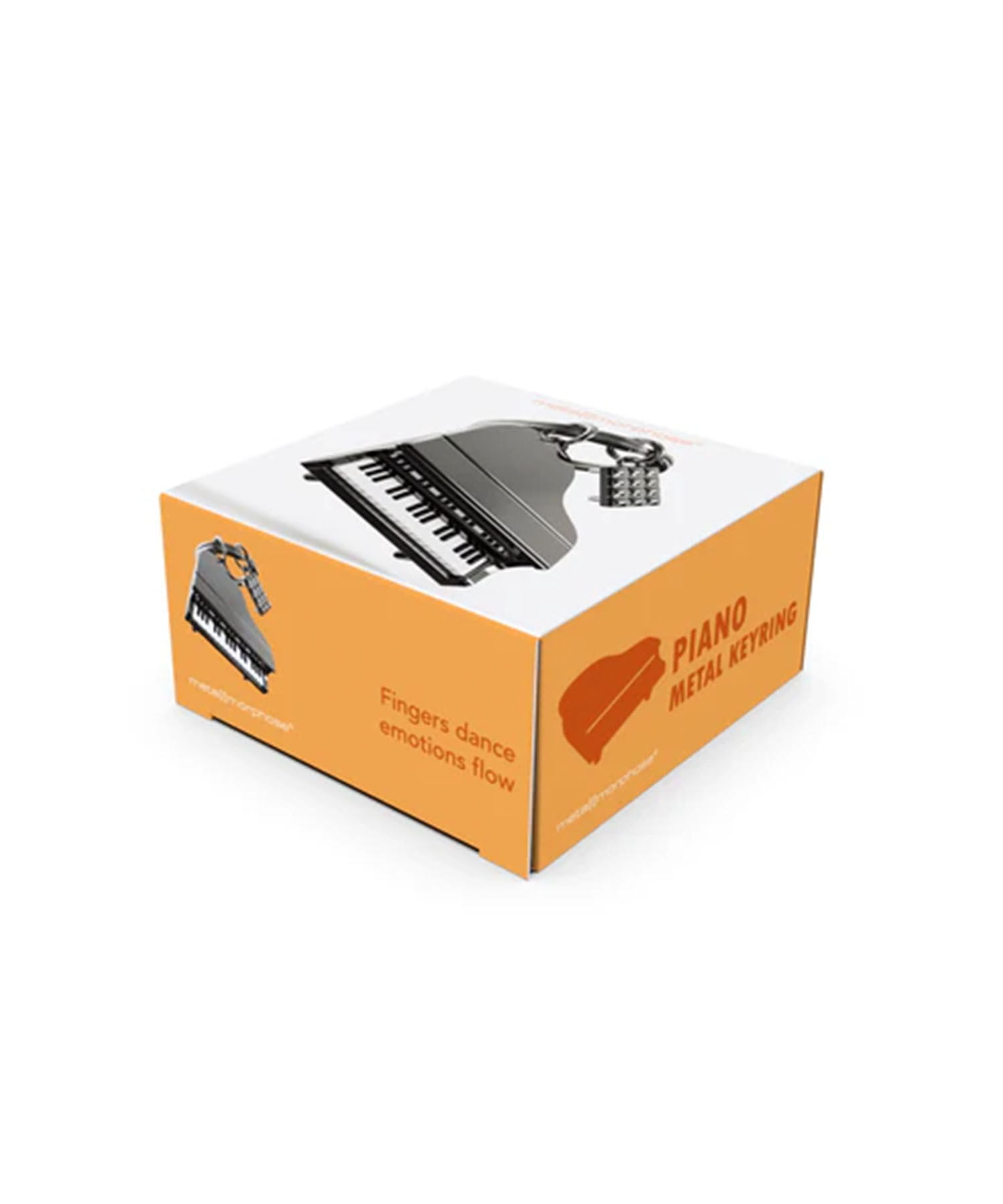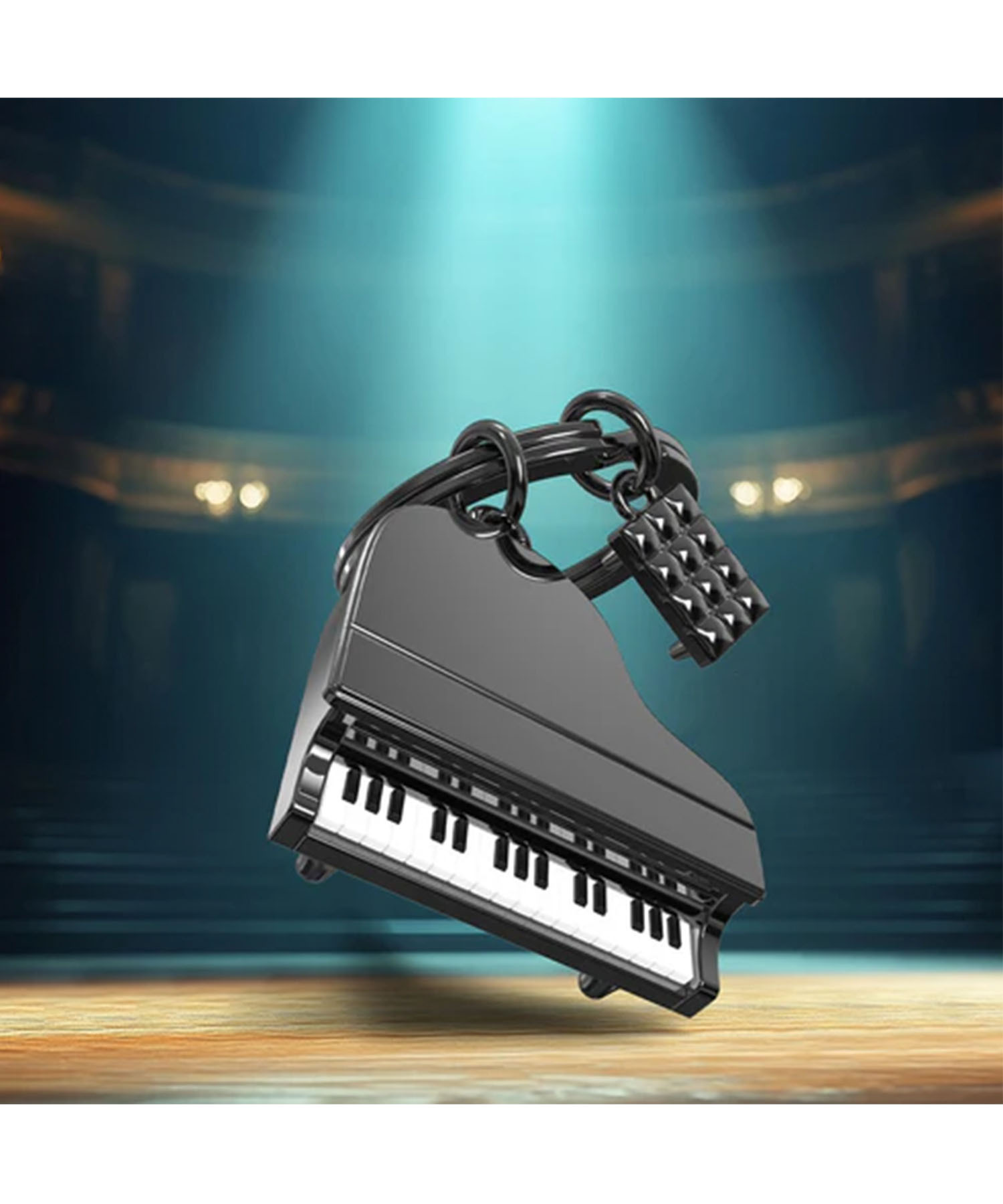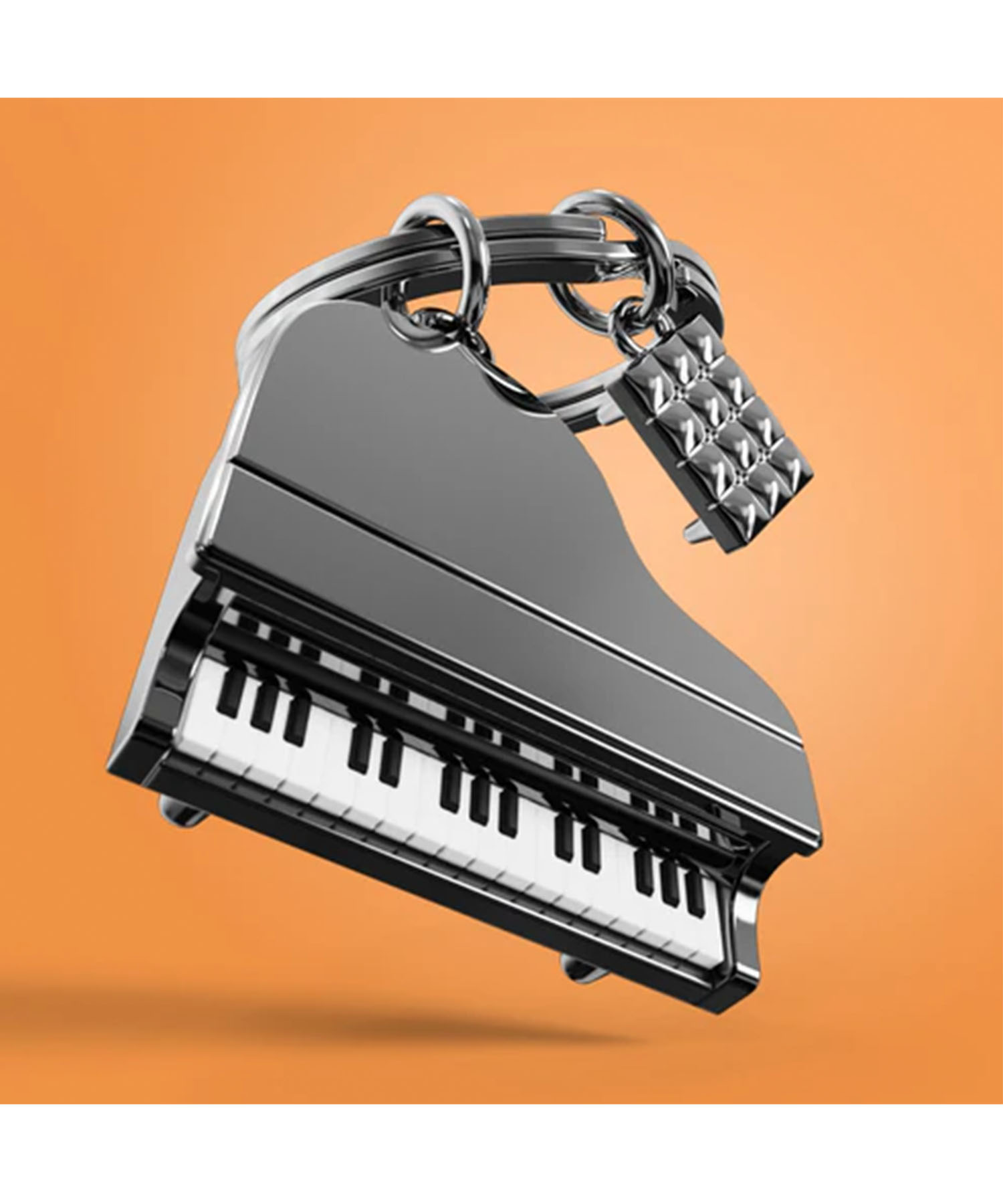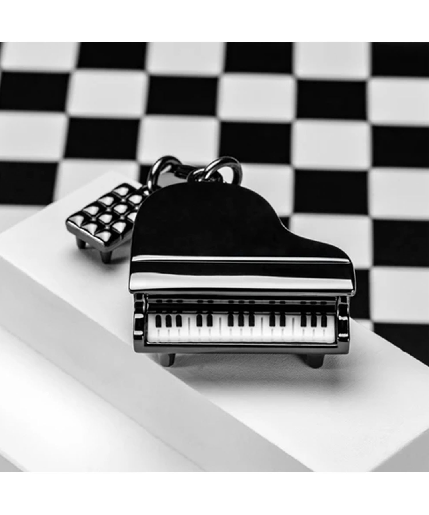 黒鍵と白鍵が美しく並ぶ、ミニチュアのグランドピアノキーホルダー。
