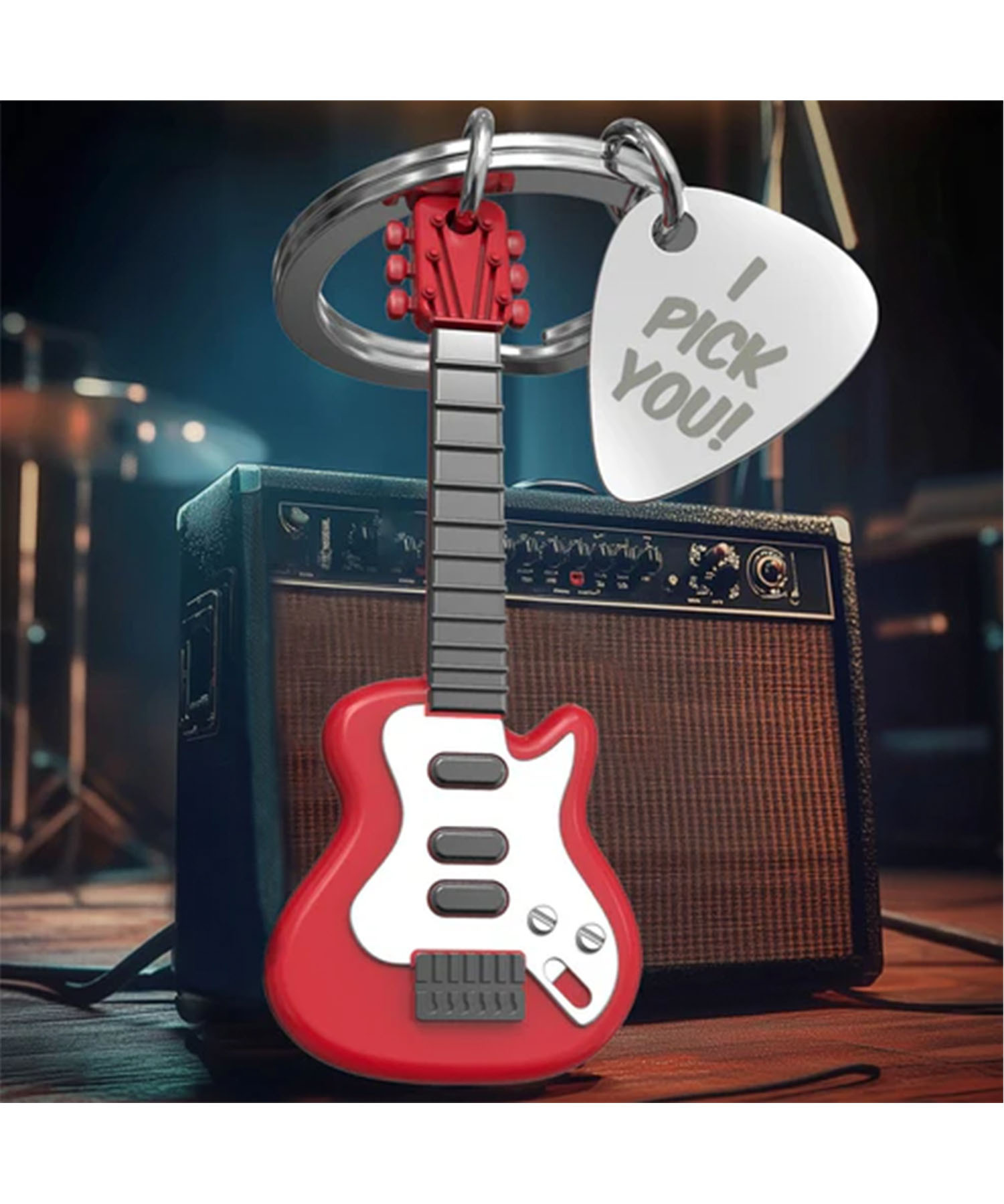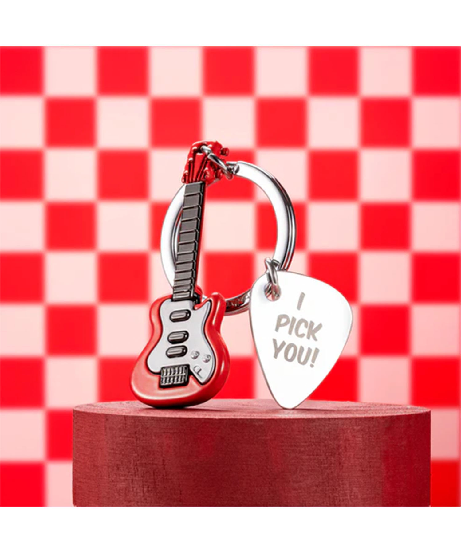 添えられたピック型チャームには「I PICK YOU!」のメッセージ入り。