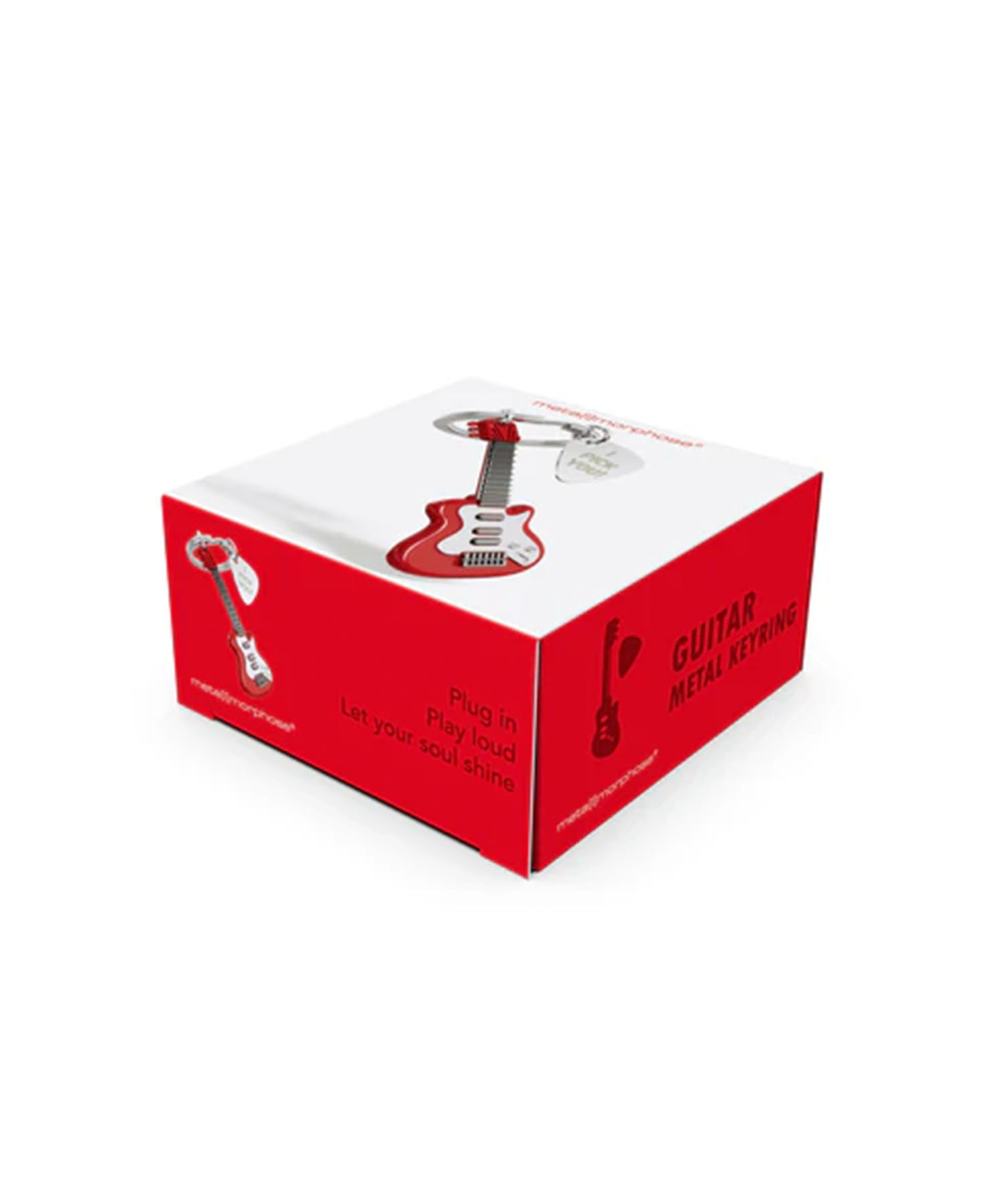真っ赤なボディが目を引く、ミニチュアギターのキーホルダー。