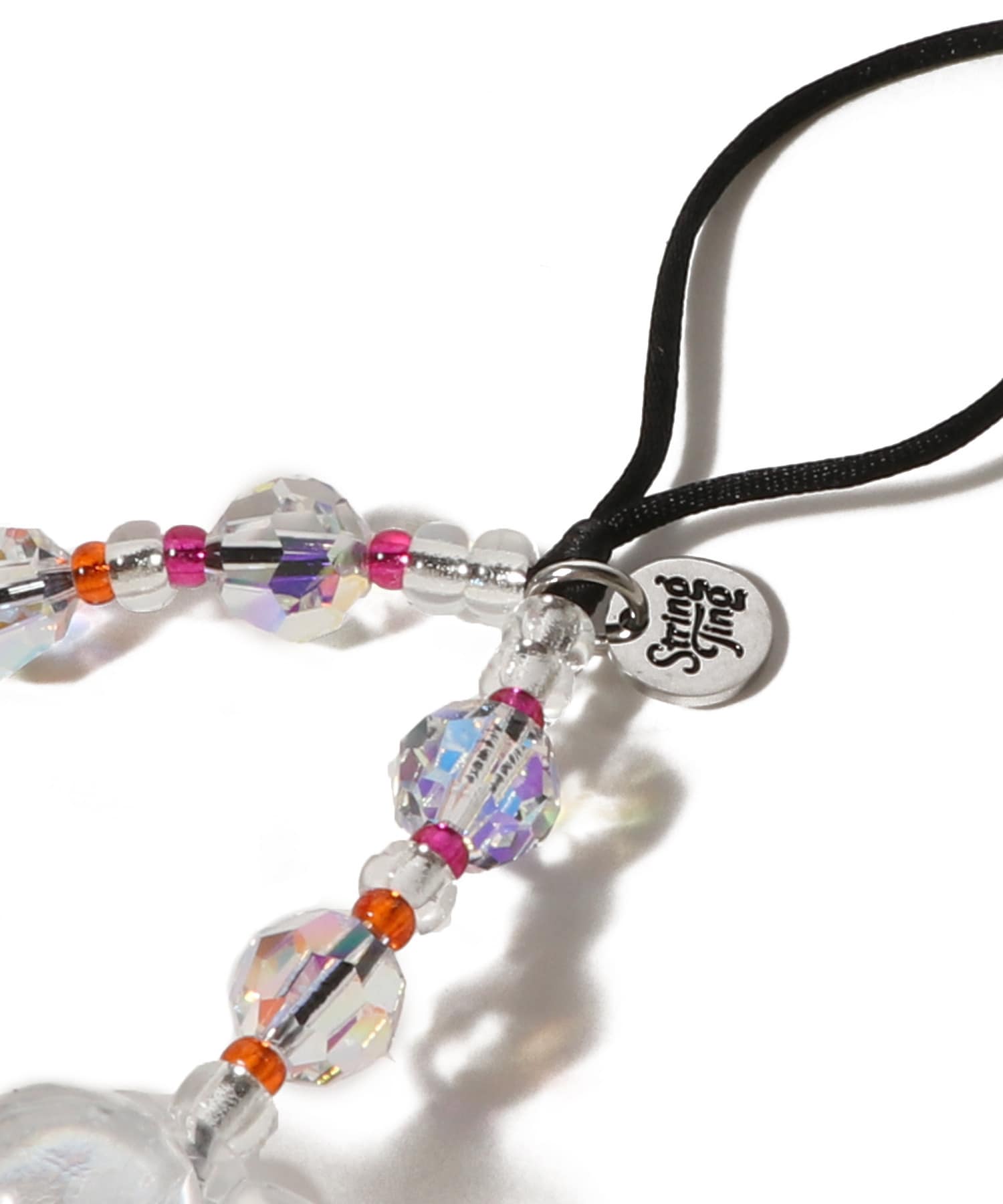 クリスタル、アクリル、ガラス、樹脂ビーズ、耐久性のあるサテンコードを使用し、強い耐久性が持ち味。