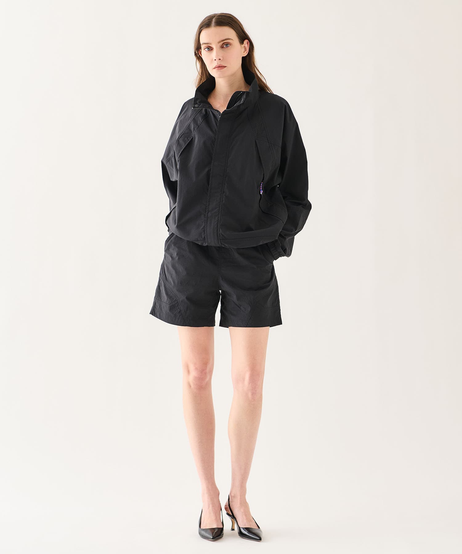 同素材のブルゾンとのセットアップもおすすめです。