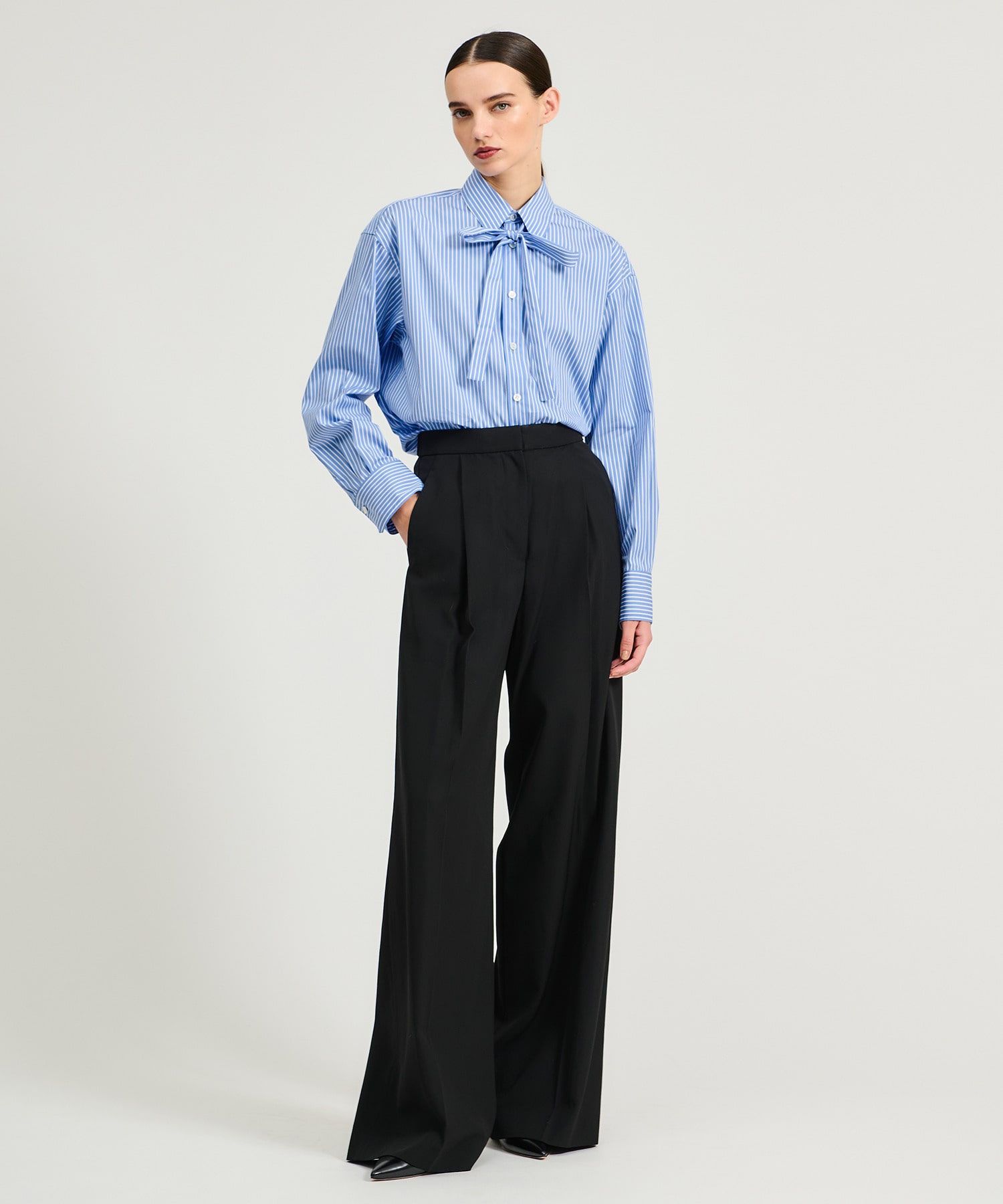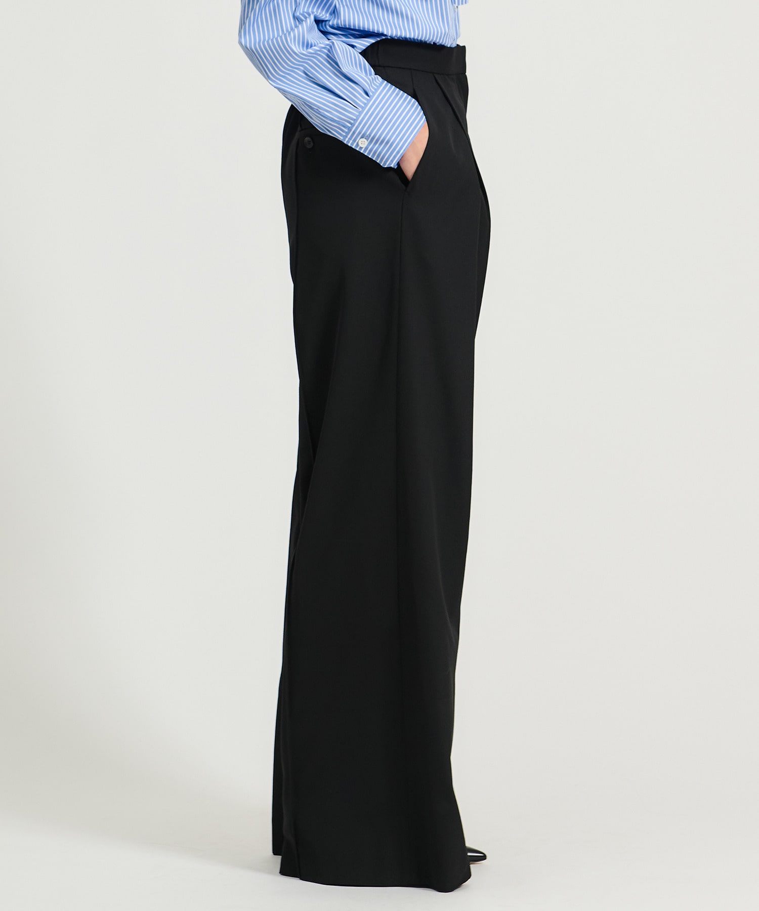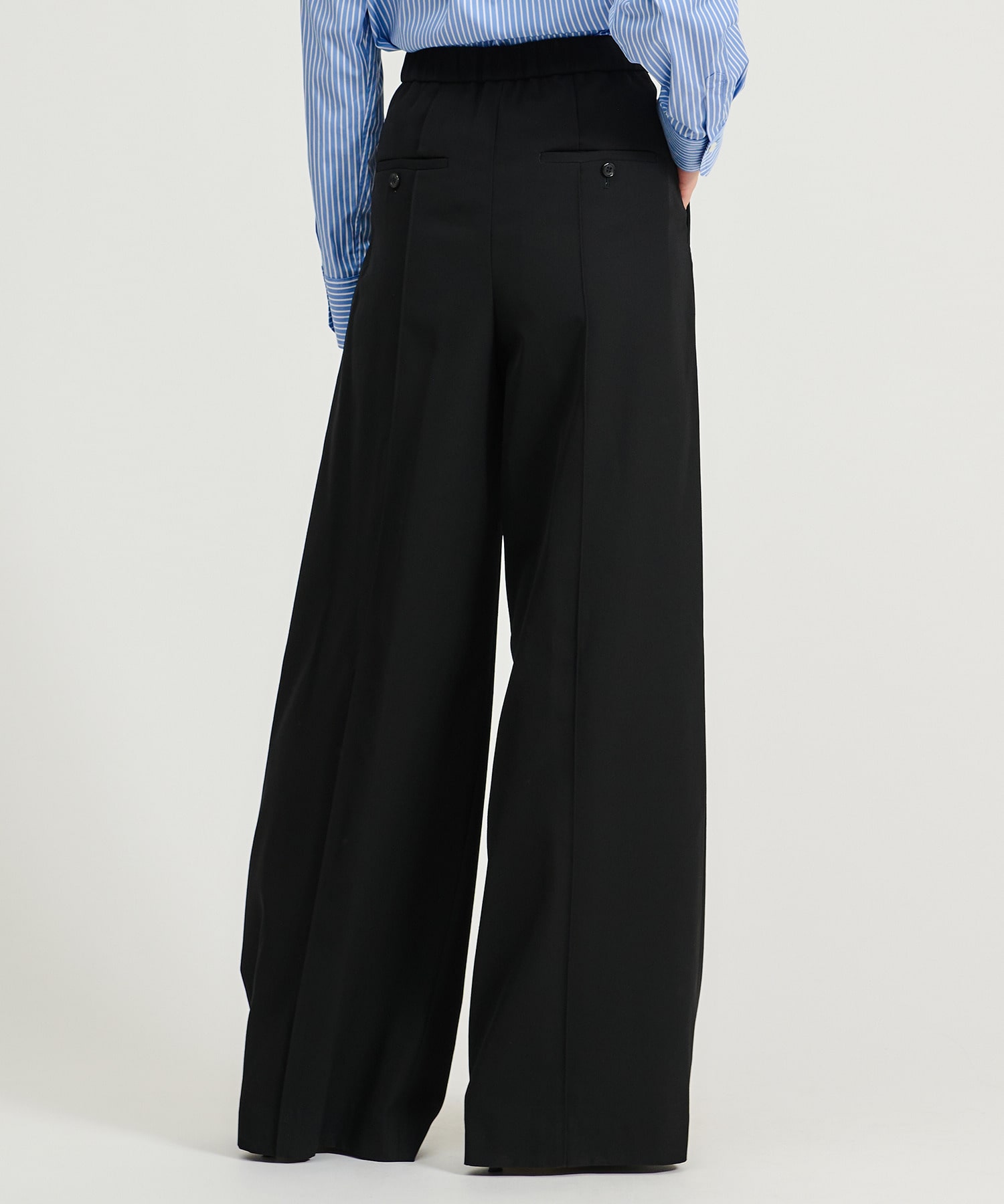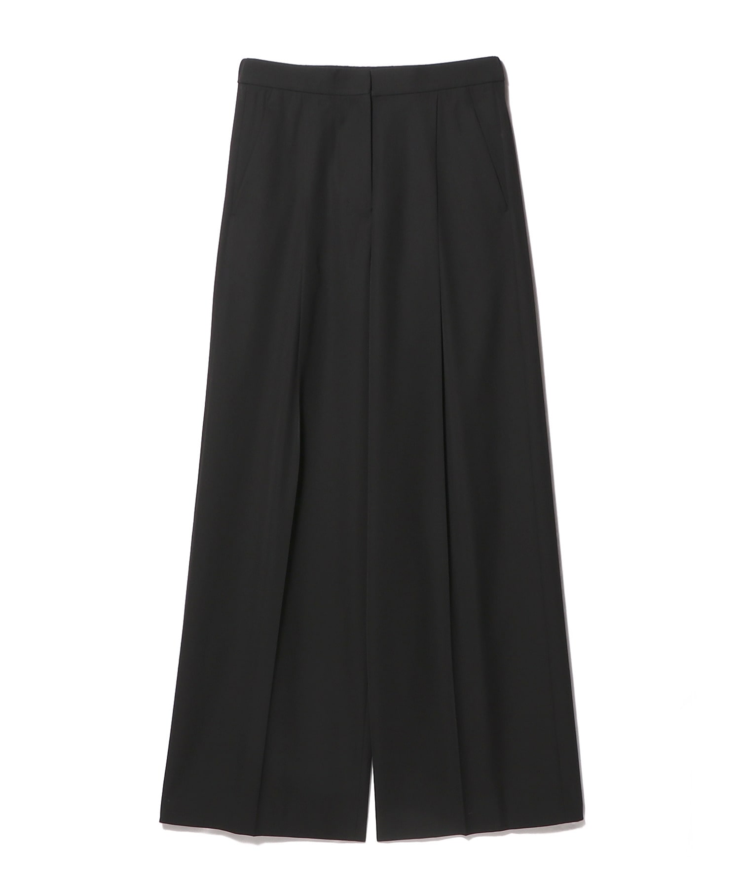程よい落ち感と柔らかな肌触りが魅力のウールレーヨン素材を使用したワイドパンツ。