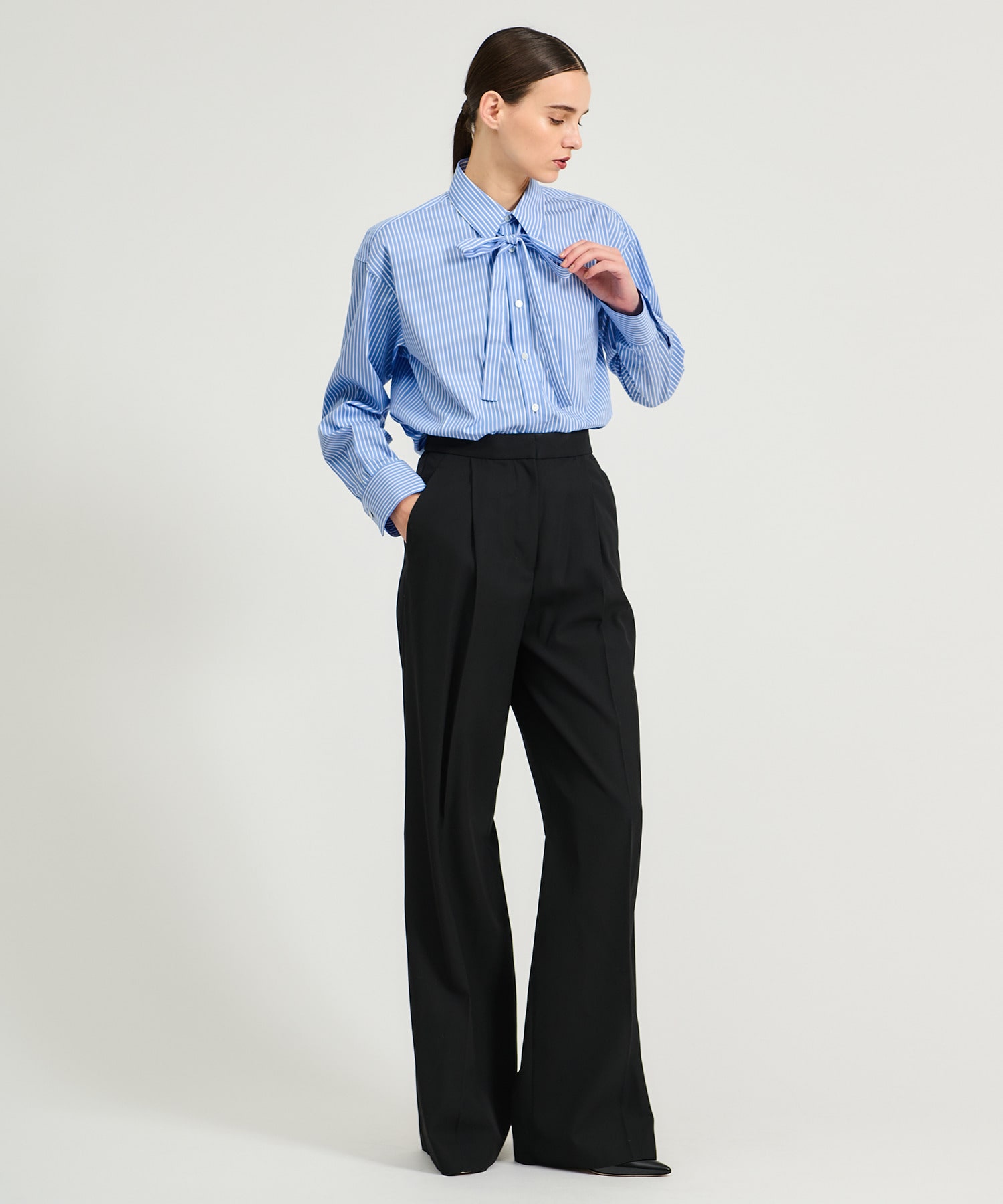 着用時の美しいシルエットとシーズンを問わない素材感で、あらゆるスタイルにマッチする万能パンツに仕上がっています。