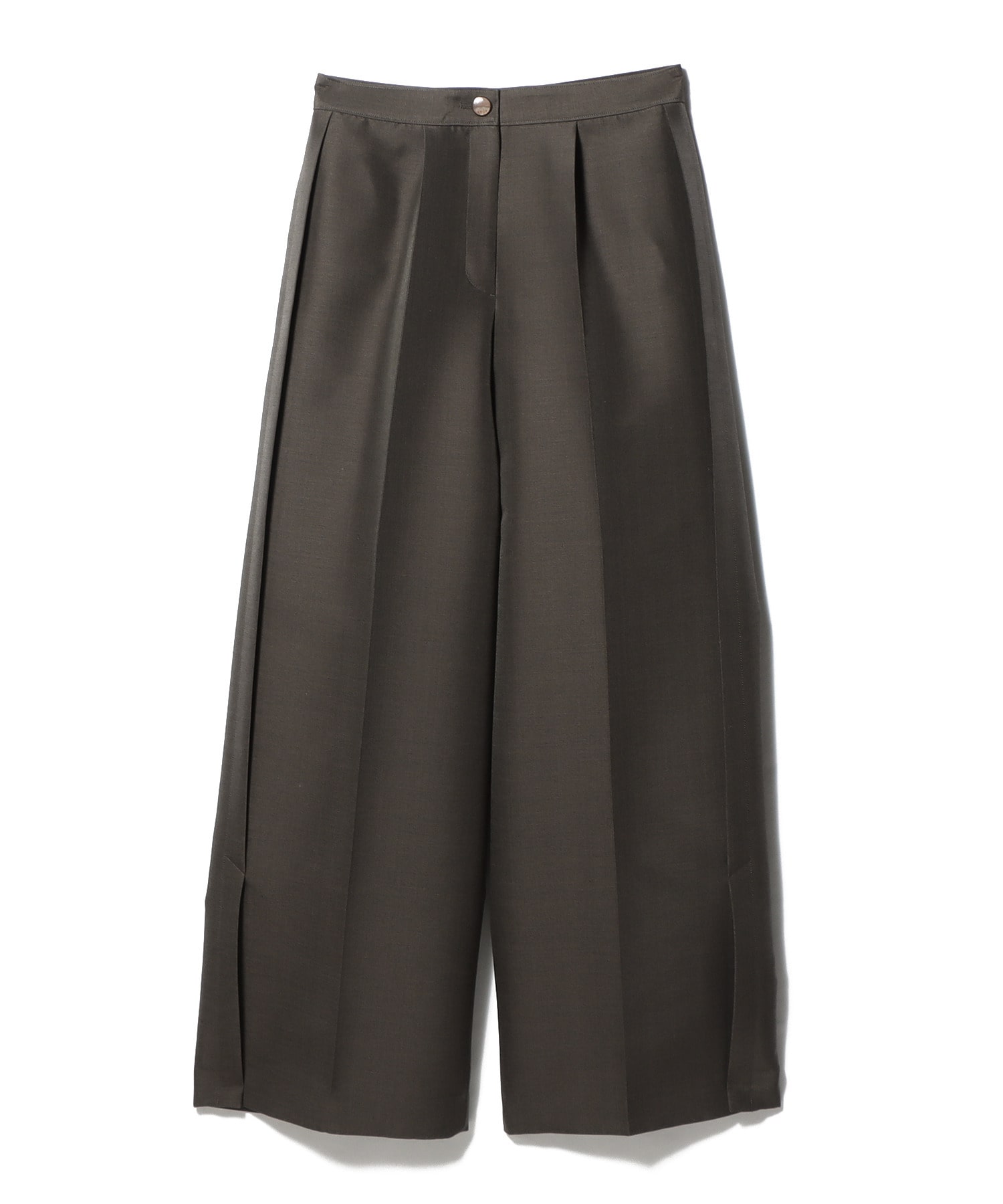 ワイドながら腰回りをややタイトにすることでスッキリとしたシルエットに。脇の裾ベントもさりげなくデザインになっており、抜け感をプラスします。