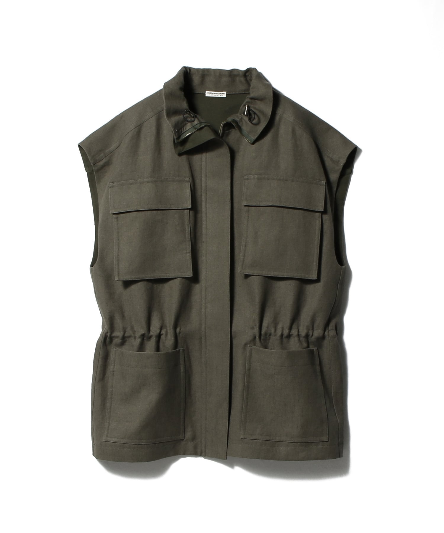 フィールドジャケットのディテールを取り込みつつ、ゆるめのシルエットで女性らしさをプラス。インナー次第で晩夏〜初秋まで長いシーズン着ていただけるアイテムです。