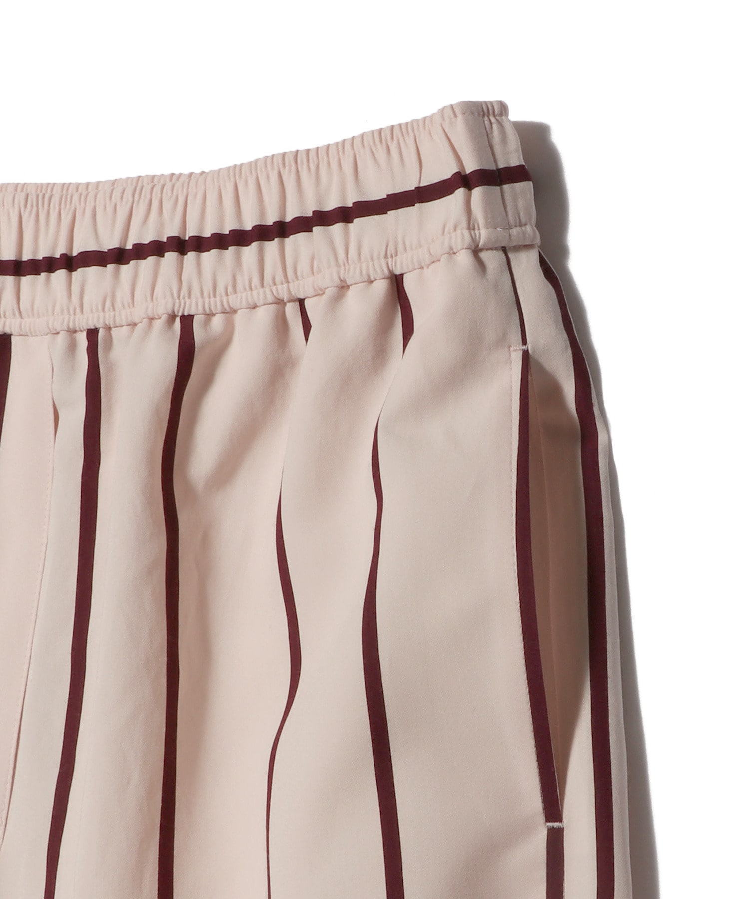 程よい張り感と軽さがバランスの良い素材で、インパクト十分ながら、ウエストゴムのストレスフリーな履き心地が魅力です。