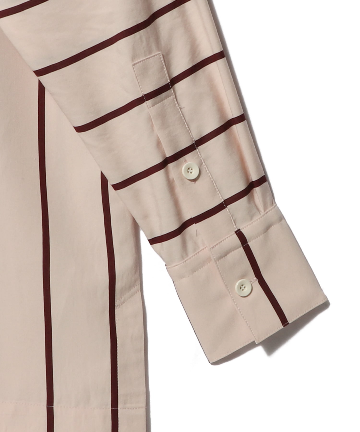 存在感のあるストライプ柄を最大限に活かしながら、袖はあえて横使い、カフスは縦使いに切り替えることで、さりげない個性と遊び心をプラス。ゆったりとしたシルエットで抜け感を演出し、トレンドのリラックススタイルにもマッチします。1枚で主役としてはもちろん、Tシャツやタンクトップの上に軽く羽織るスタイリングもおすすめ。カジュアルからきれいめまで幅広く活躍する、着回し力の高い一着です。