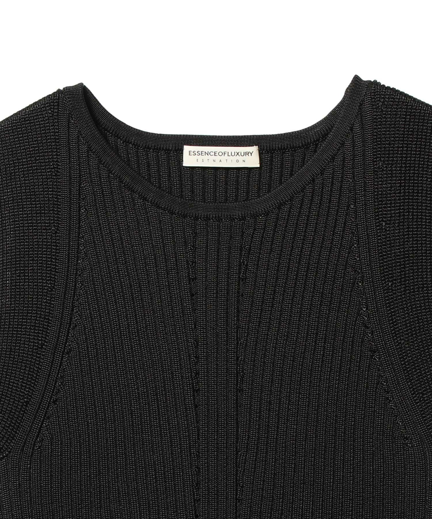 シャープな光沢感が際立つ、アメリカンスリーブのリブニット。