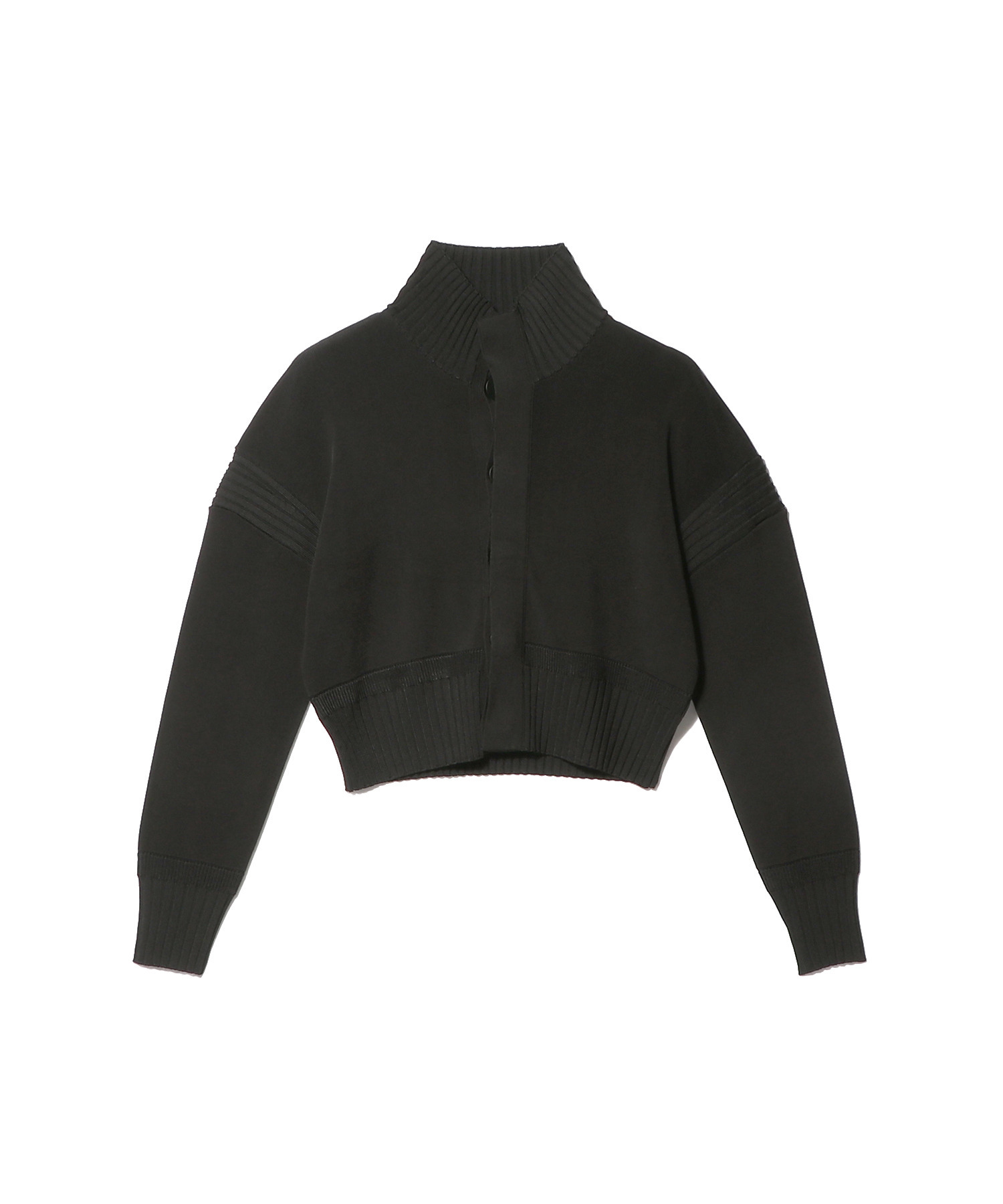 ブライトレーヨン素材の滑らかな光沢感が、コンパクトシルエットに上品さを添えるニットブルゾン。